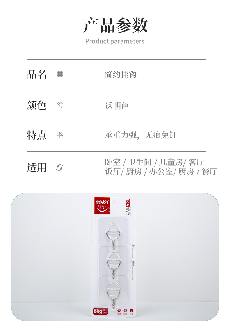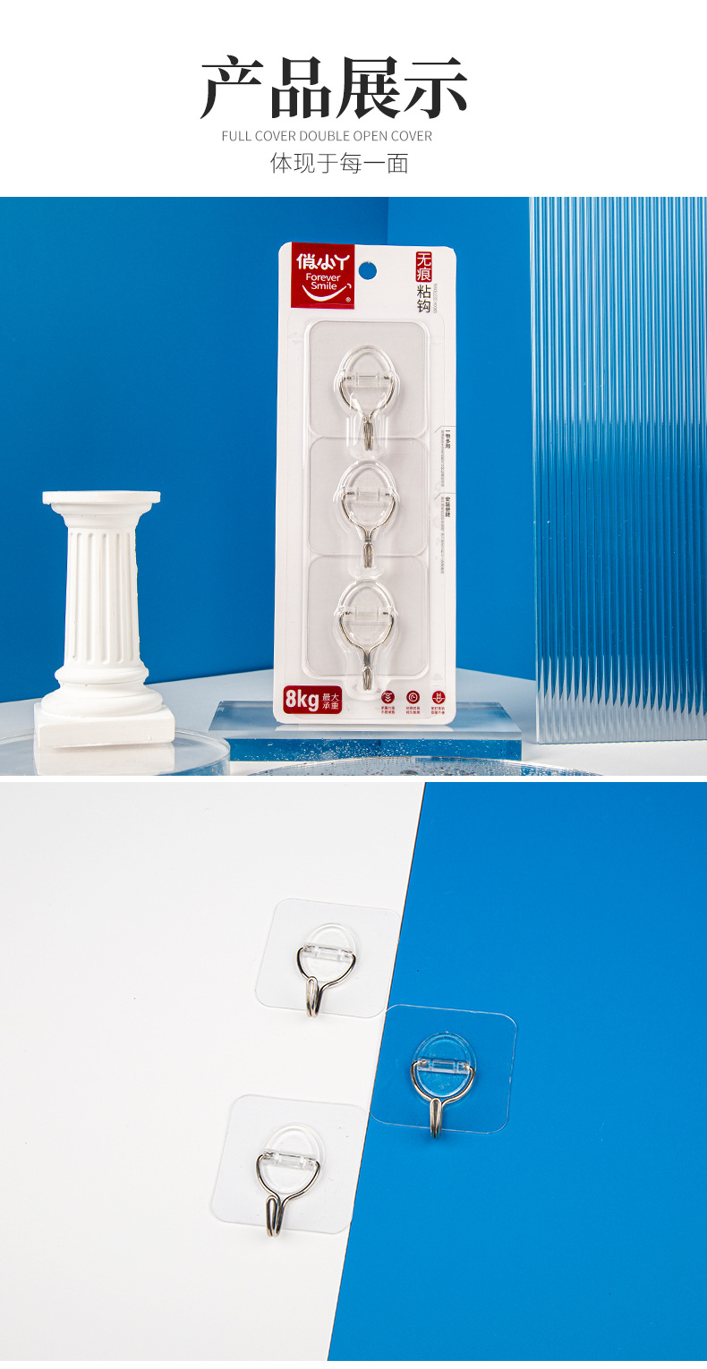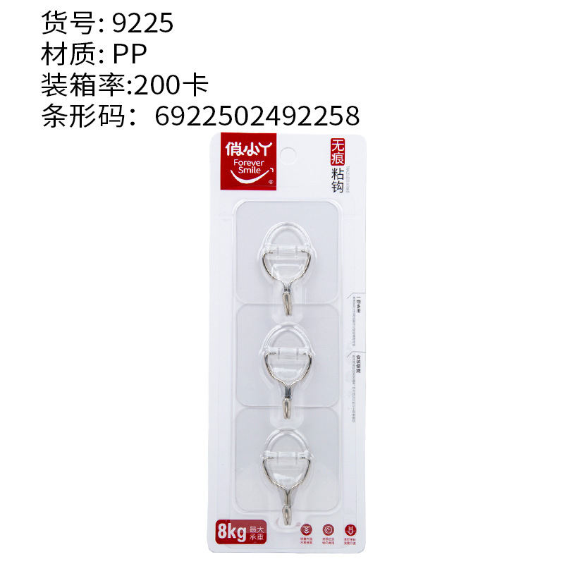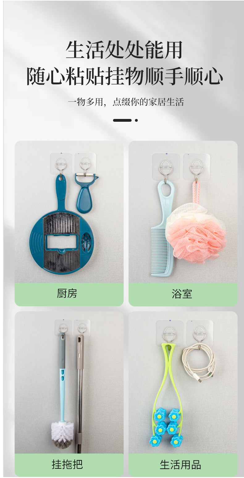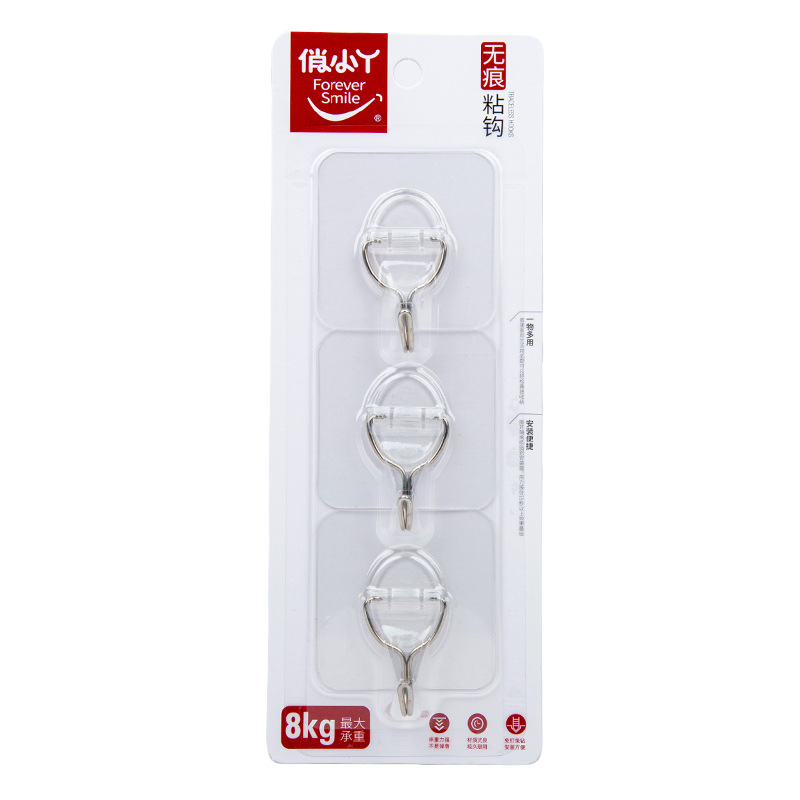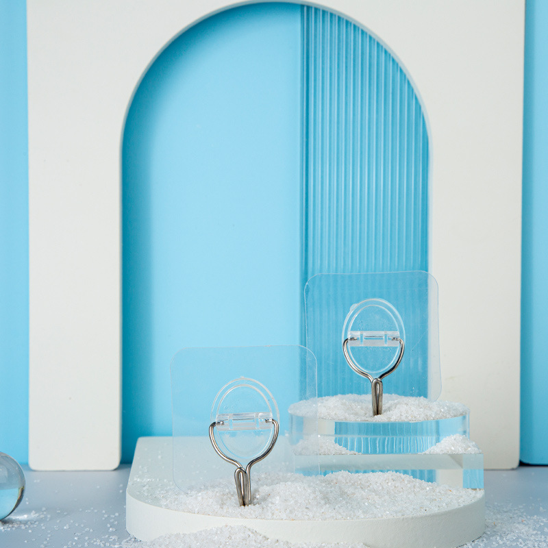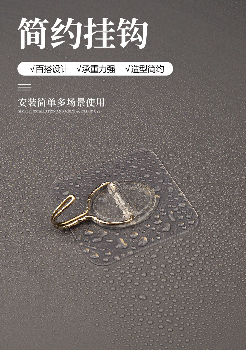 俏小丫现代简约风浴室免打孔挂钩透明无痕单个粘钩三个装透明粘钩
