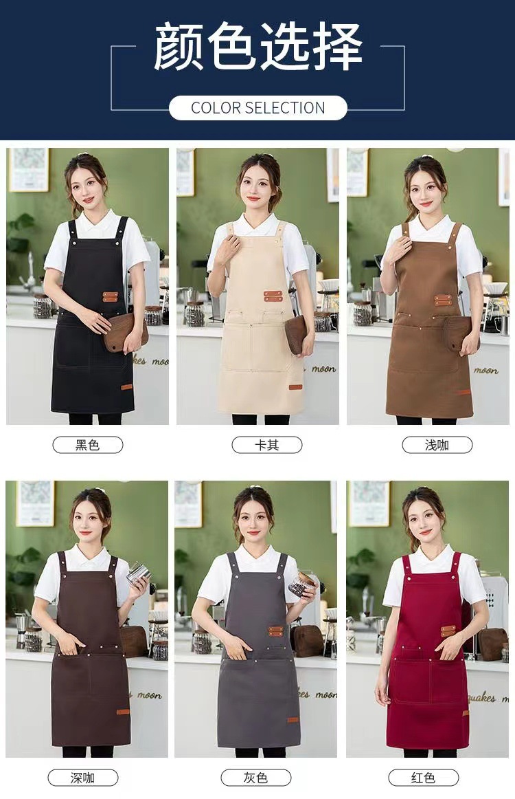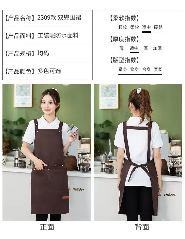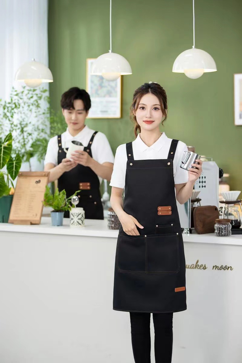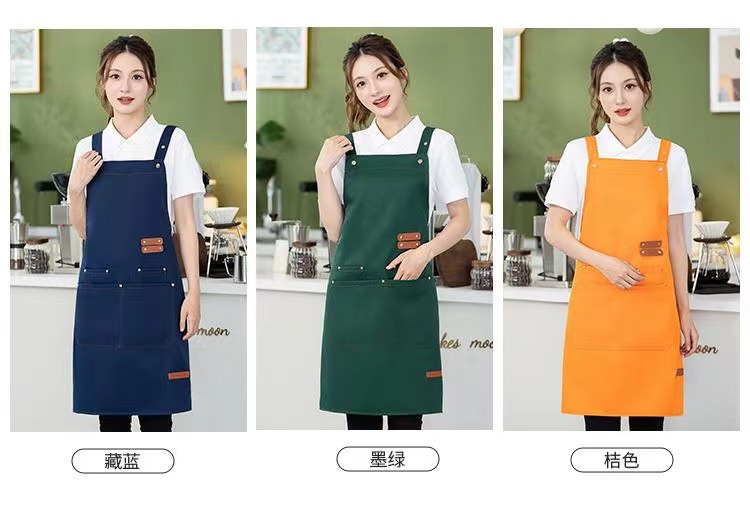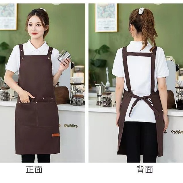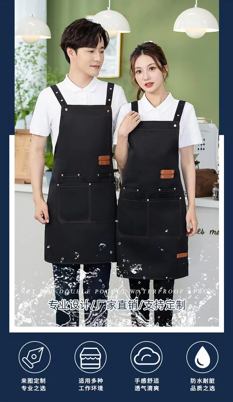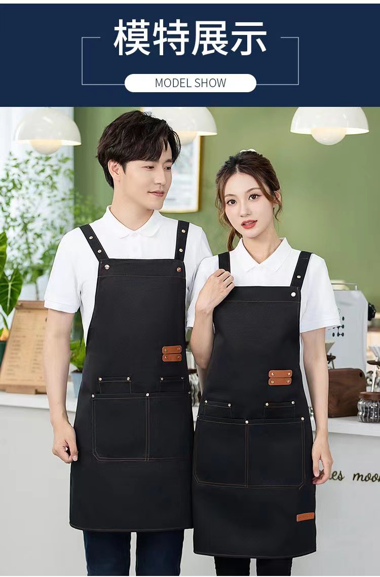 新款防水双肩调节网红款围裙印字logo奶茶餐饮烘焙咖啡厅围裙批发
