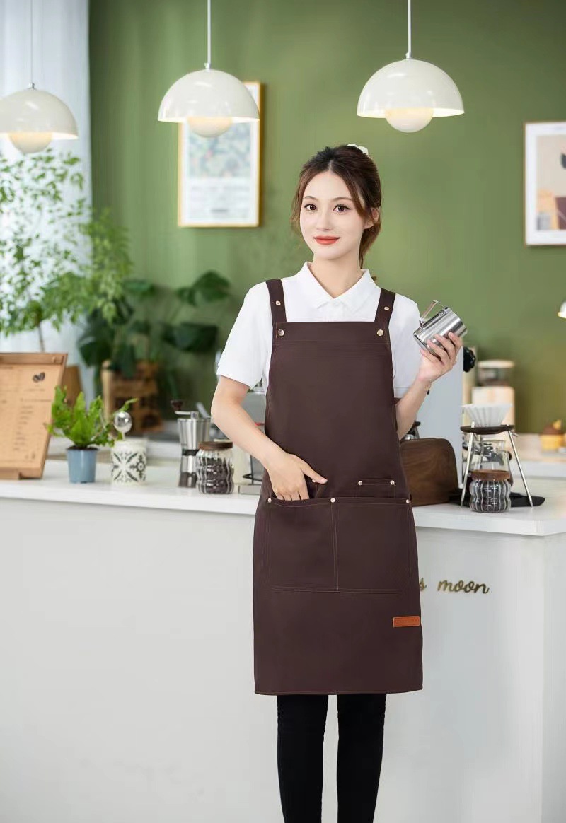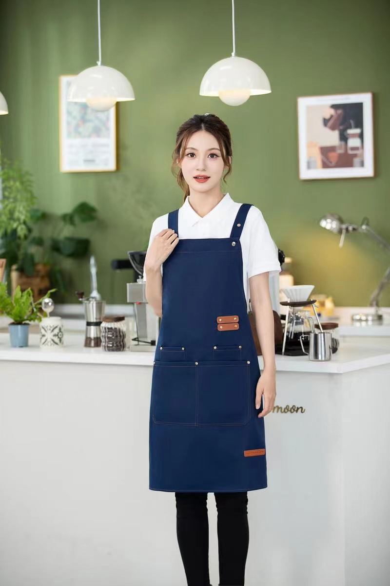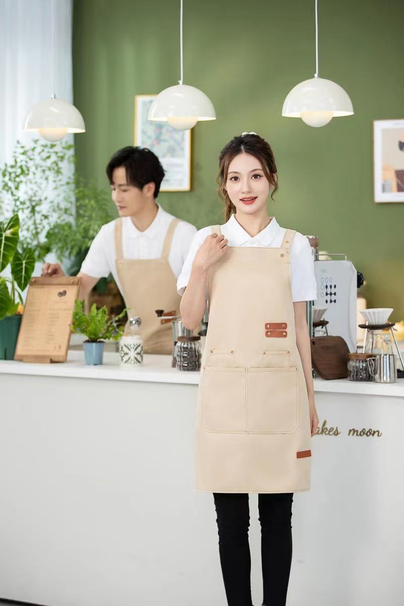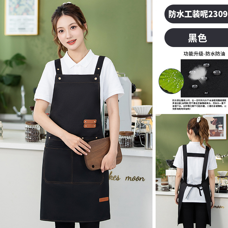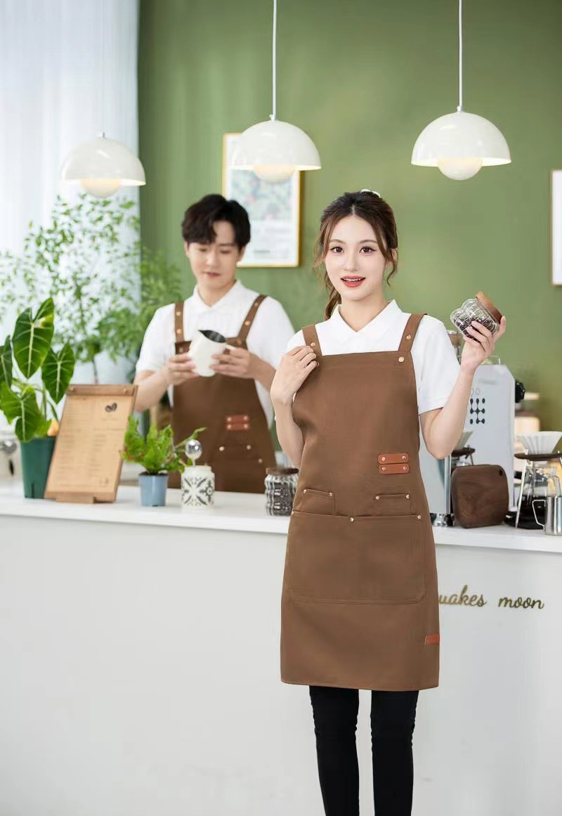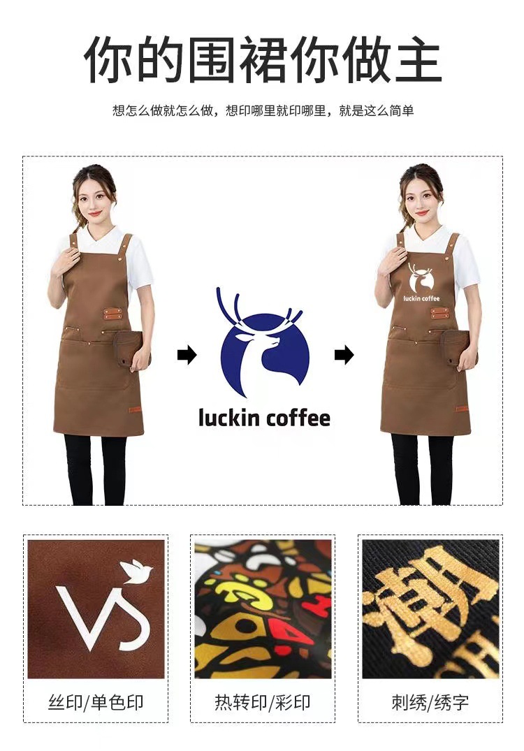 新款防水双肩调节网红款围裙印字logo奶茶餐饮烘焙咖啡厅围裙批发