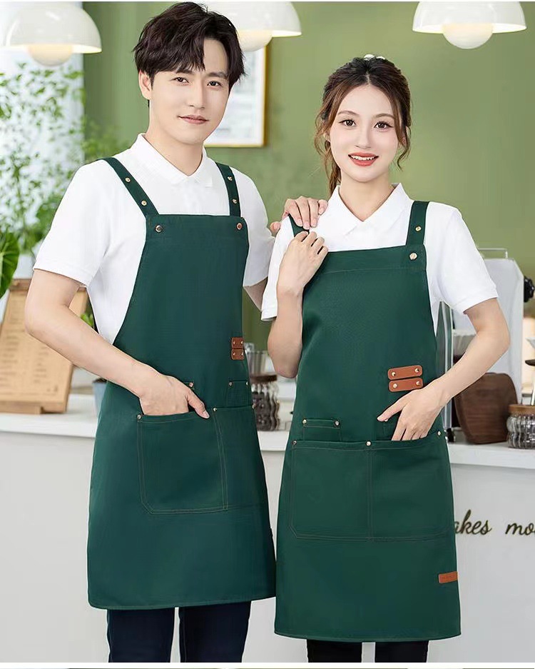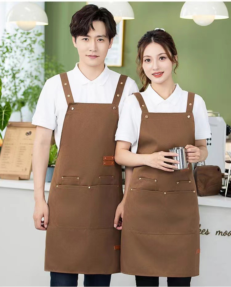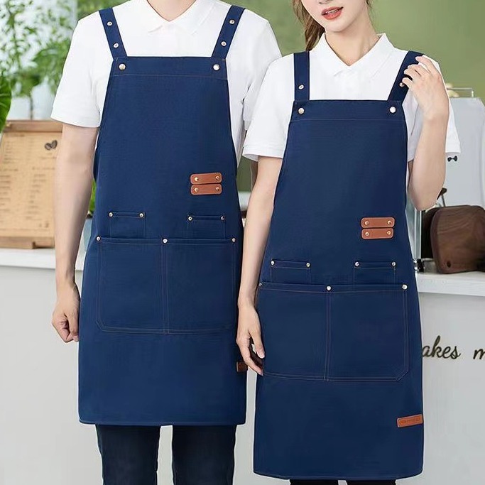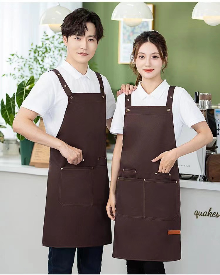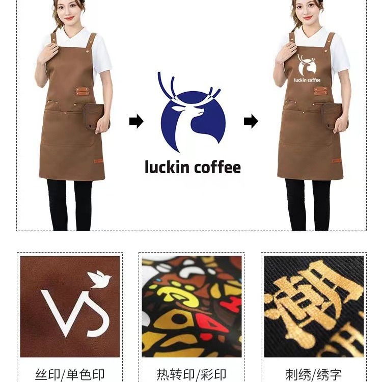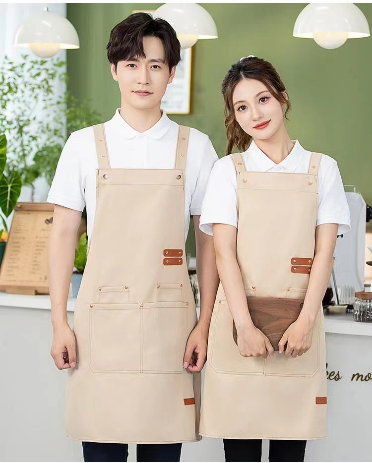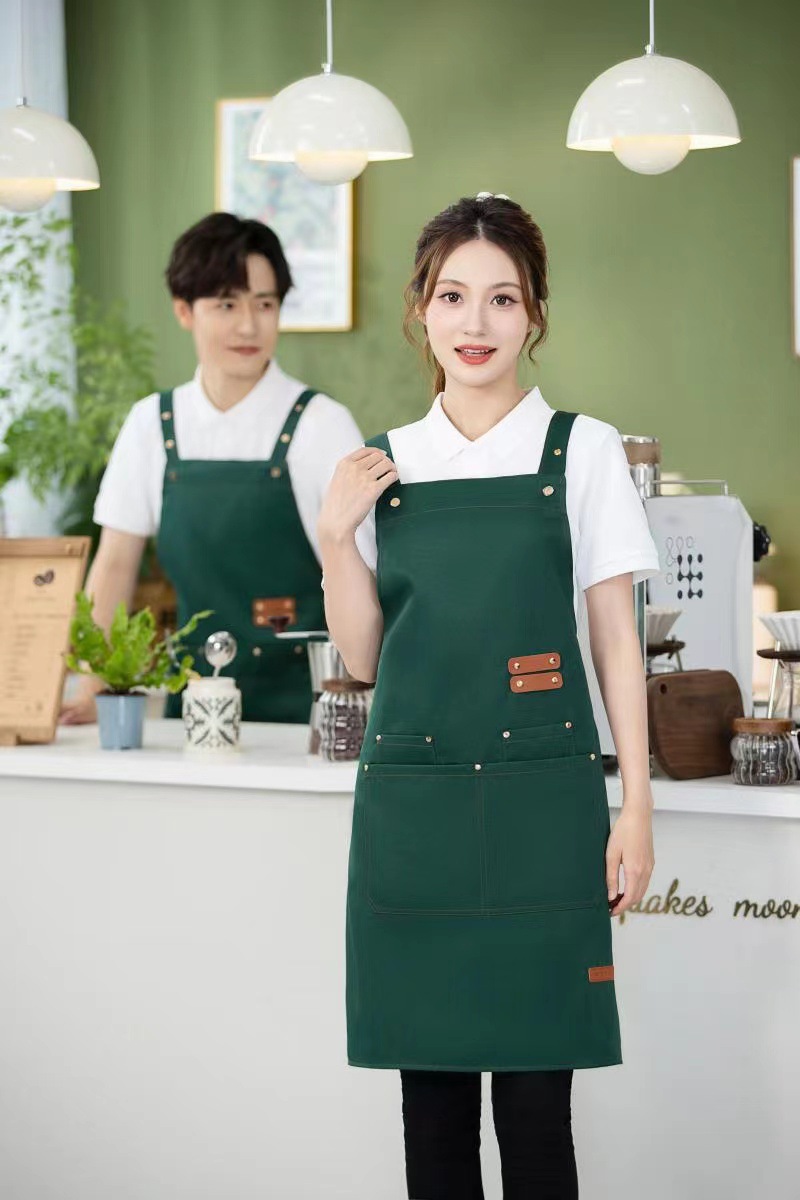 新款防水双肩调节网红款围裙印字logo奶茶餐饮烘焙咖啡厅围裙批发