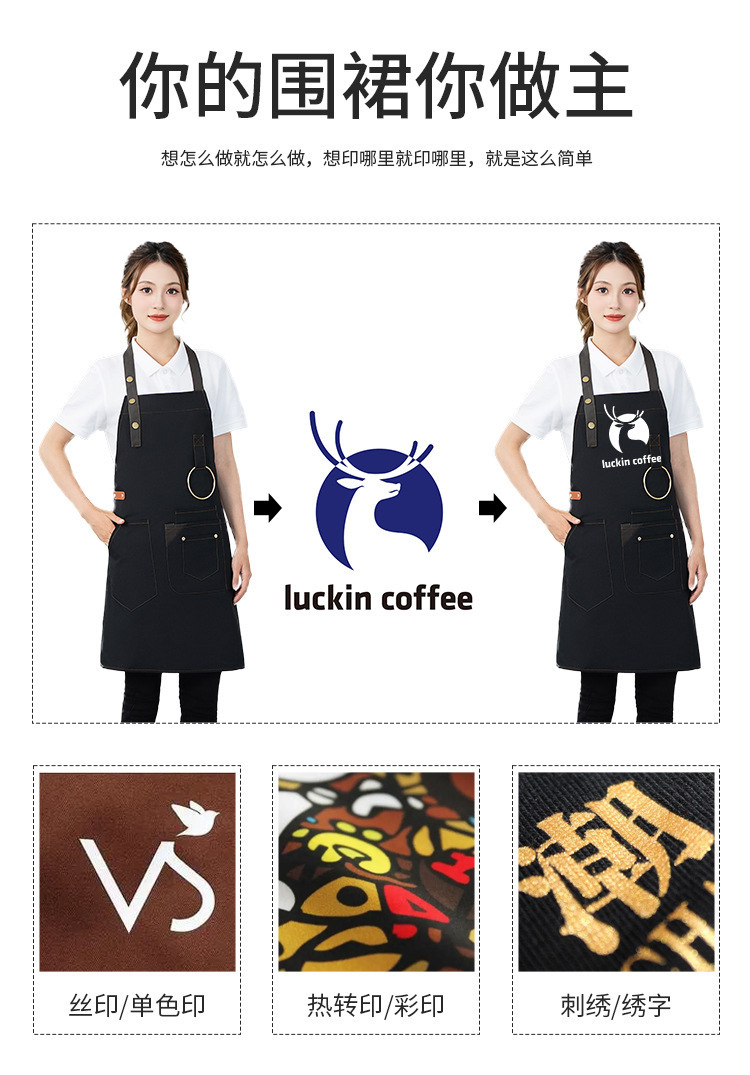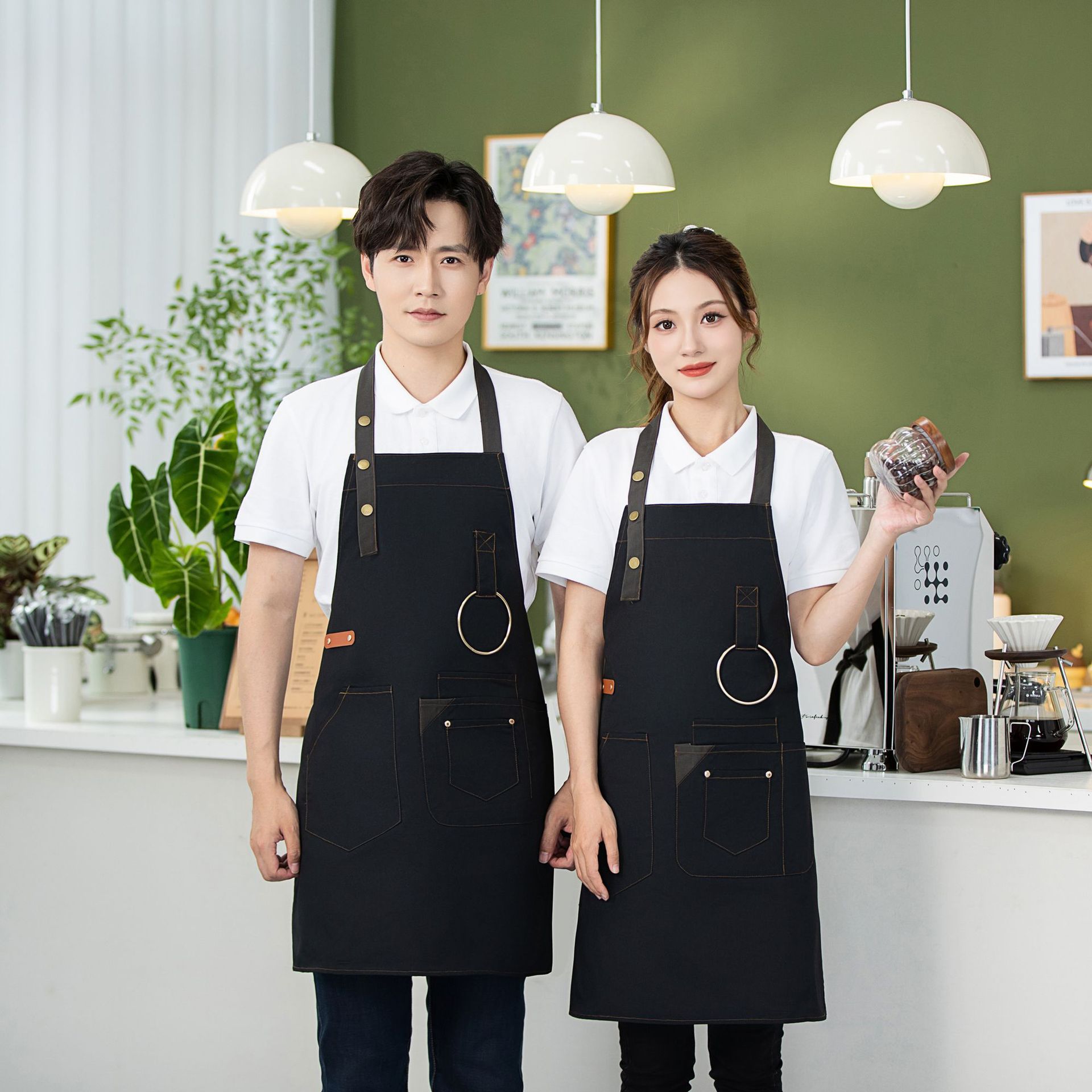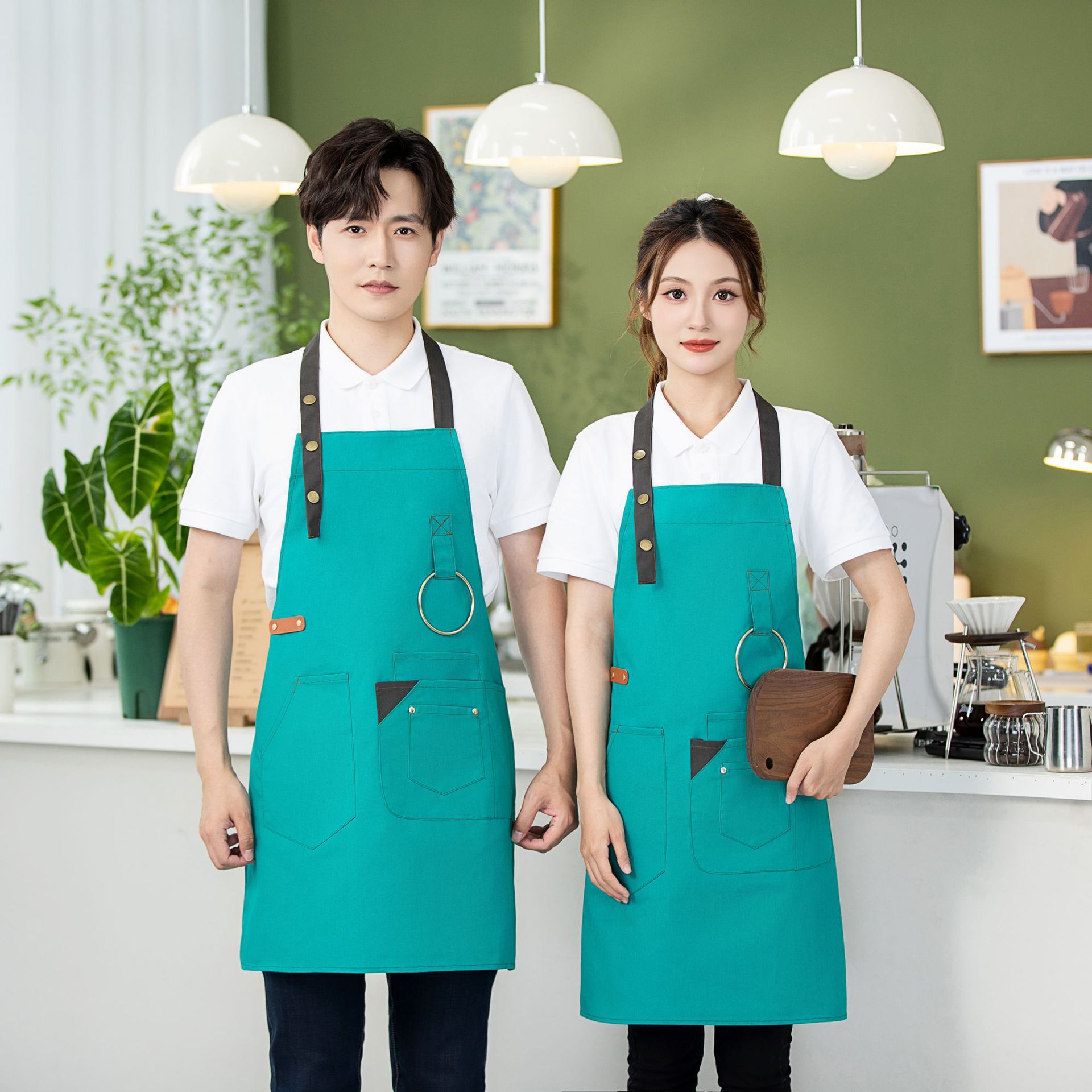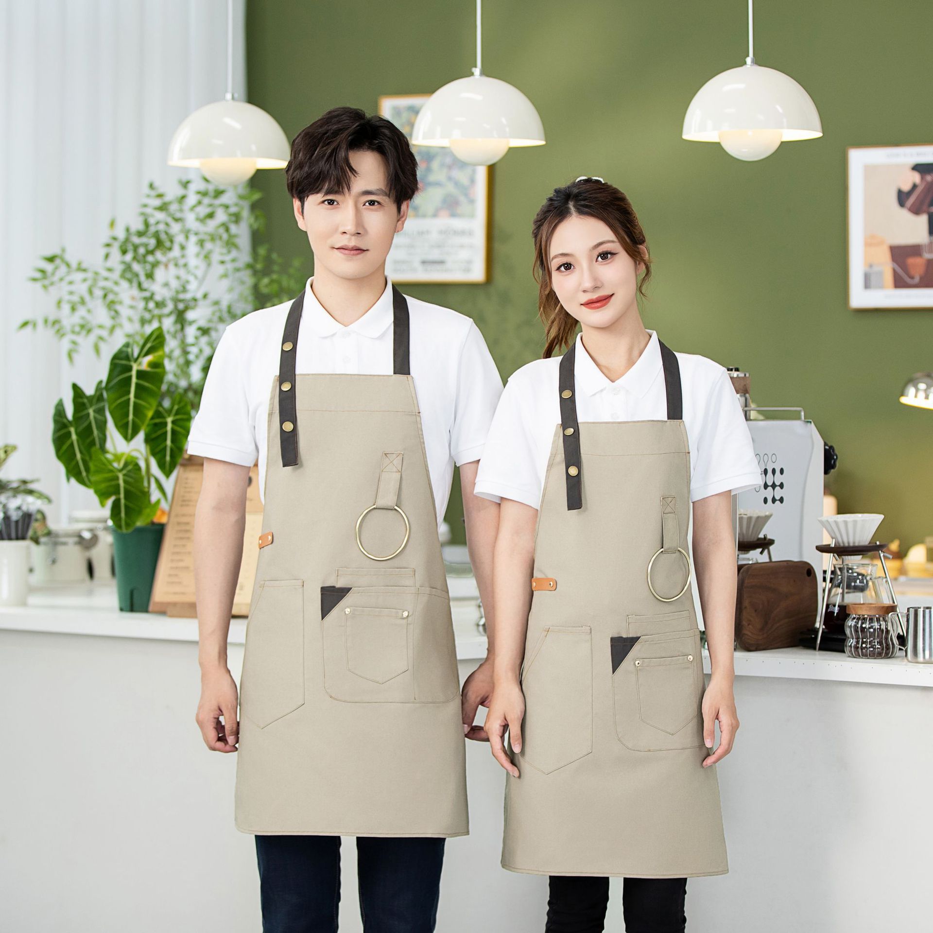 帆布防油防污餐饮专用饭店超市奶茶火锅花店工作服可调节挂脖围裙