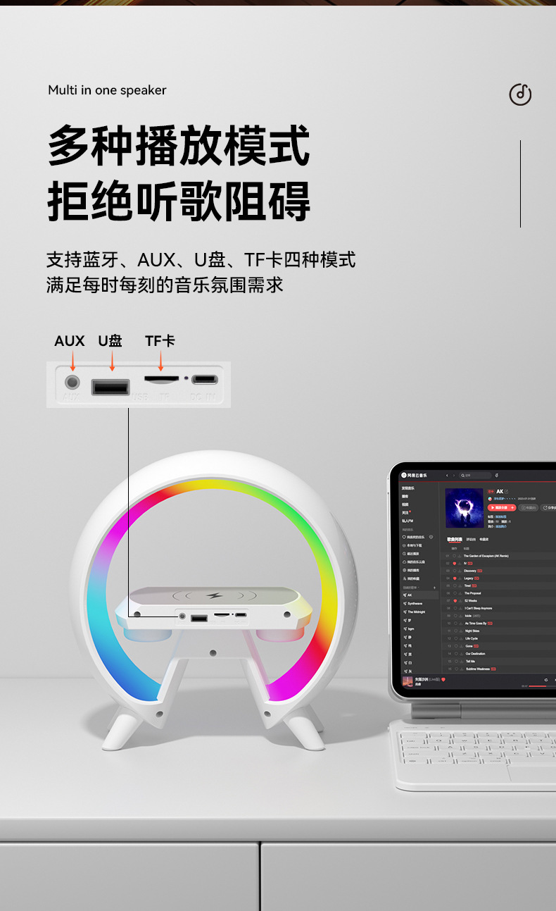 大G蓝牙音箱小夜灯多功能无线充电器智能氛围灯创意礼品音响G6A