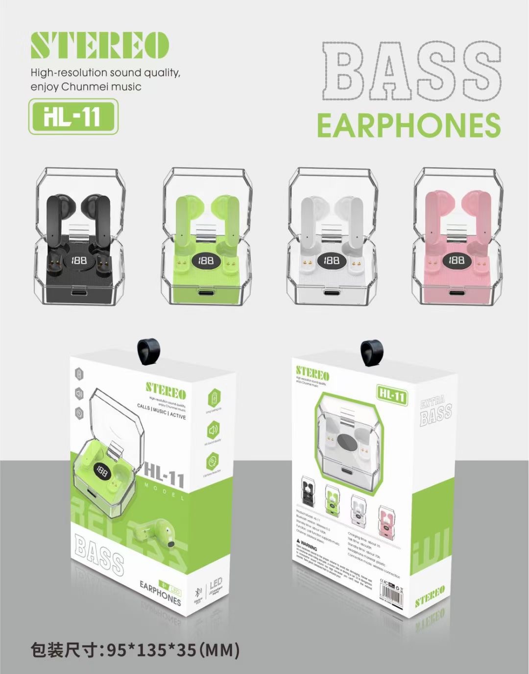 厂家现货HL11透明款蓝牙耳机运动休闲款无线耳塞式5.2蓝牙耳机