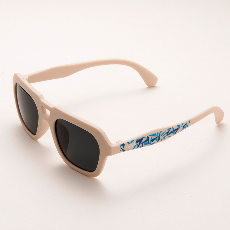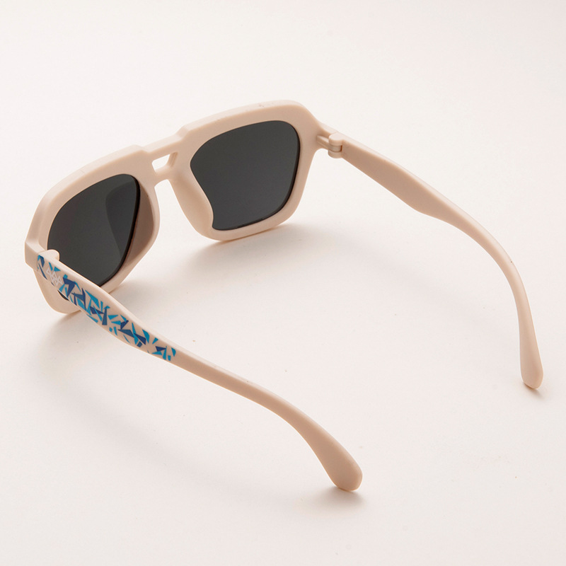 韩版儿童双梁墨镜男米色防晒太阳镜时尚印花方框女童防紫外线眼镜