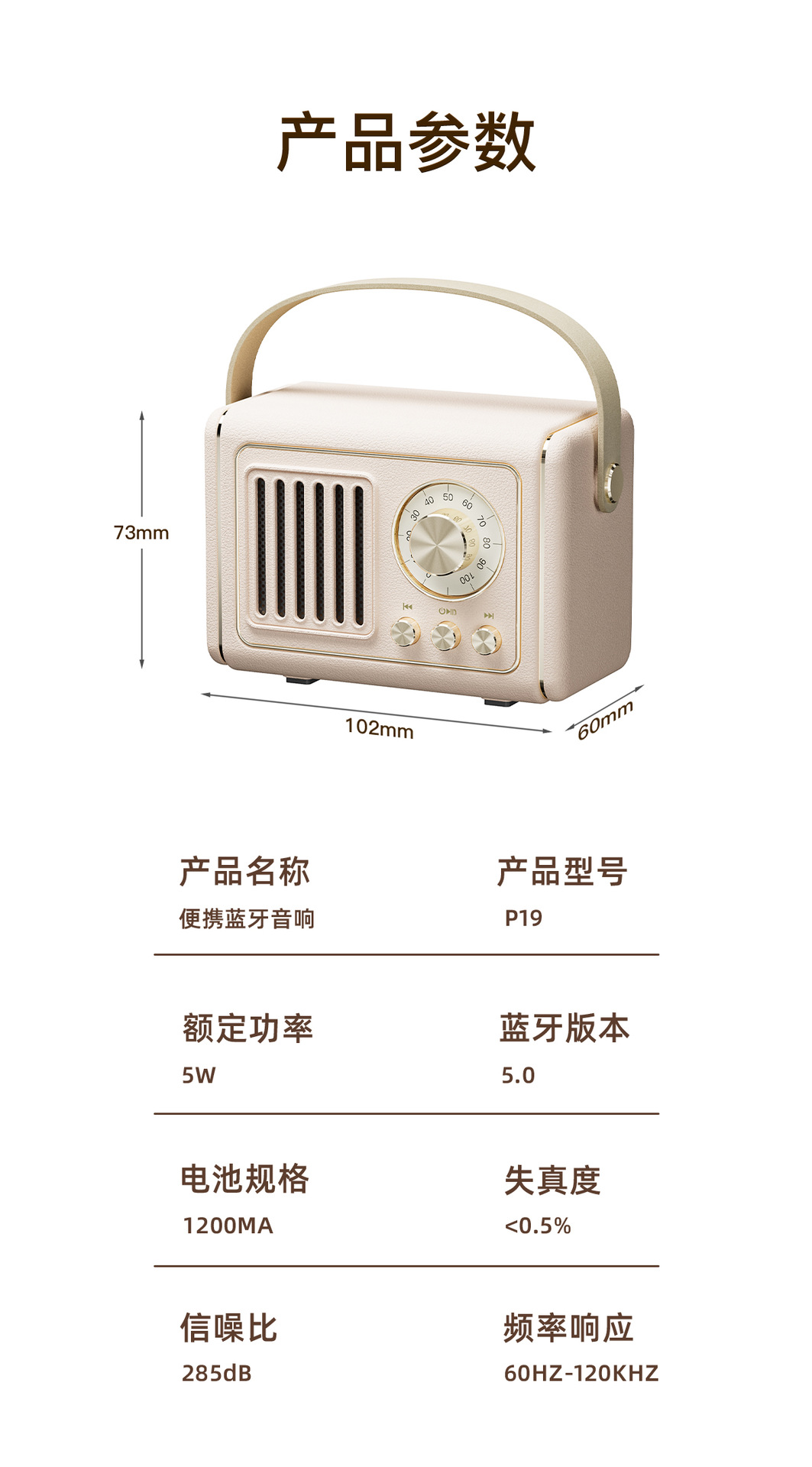 新品P19蓝牙音箱复古无线小音响户外手提创意礼品插卡收音机批发