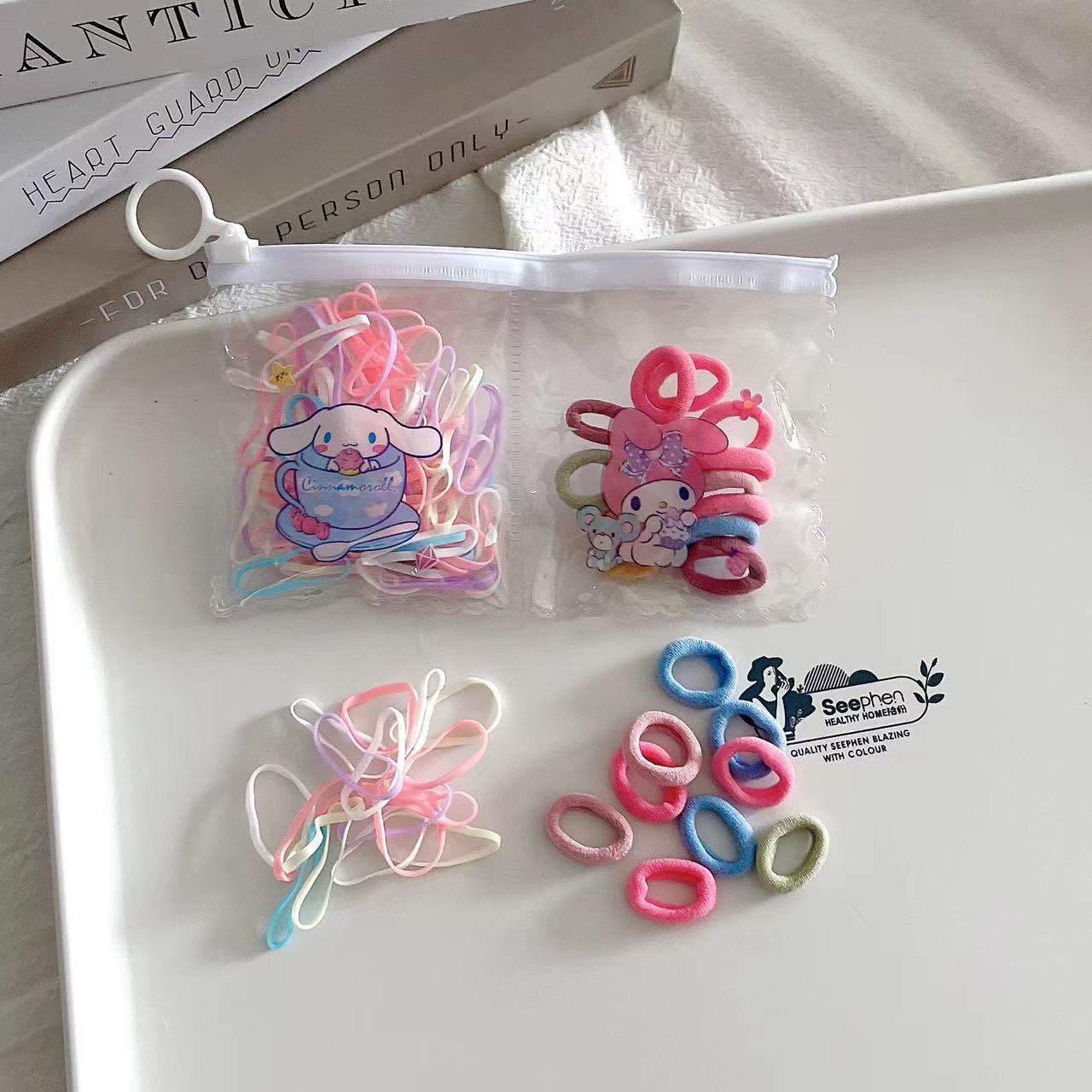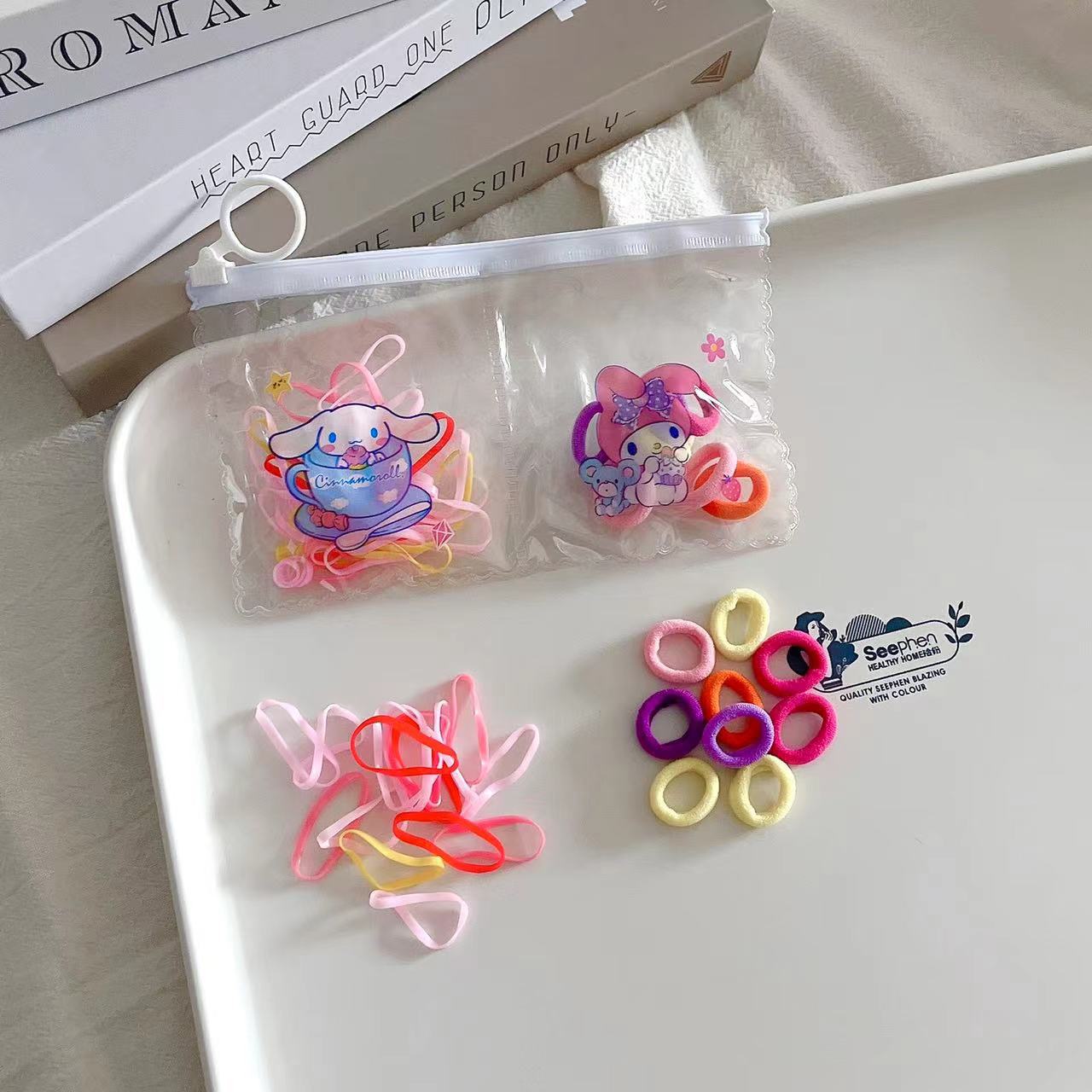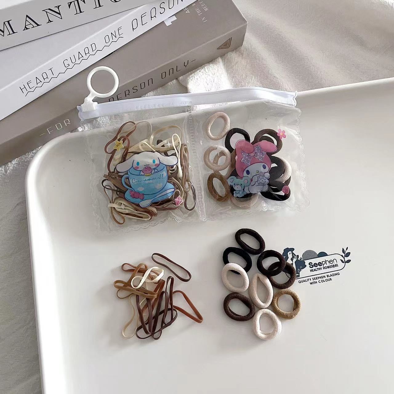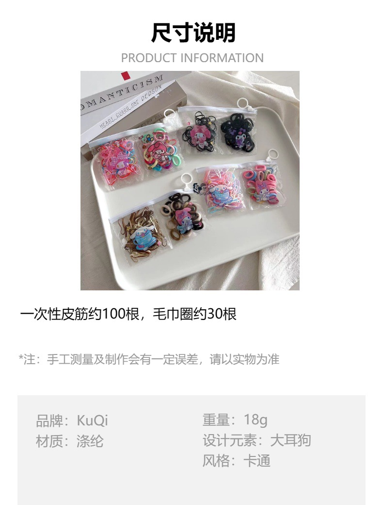 新款大耳狗拉链袋装毛巾圈一次性皮筋套装不伤发高弹力儿童扎头发
