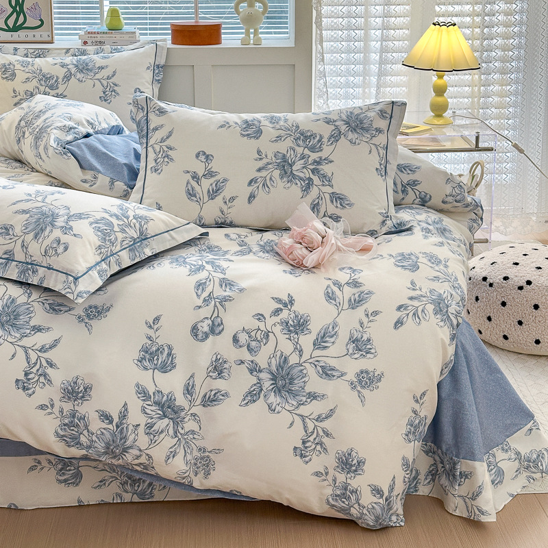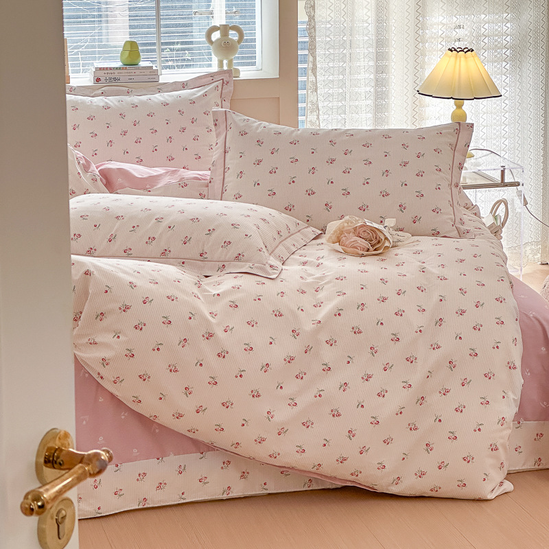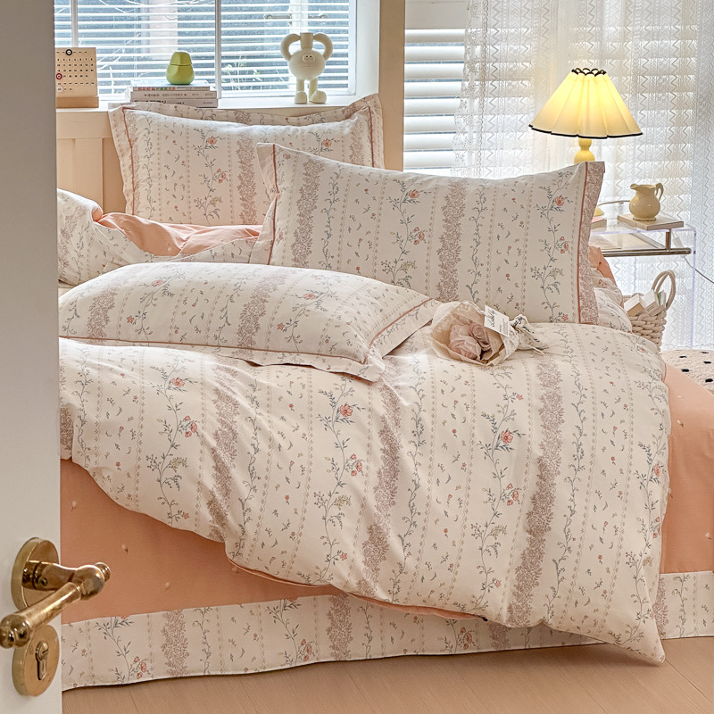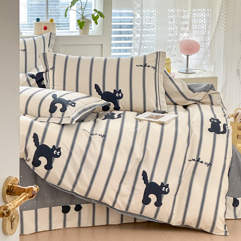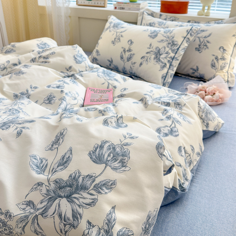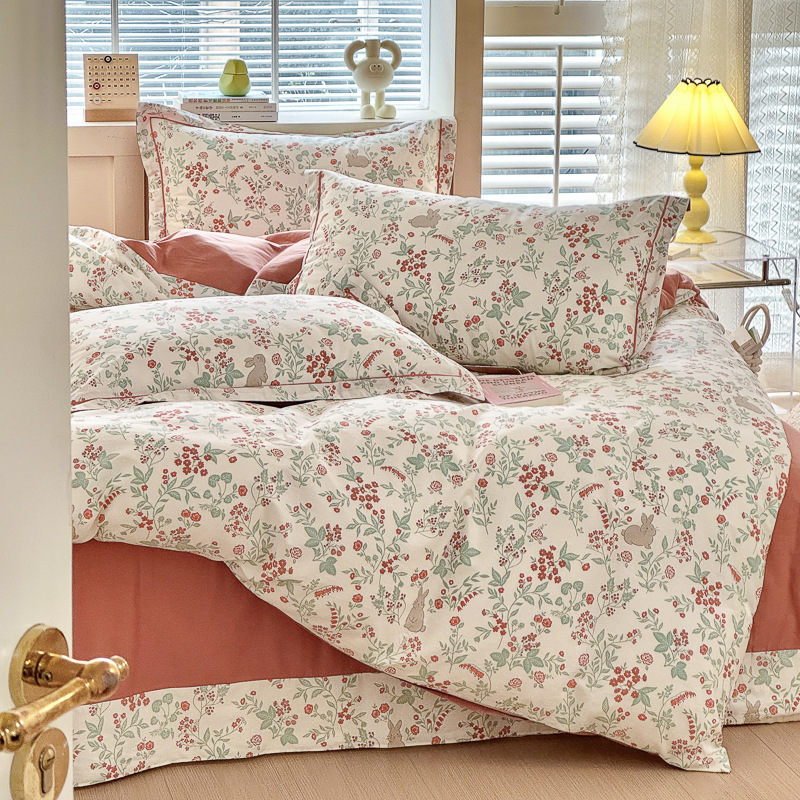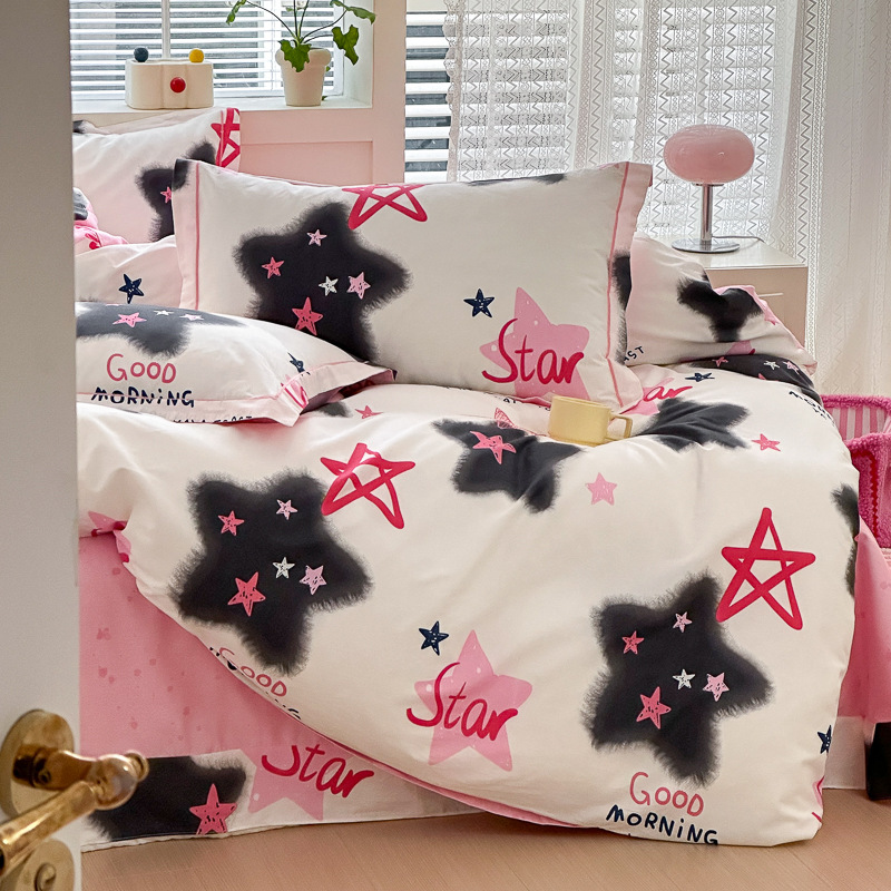网红款ins风纯棉床上四件套全棉100床品宿舍床单三件套床笠小清新
