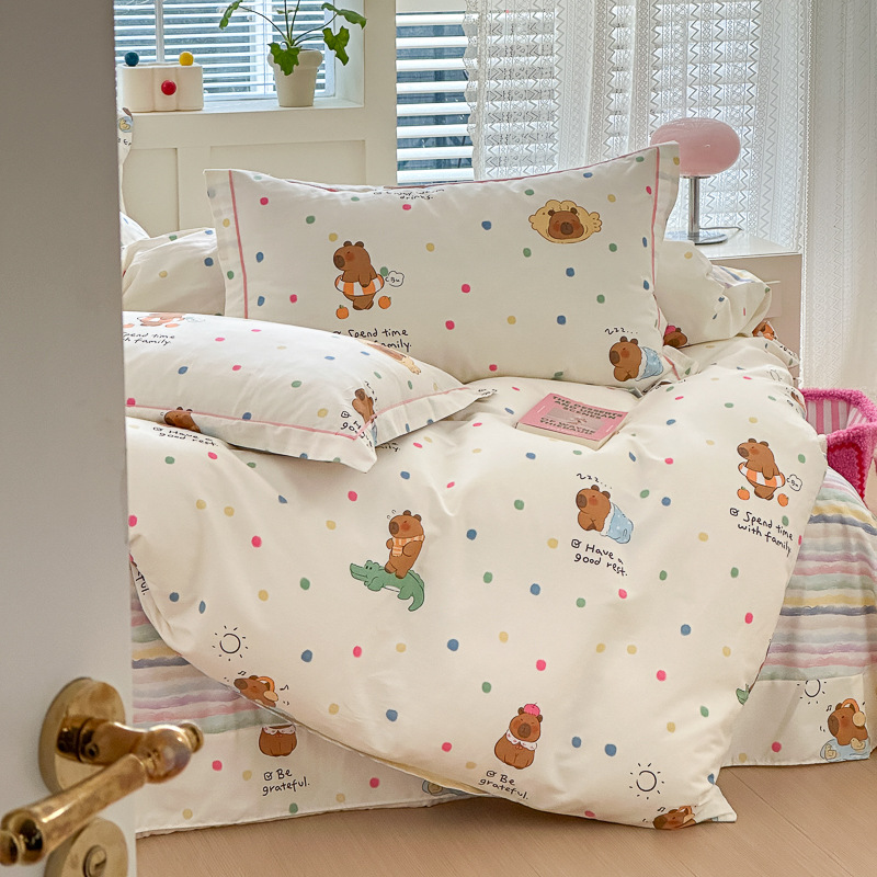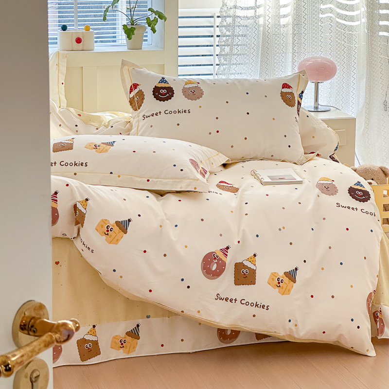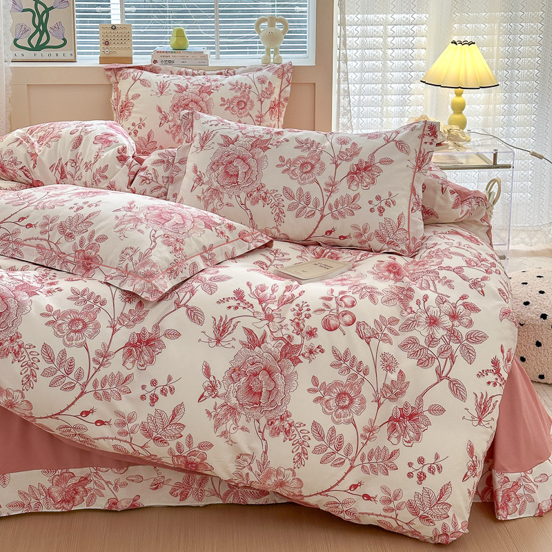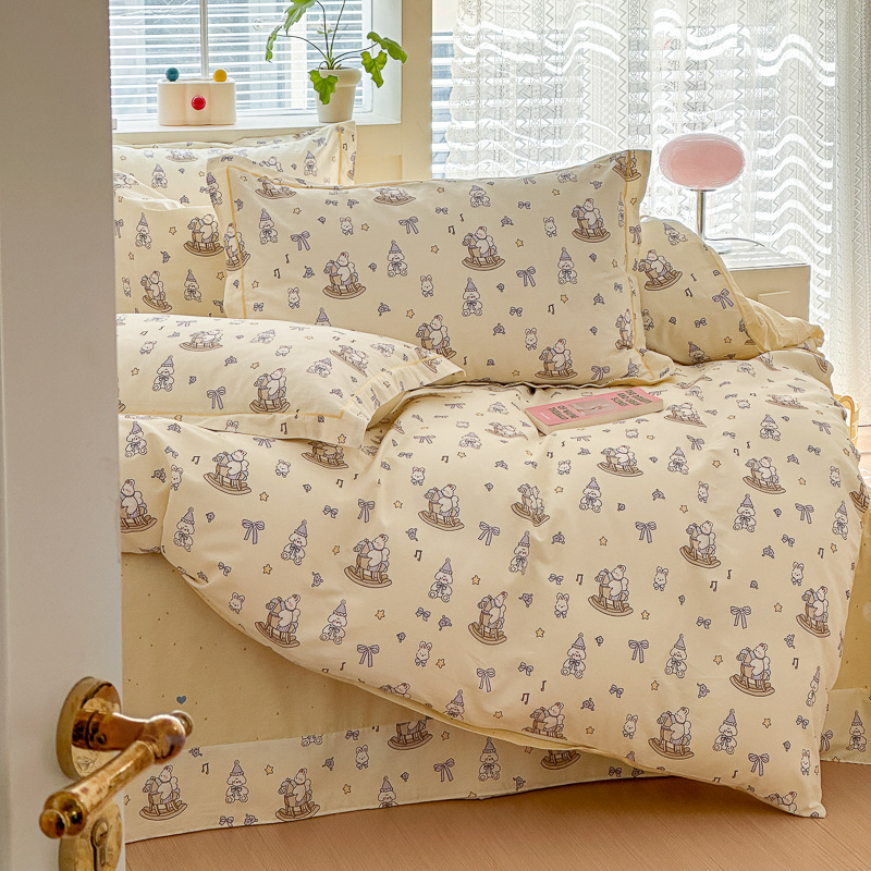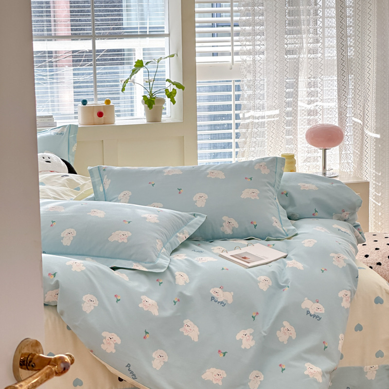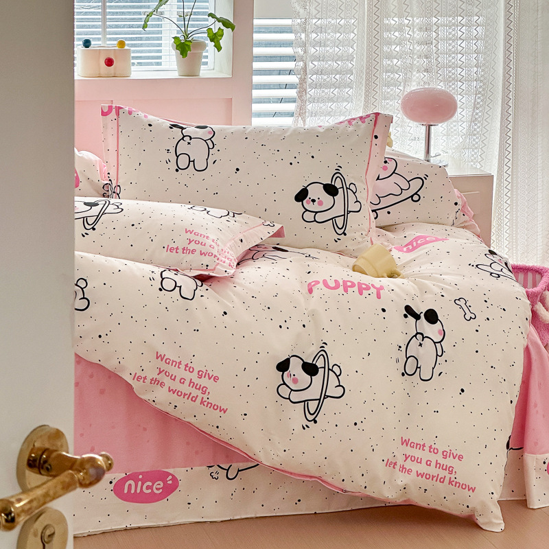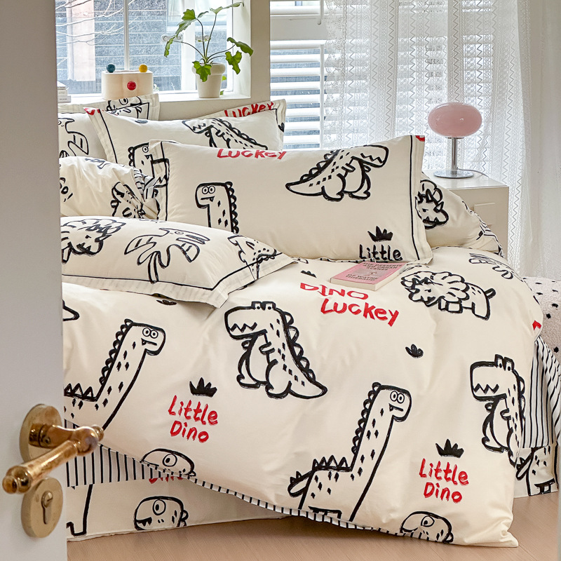 网红款ins风纯棉床上四件套全棉100床品宿舍床单三件套床笠小清新