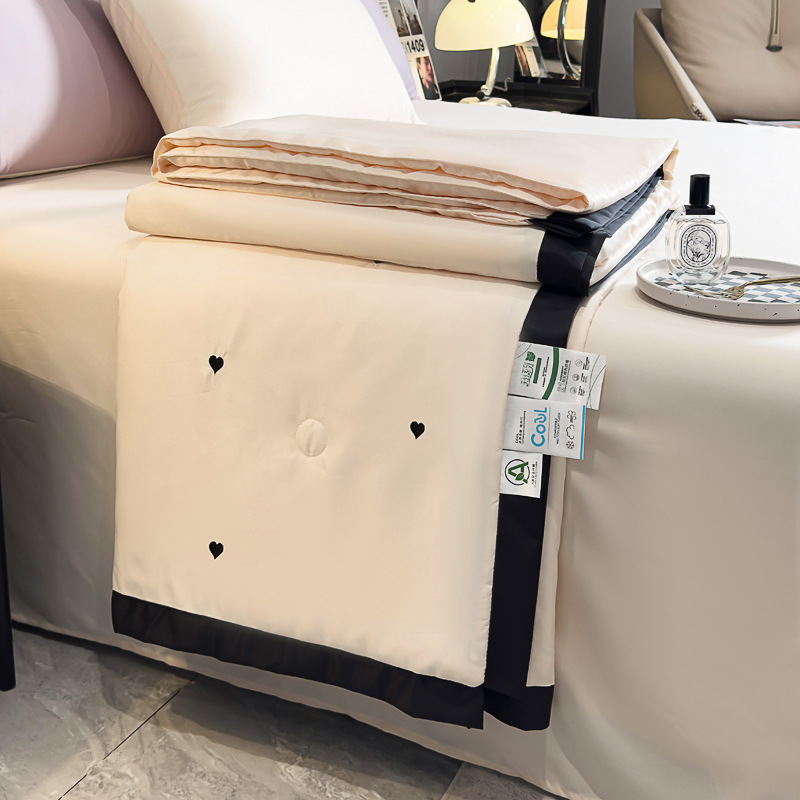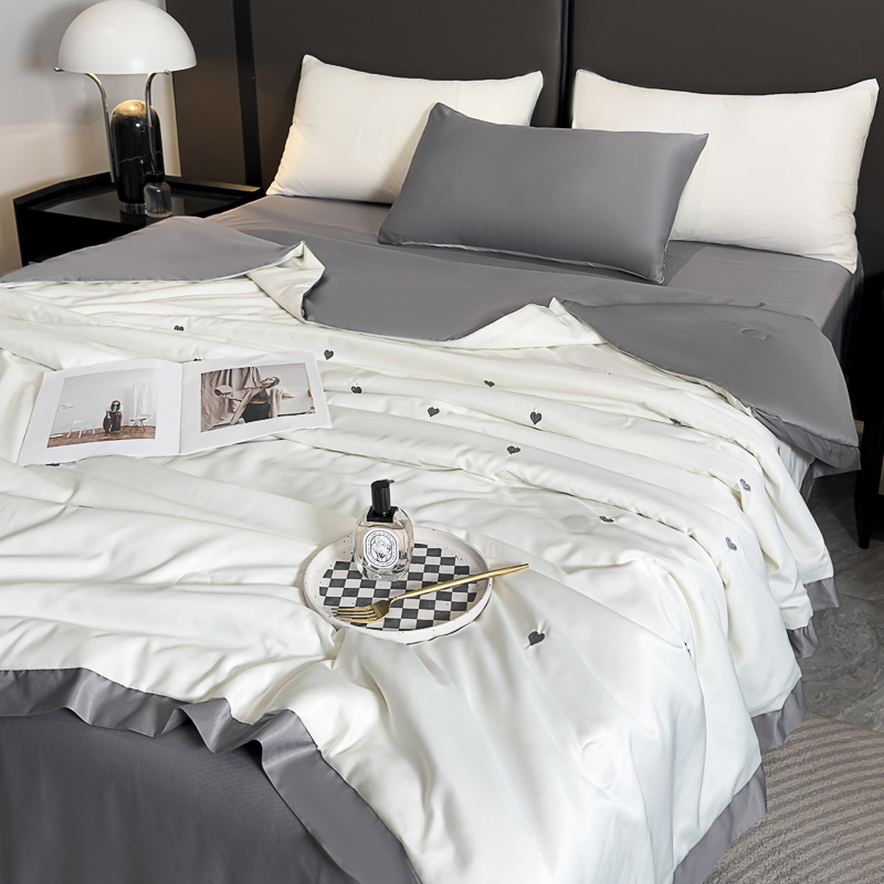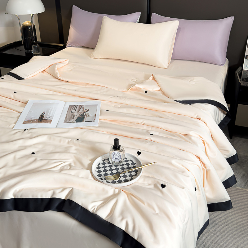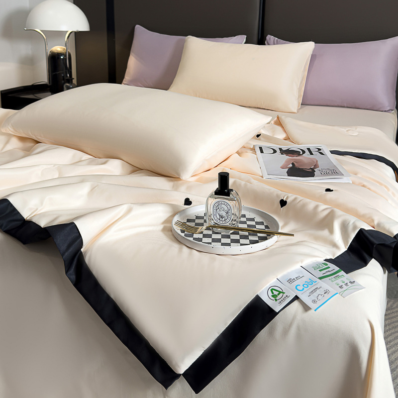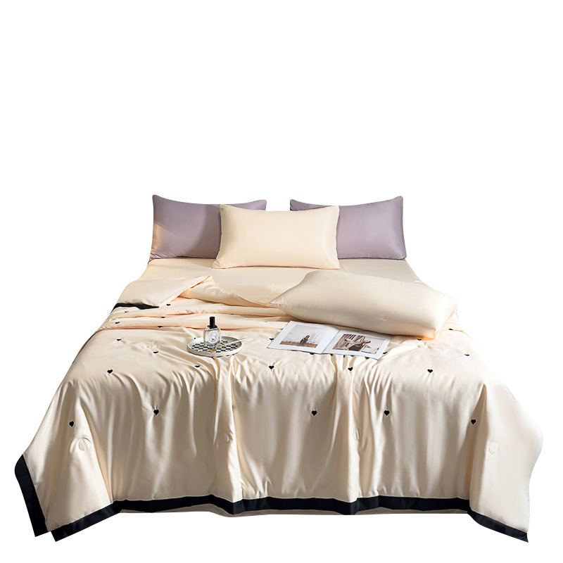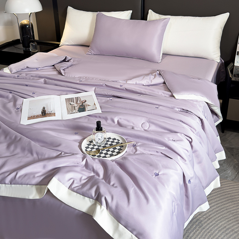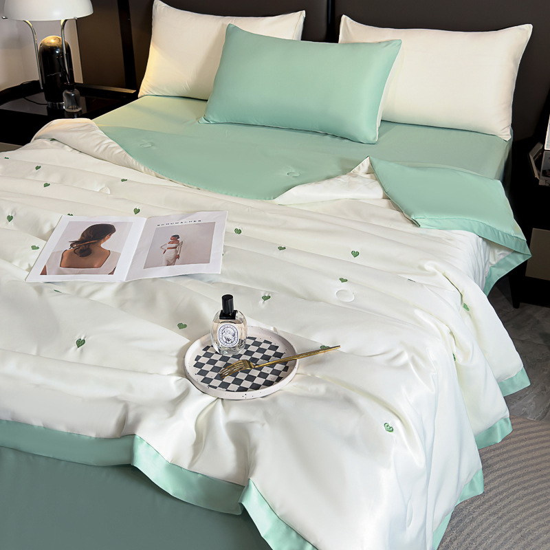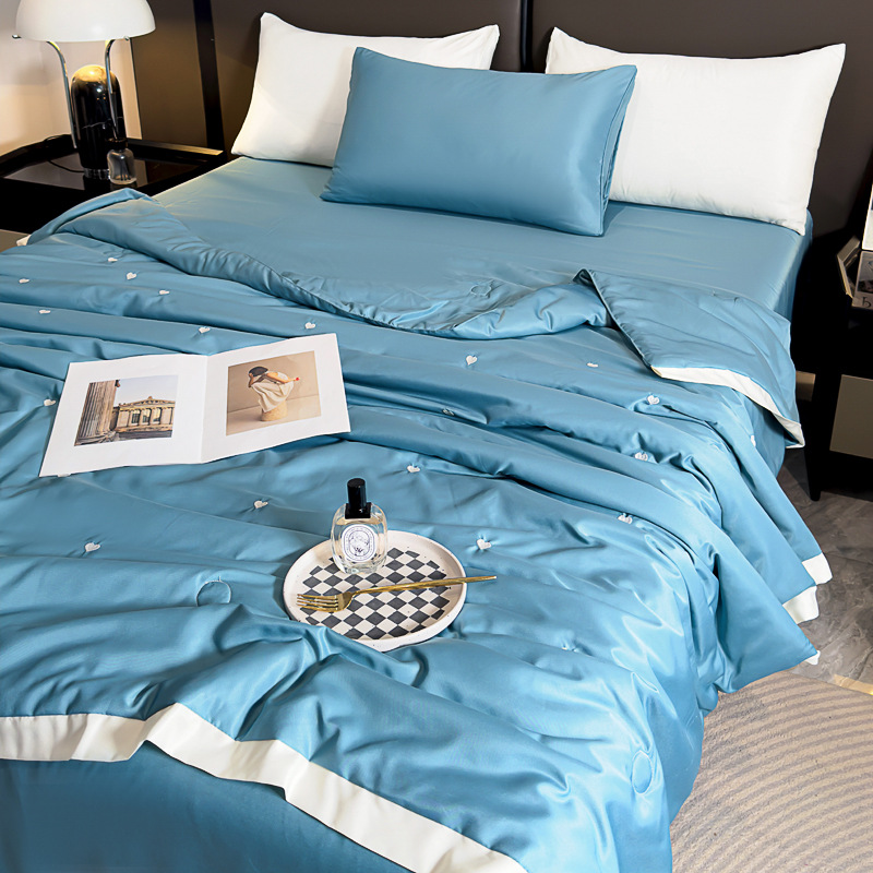 轻奢水洗冰丝夏凉被四件套纯色刺绣天丝夏被床单床笠款三件套批发