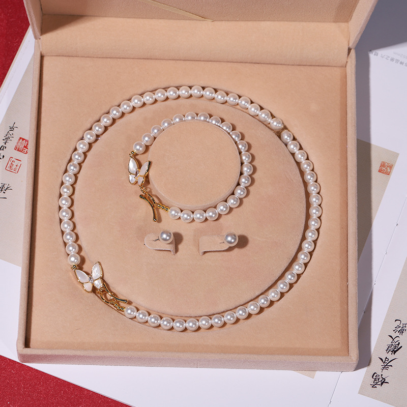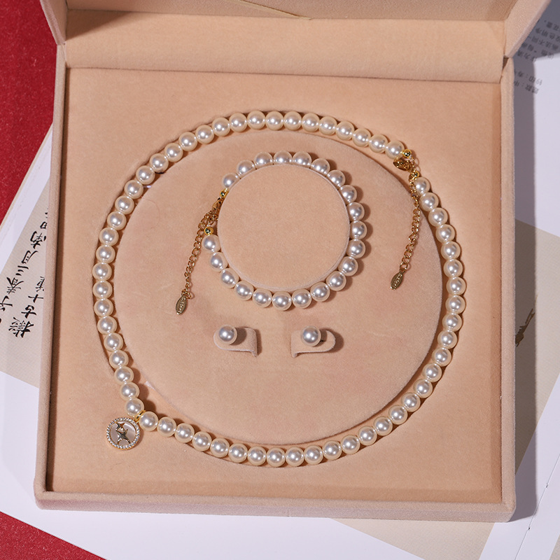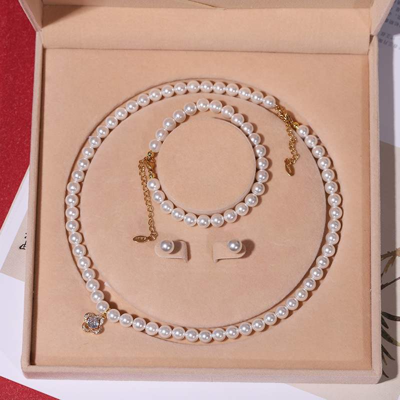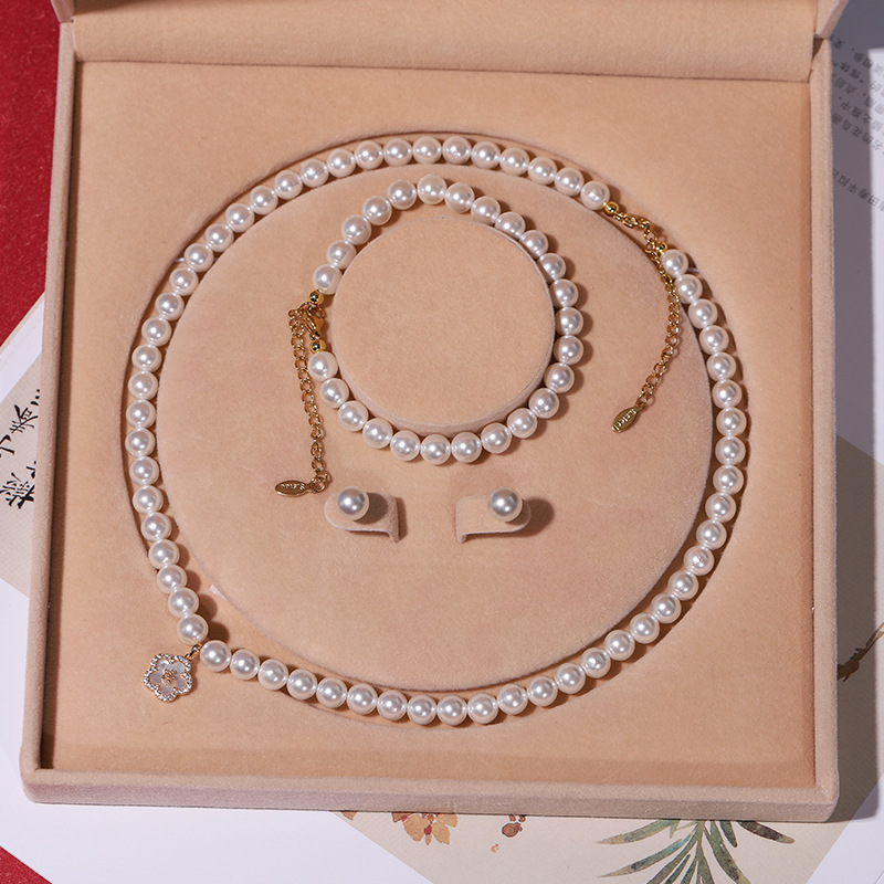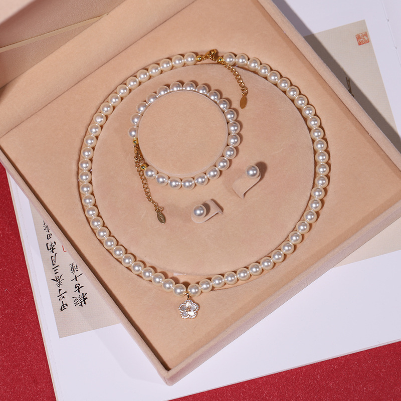 批发天然深海贝壳珍珠贝珠项链女款三件套饰品母亲节礼物直播礼品
