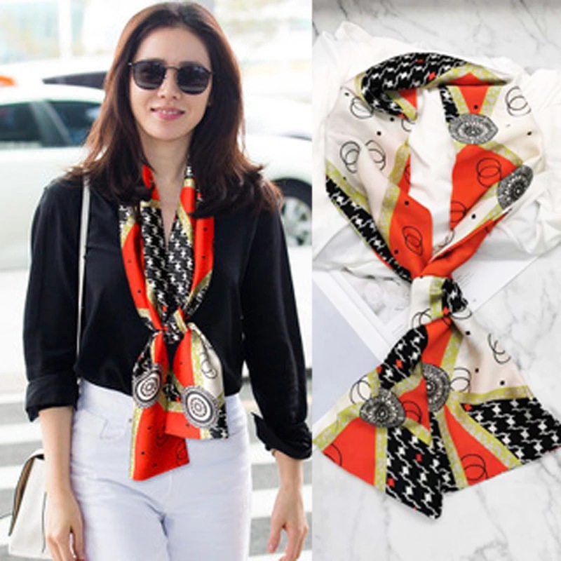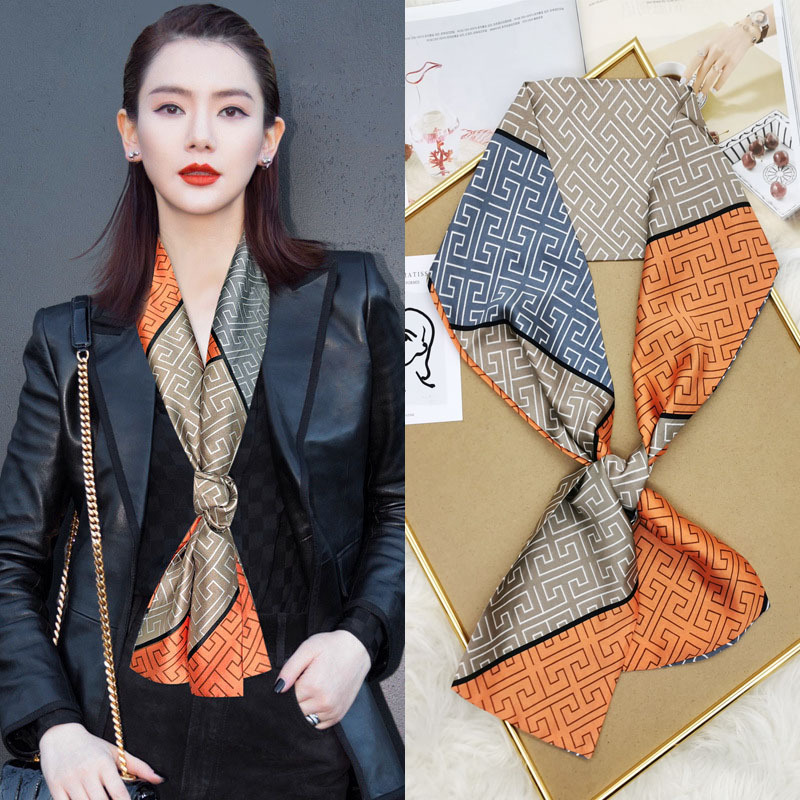 2024春秋新款韩版窄长条小丝带领巾缠绑包包手柄丝巾装饰围巾薄款