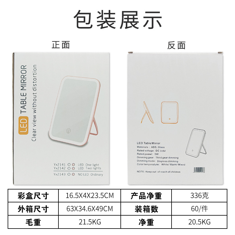 led化妆镜带灯台式网红女补光小镜子ins风宿舍桌面便携梳妆镜定制