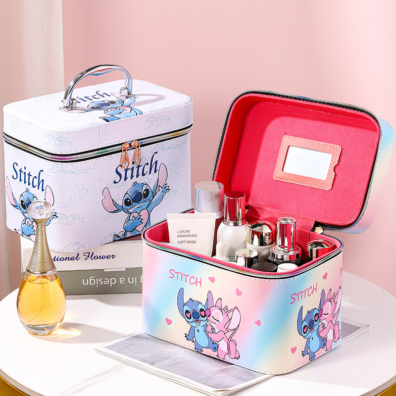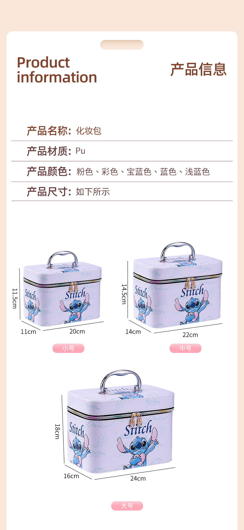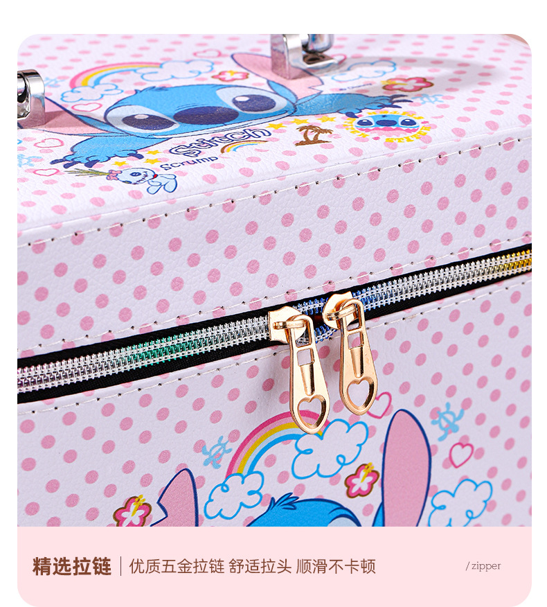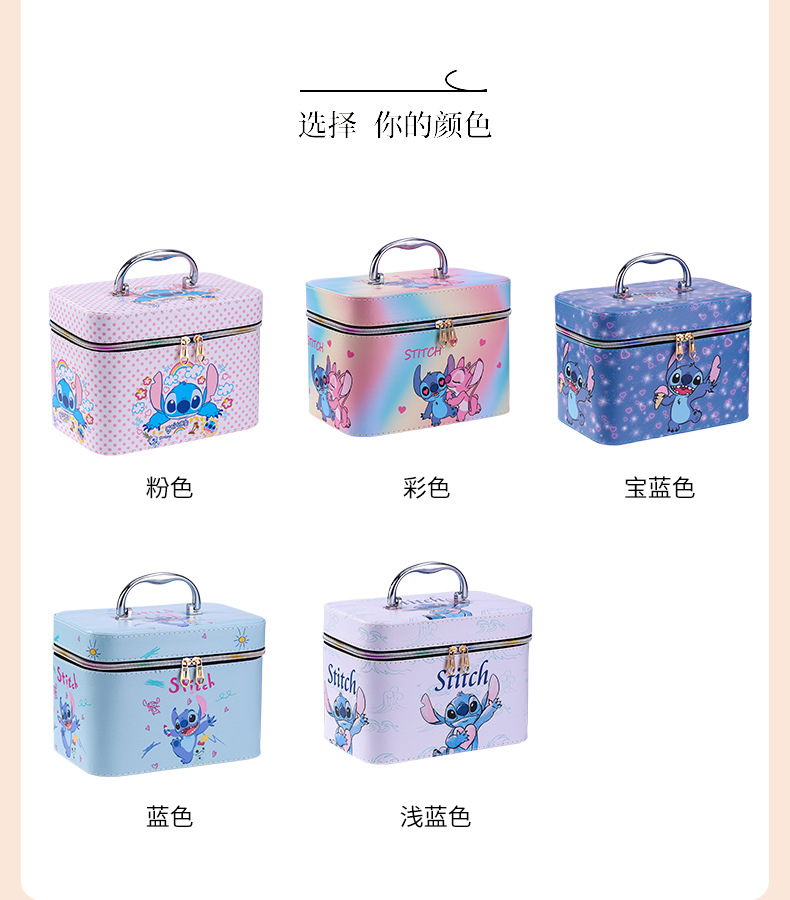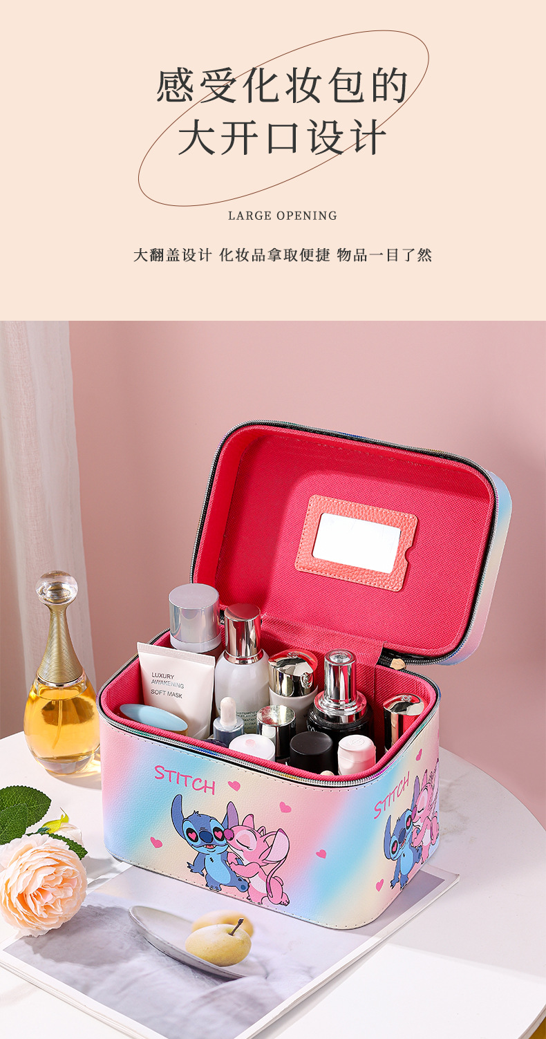 新款大容量史迪奇化妆箱高颜值便携带镜子可爱多功能化妆包手提