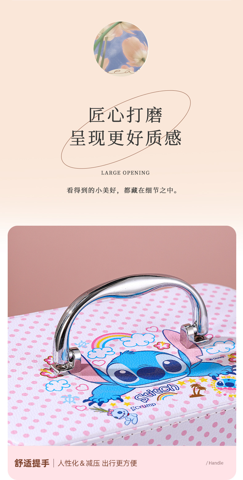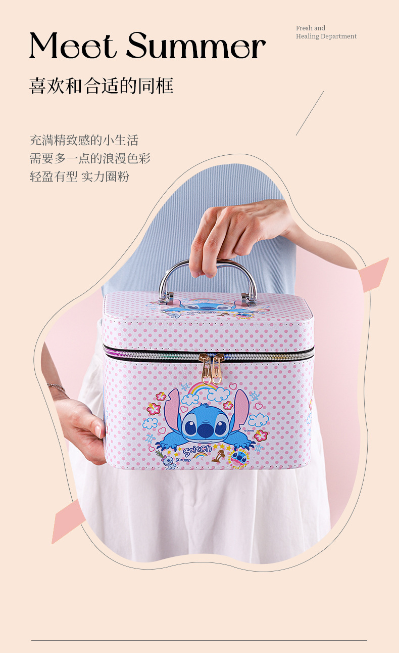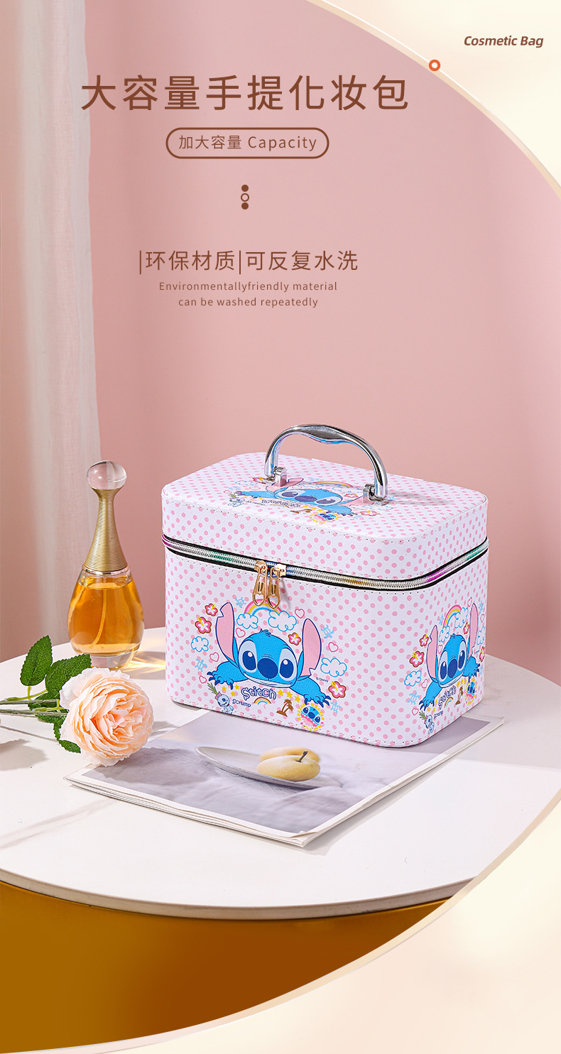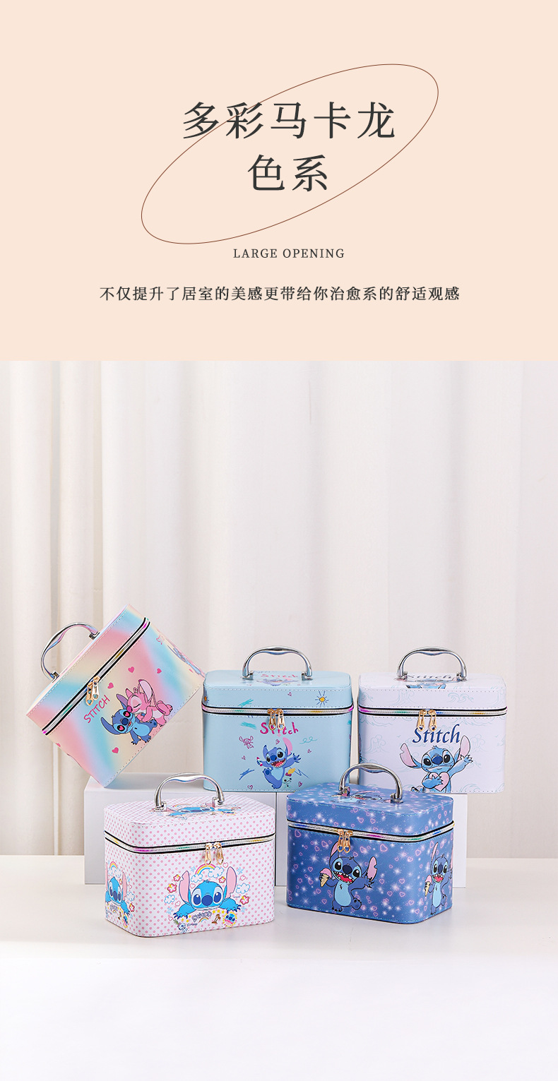 新款大容量史迪奇化妆箱高颜值便携带镜子可爱多功能化妆包手提