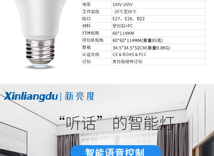 WiFi智能灯泡Alexa语音控制RGBCW调光调色A19球泡涂鸦Smart Life