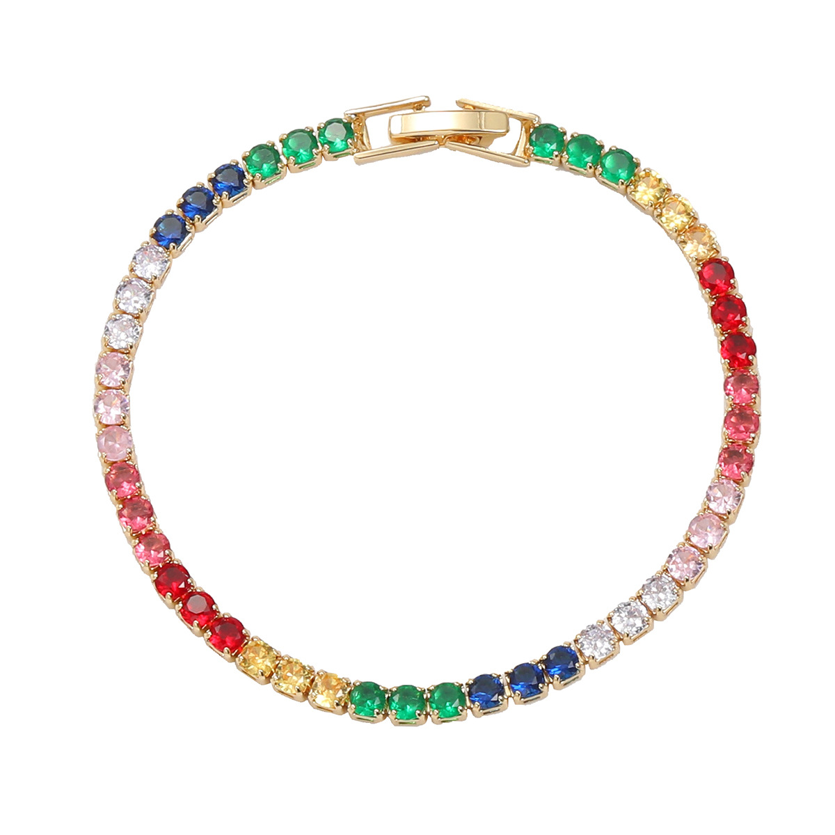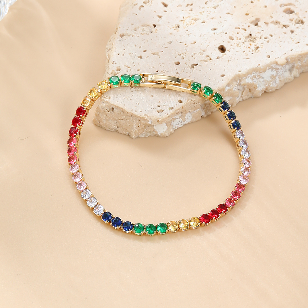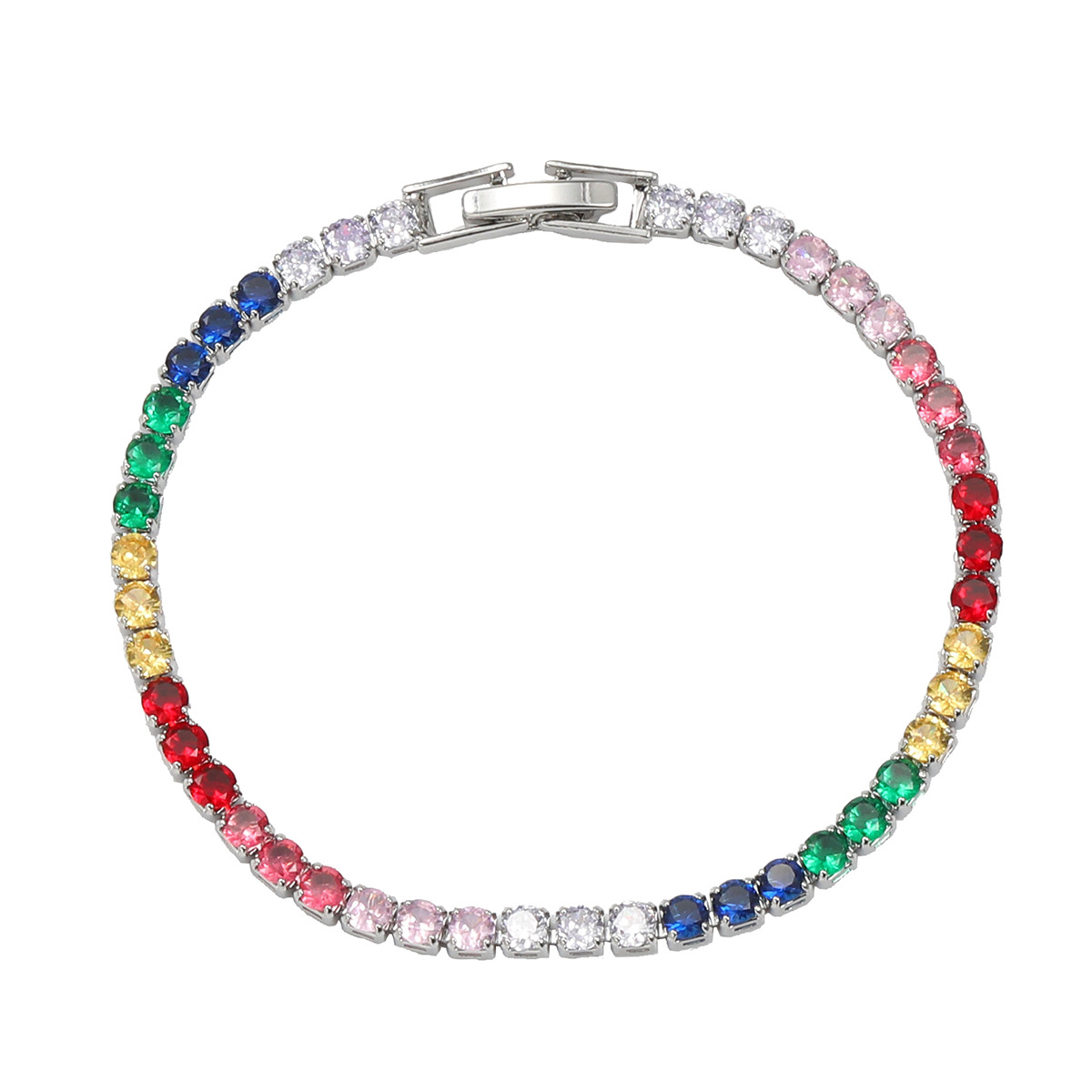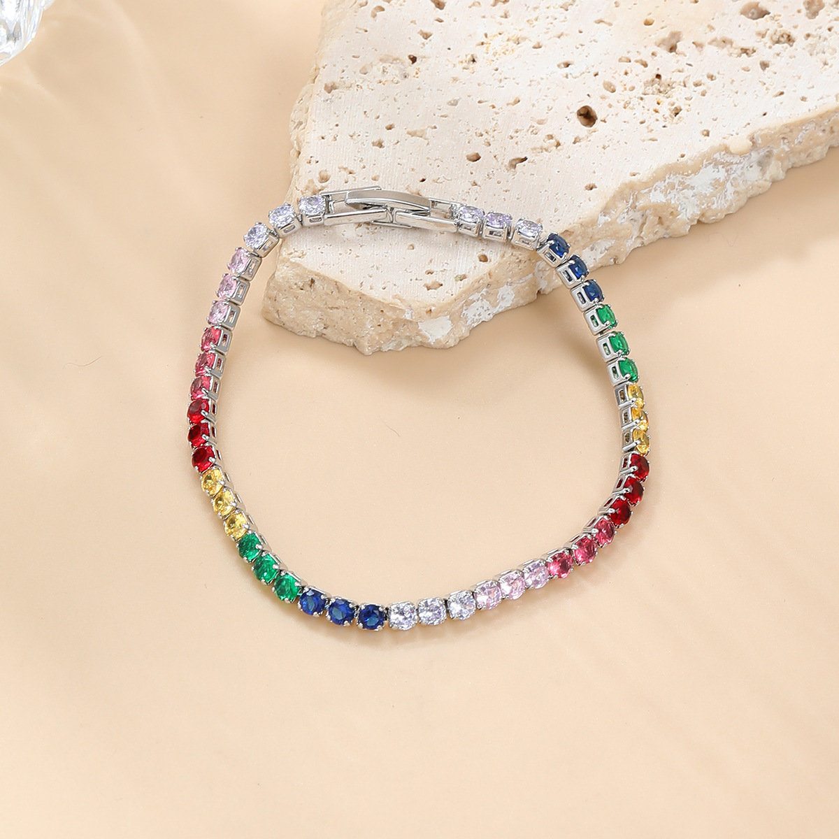 铜镶锆石手链女网球链时尚欧美彩钻手饰配饰跨境饰品bracelet