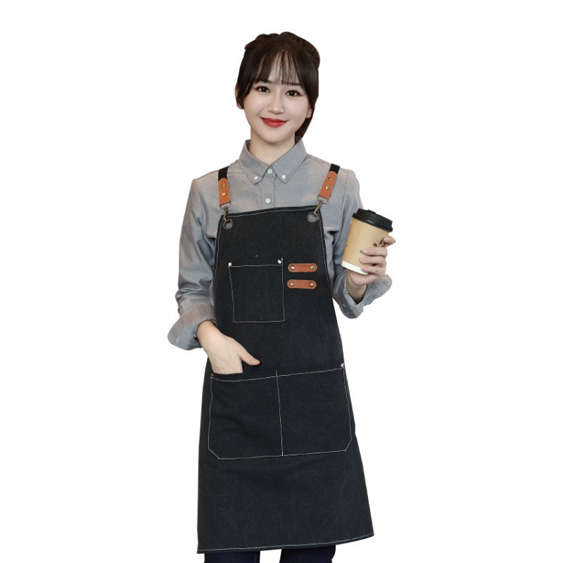 工厂批发帆布围裙定制防水防油厂厨房印字奶茶店家用高颜值围裙女
