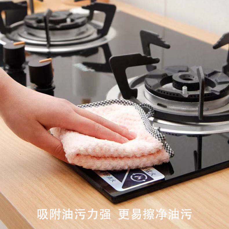 菠萝格吸水家用洗碗毛巾批发清洁厨房懒人抹布珊瑚绒纤维擦手方巾