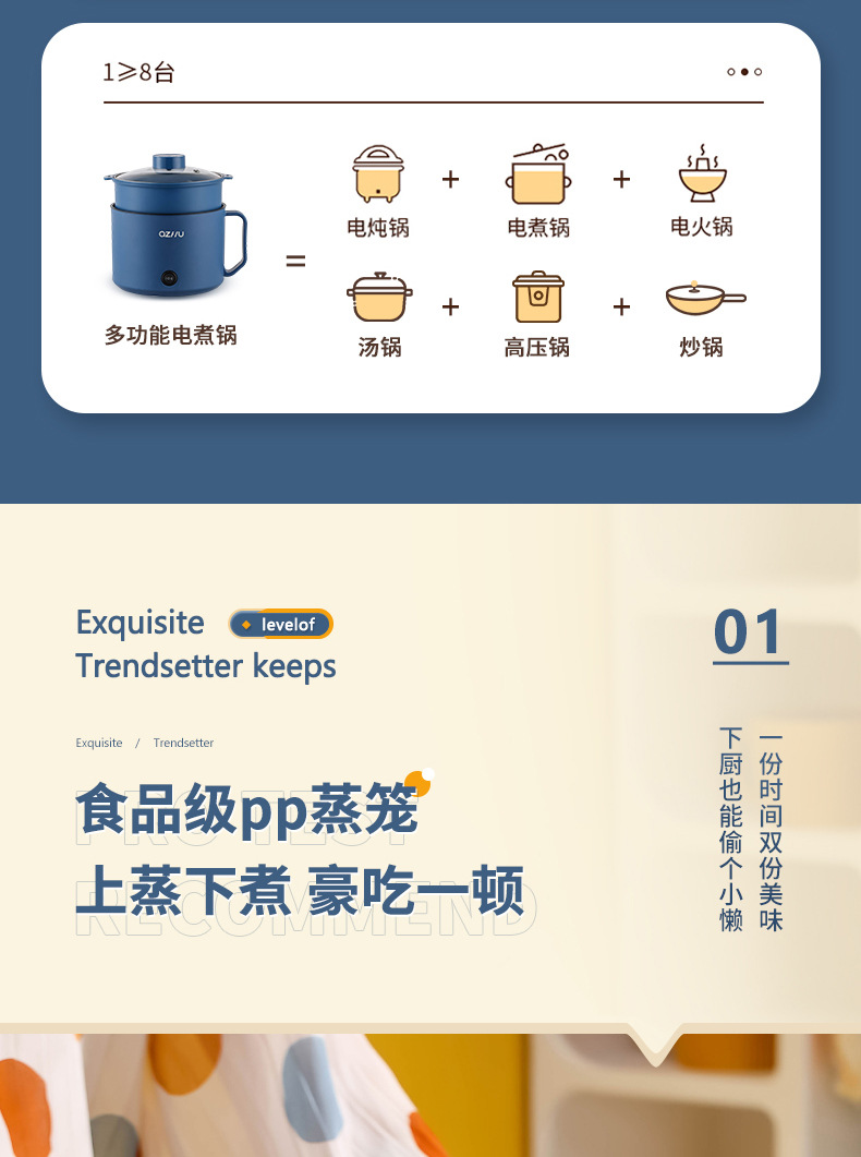 礼品电煮锅多功能一体锅学生宿舍小型电热锅上蒸下煮一人食电火锅