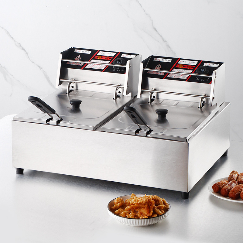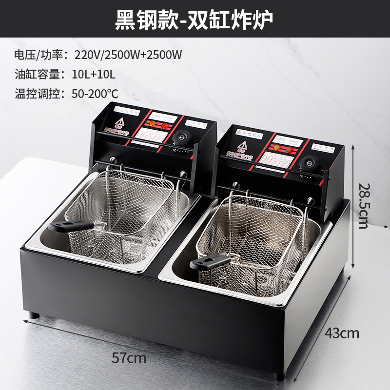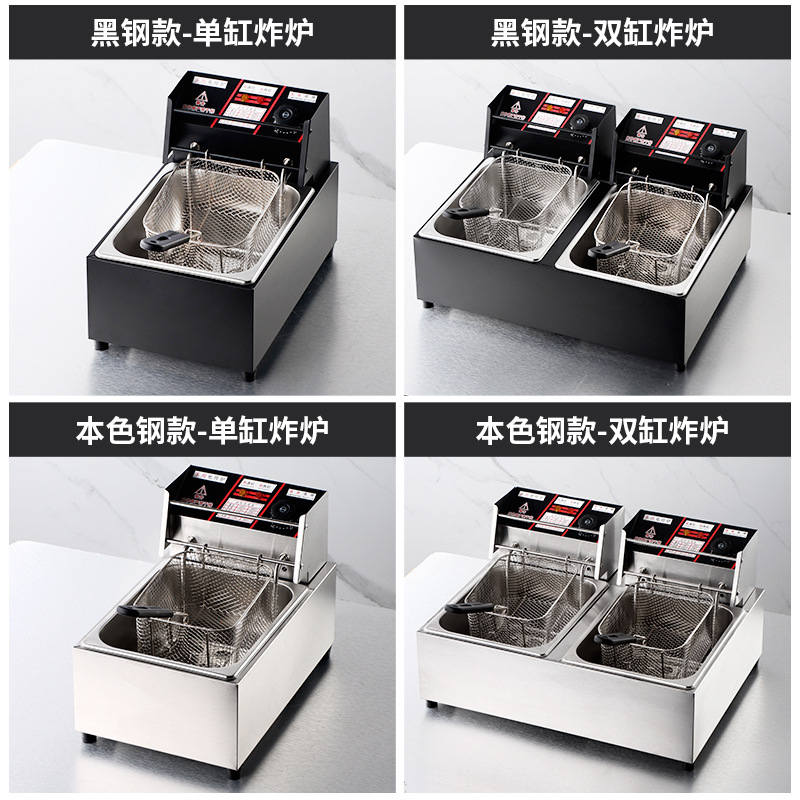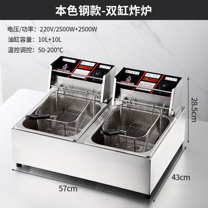 加厚不锈钢电炸炉商用摆摊单双缸油炸机控温大容量薯条炸鸡电炸锅