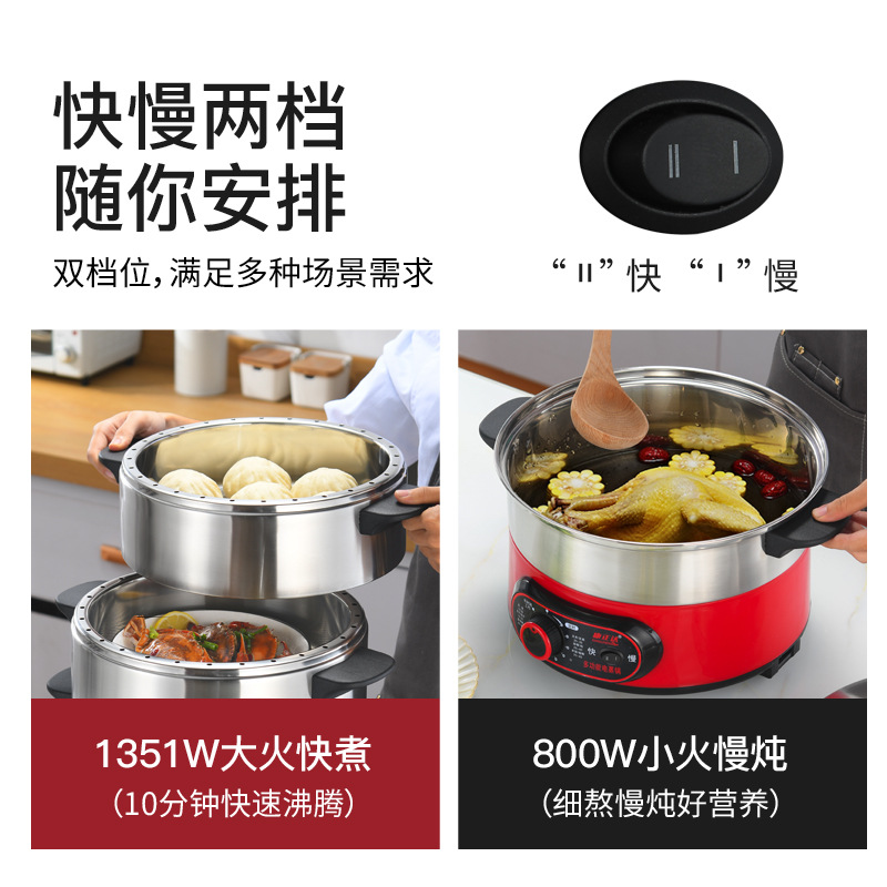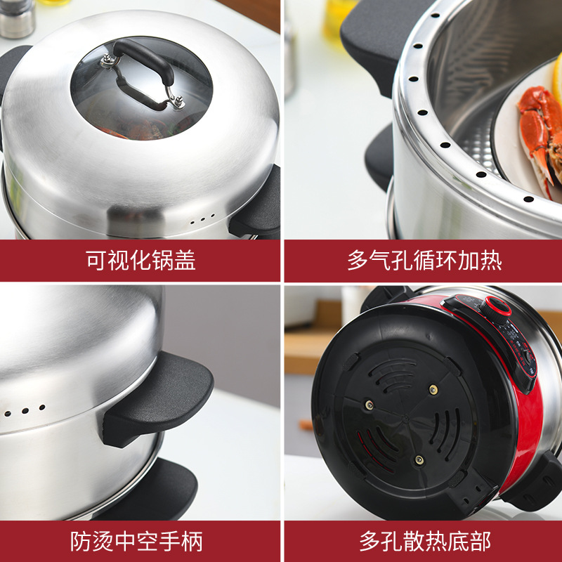 定时多层电蒸锅加厚不锈钢快慢档多功节能不串原味大容量无孔笼屉
