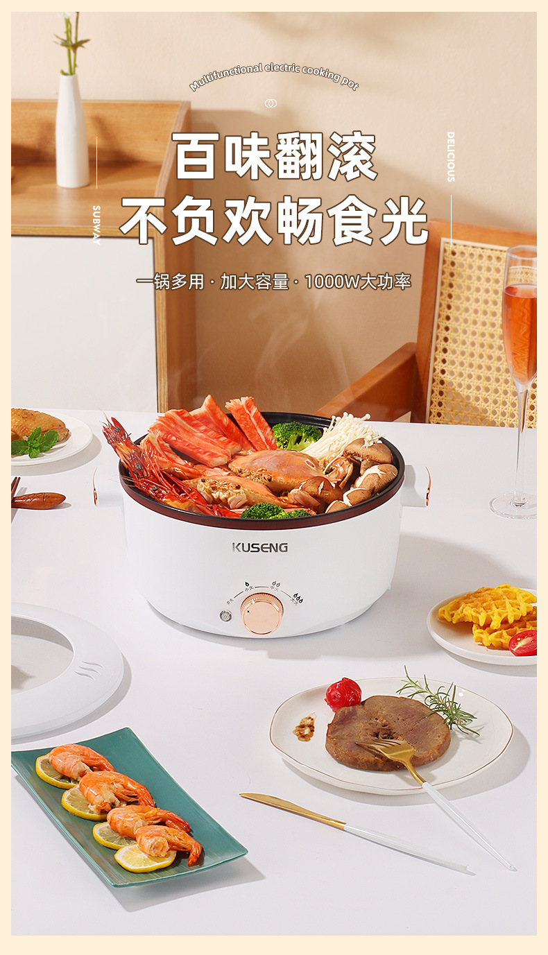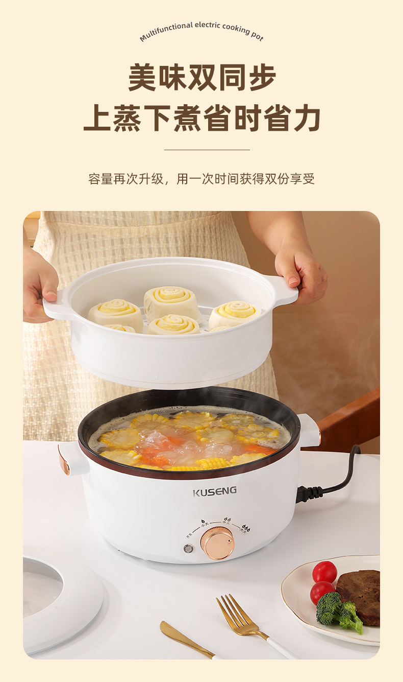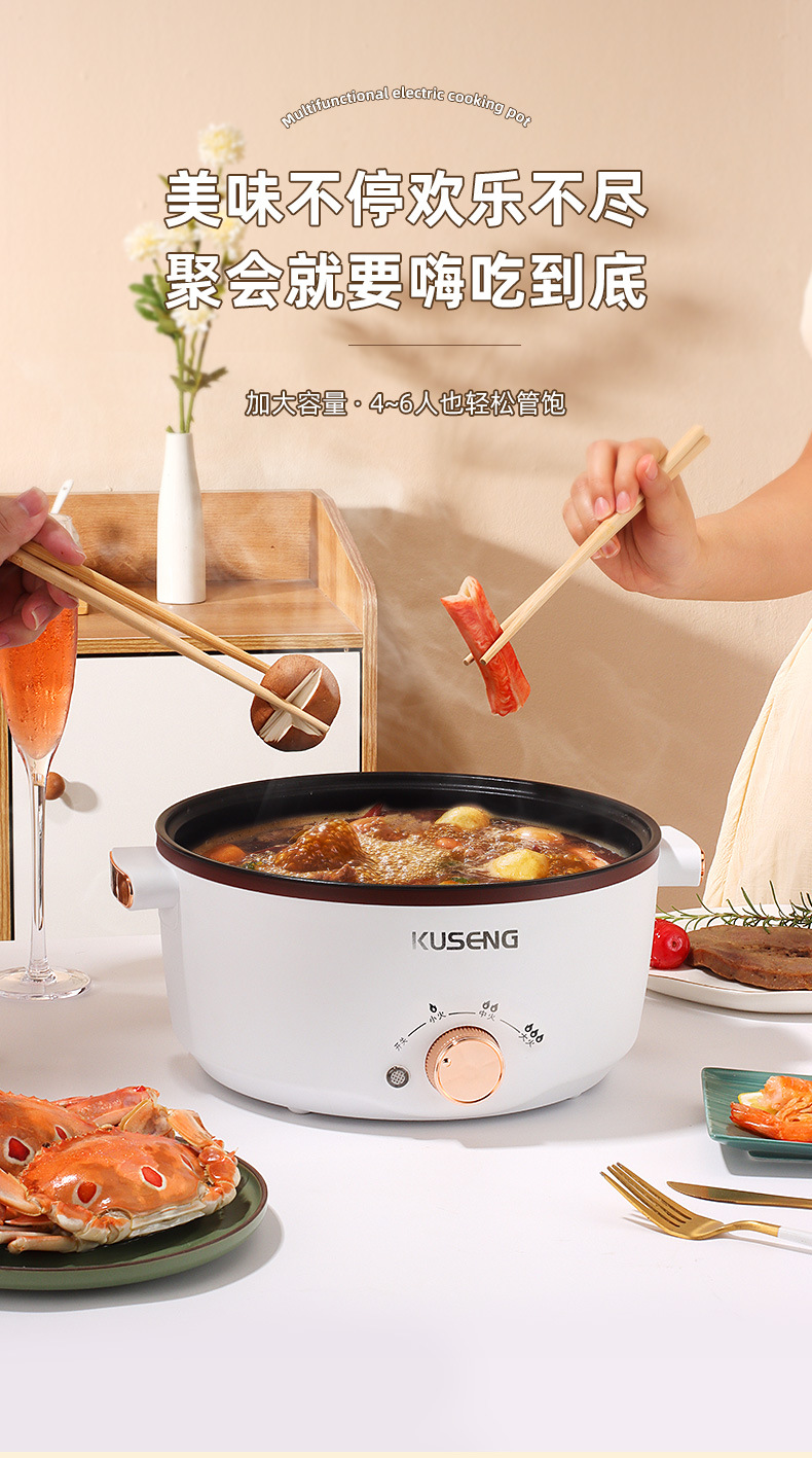 礼品多功能电煮锅家用大容量蒸煮一体电热锅跨境批发双耳电火锅