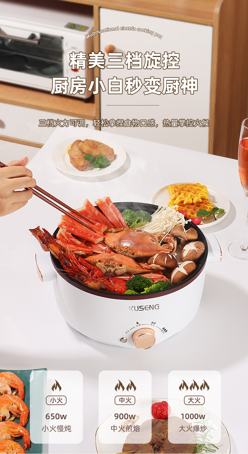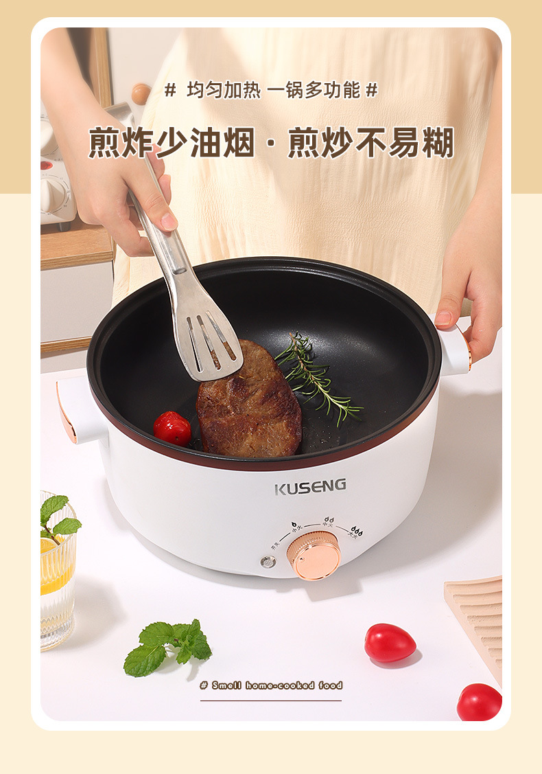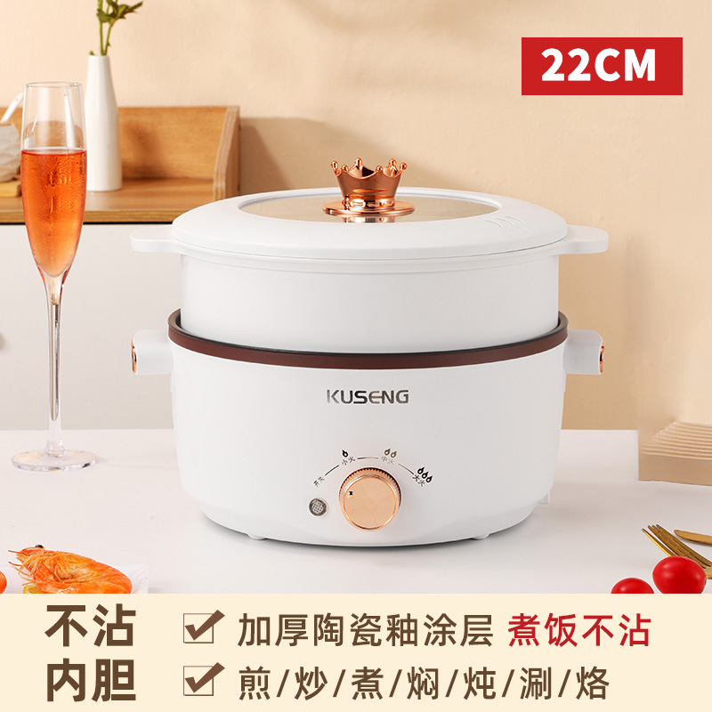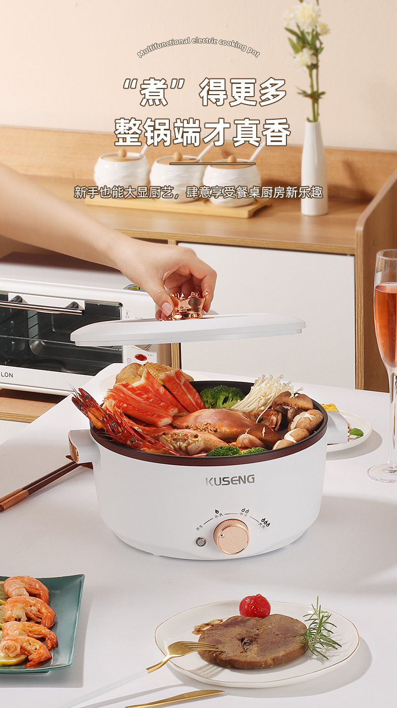 礼品多功能电煮锅家用大容量蒸煮一体电热锅跨境批发双耳电火锅