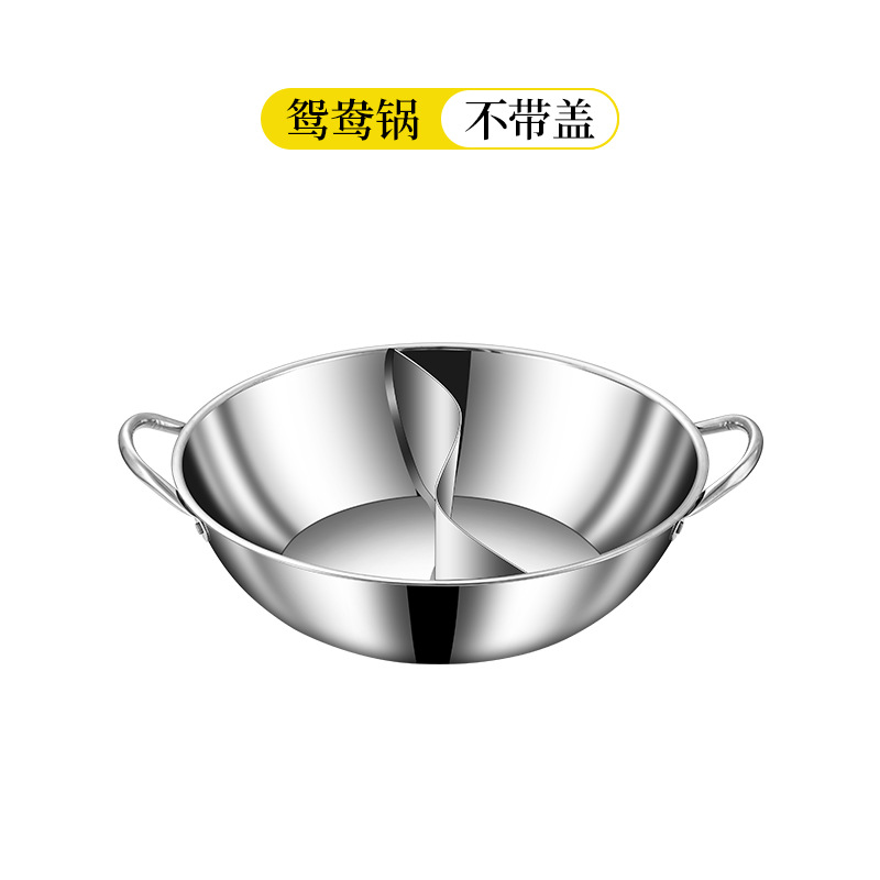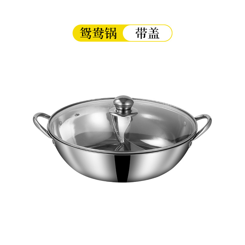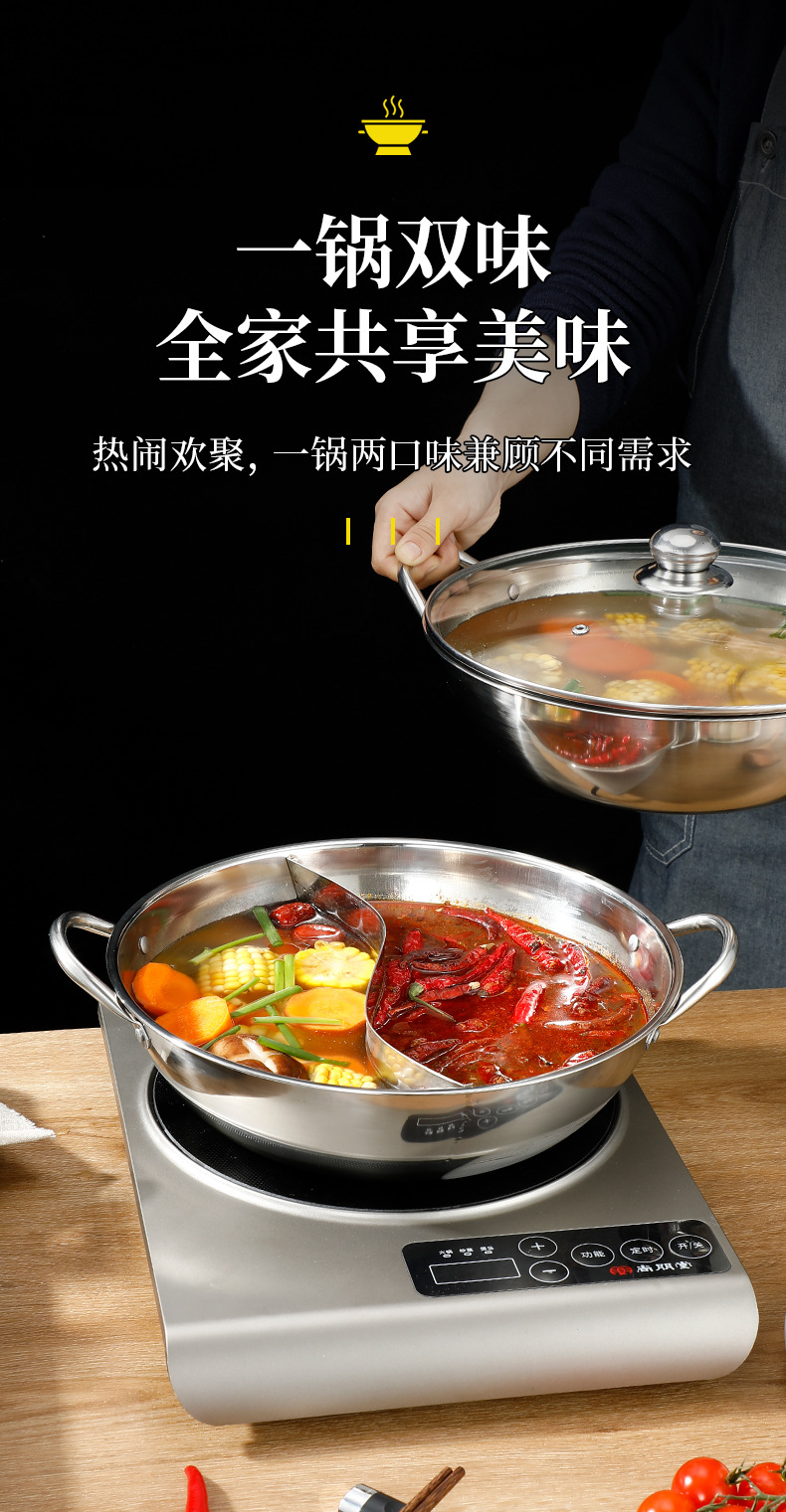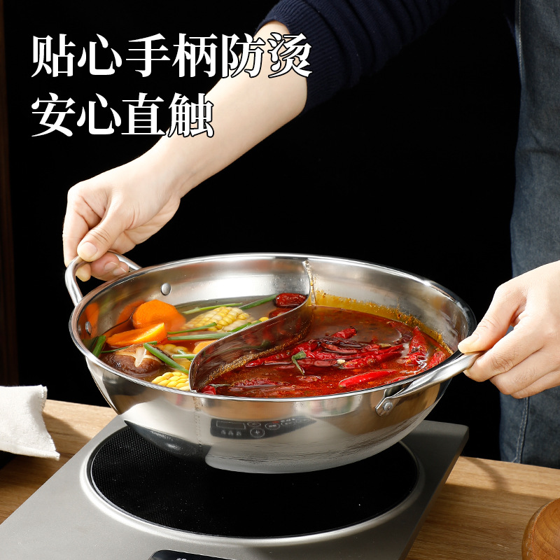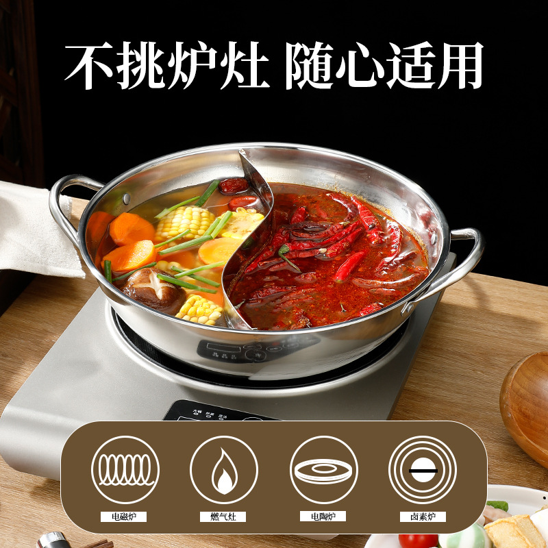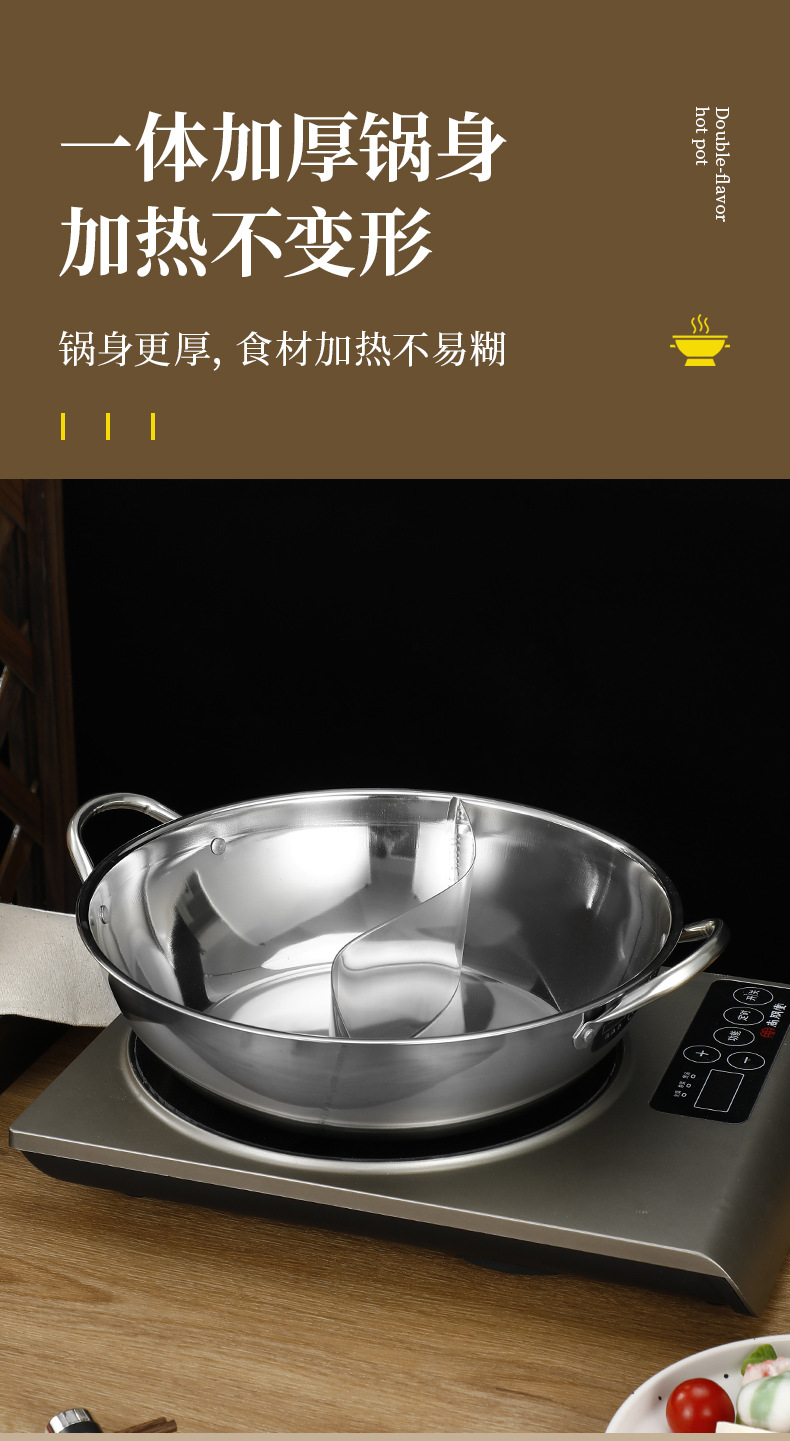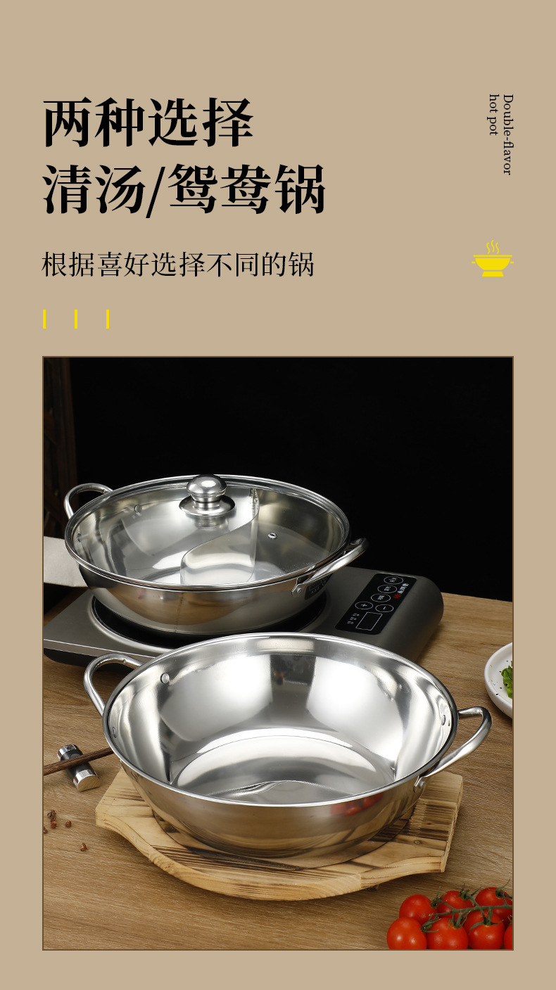 加厚大容量带盖清汤锅餐厅商用电磁炉二味火锅盆双耳不锈钢鸳鸯锅
