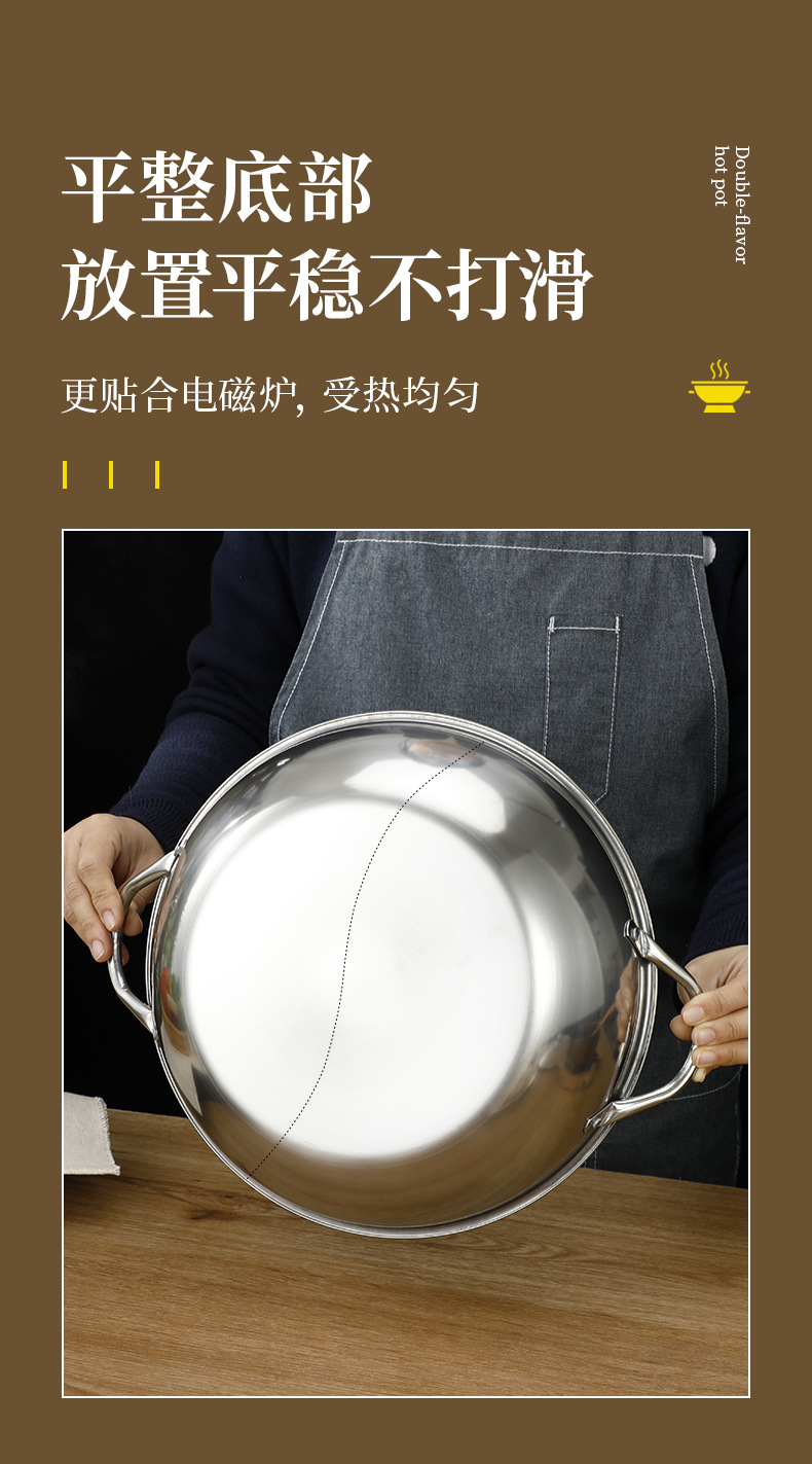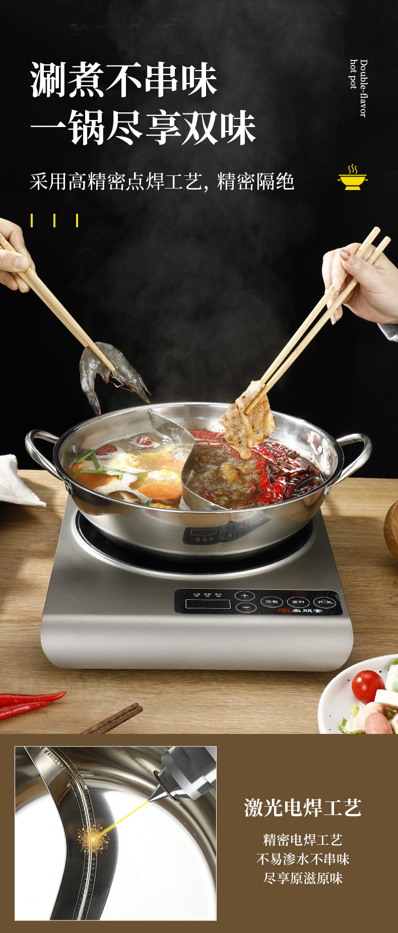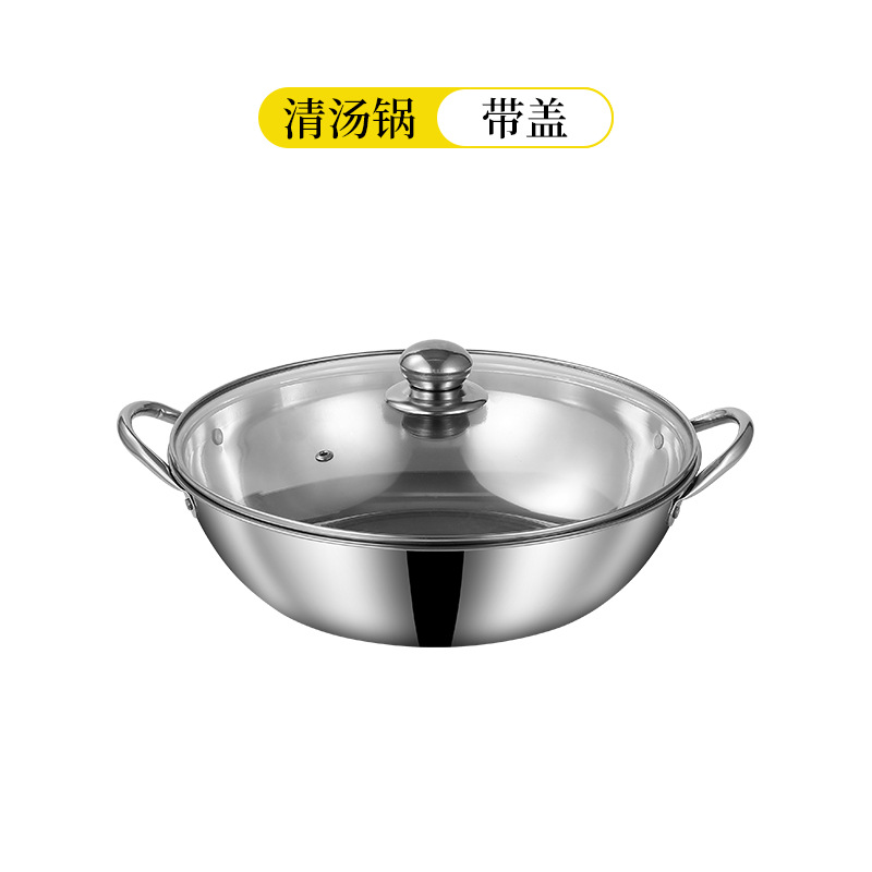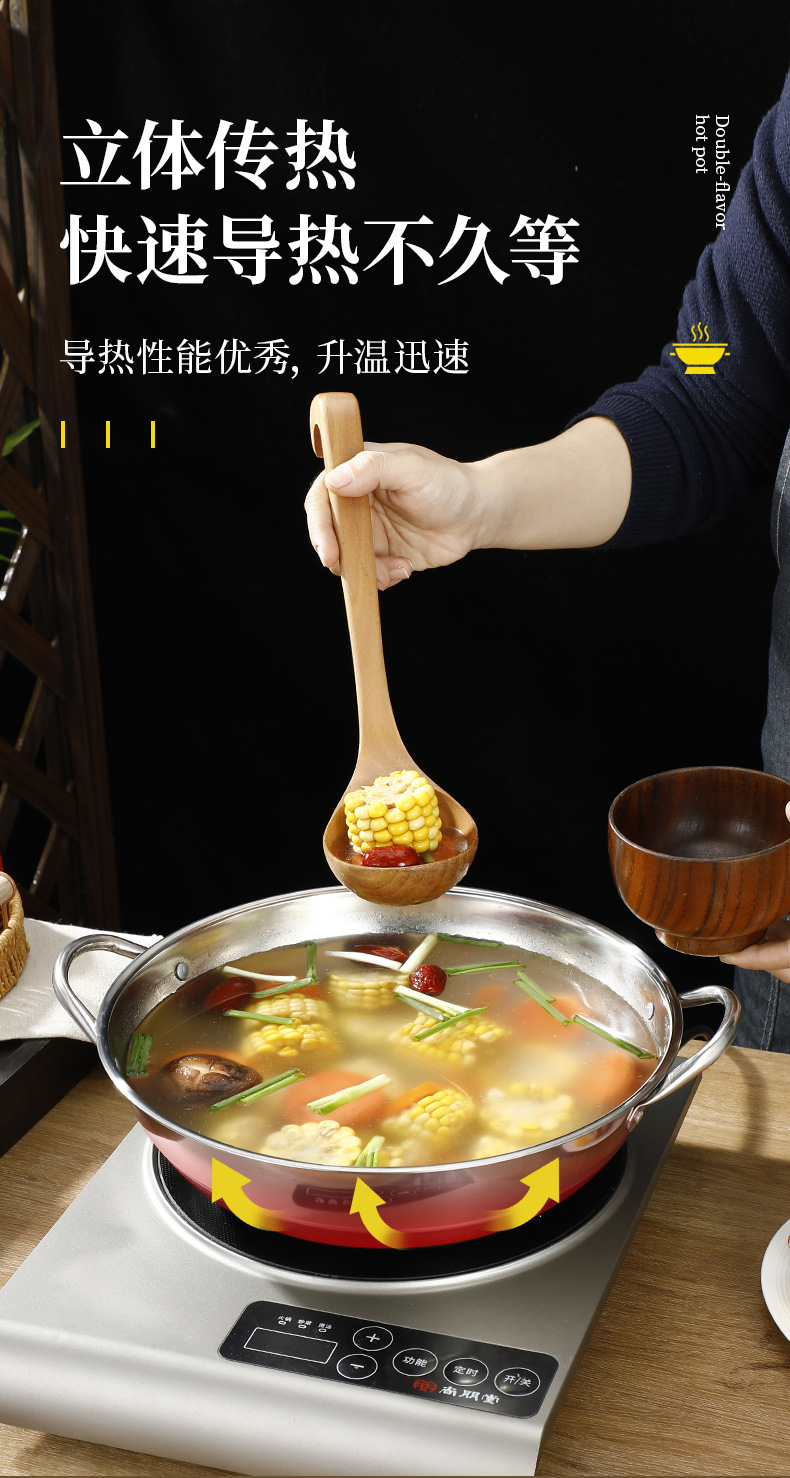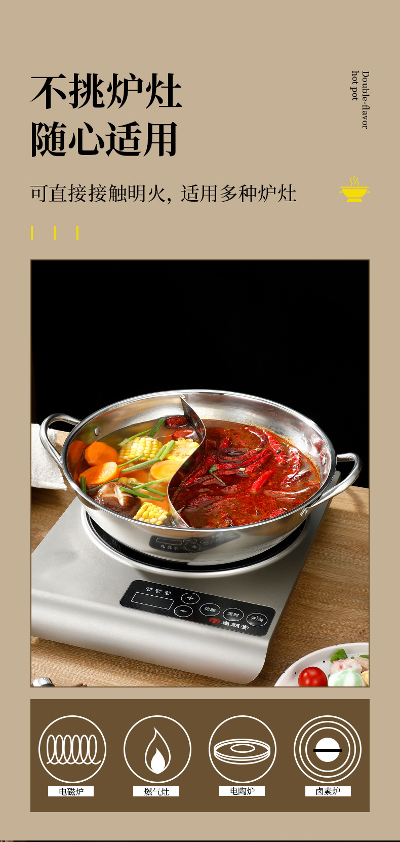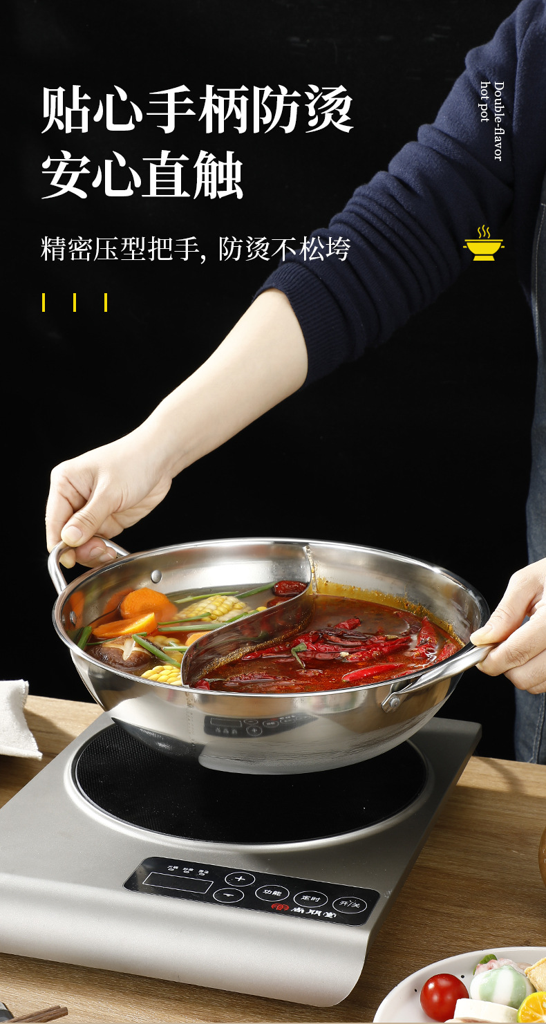 加厚大容量带盖清汤锅餐厅商用电磁炉二味火锅盆双耳不锈钢鸳鸯锅