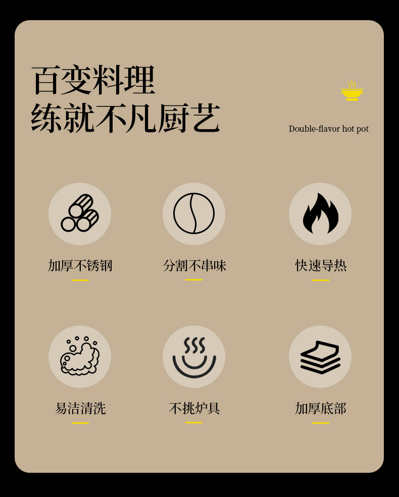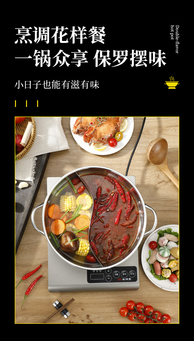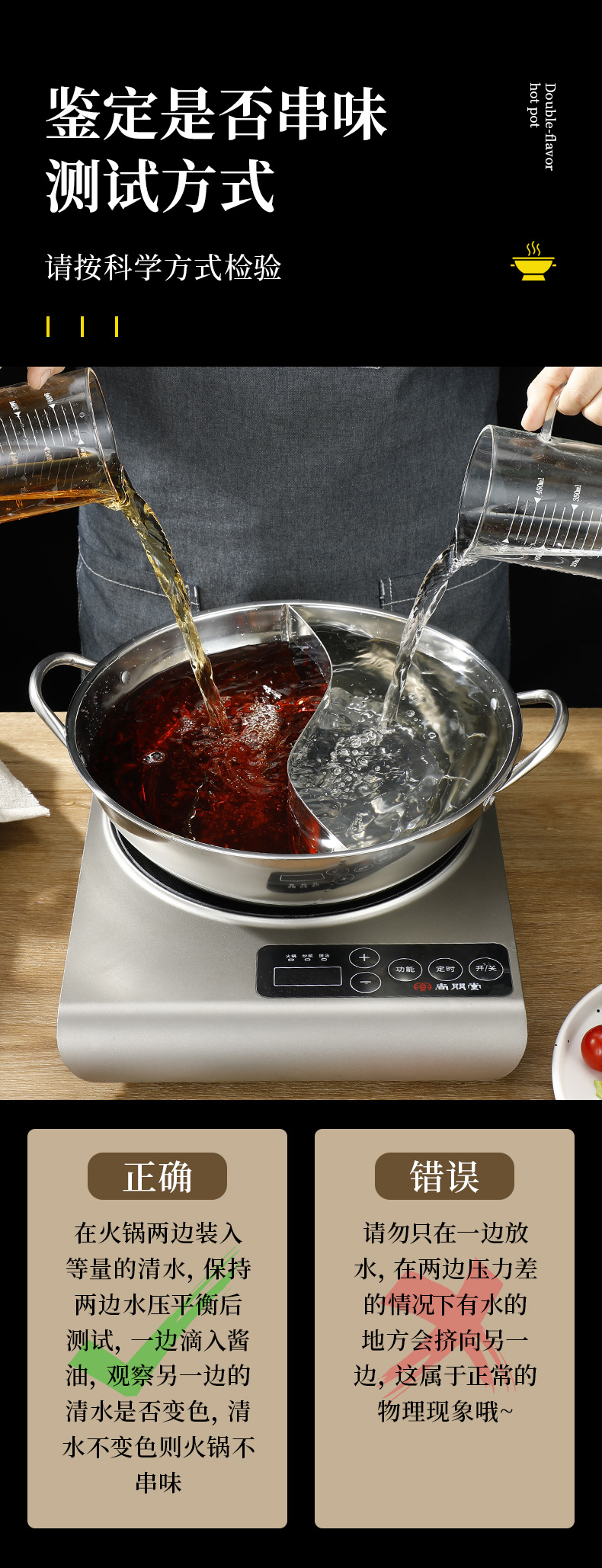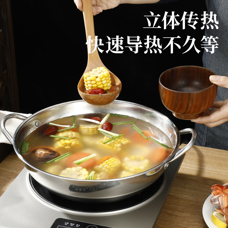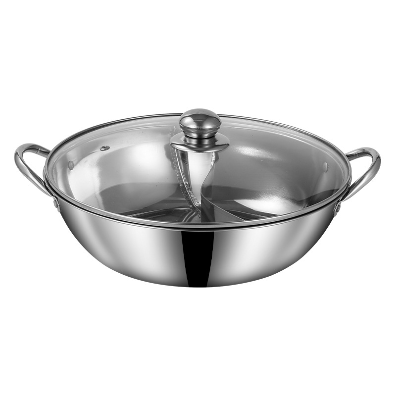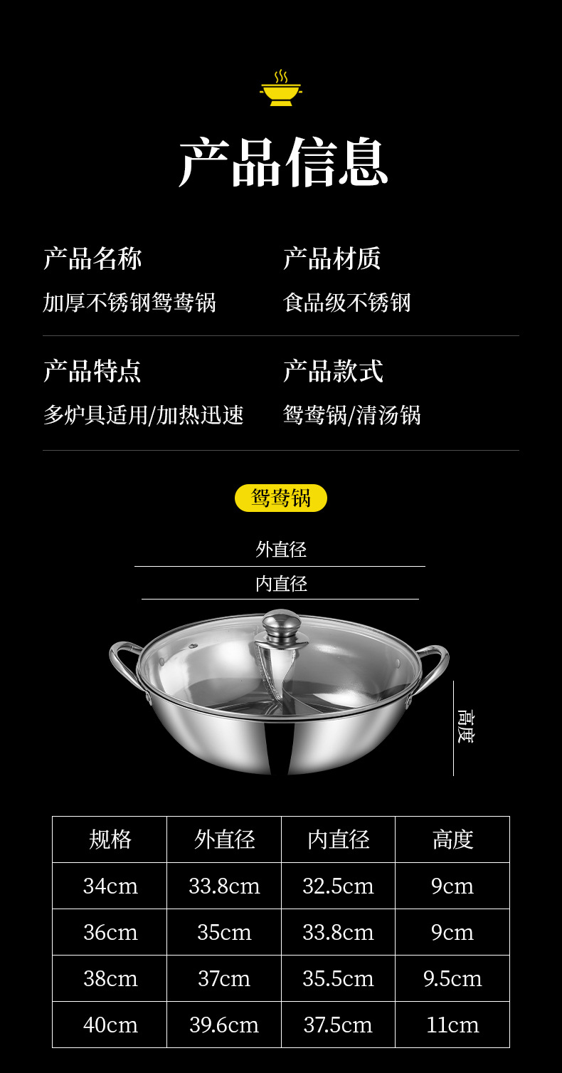 加厚大容量带盖清汤锅餐厅商用电磁炉二味火锅盆双耳不锈钢鸳鸯锅