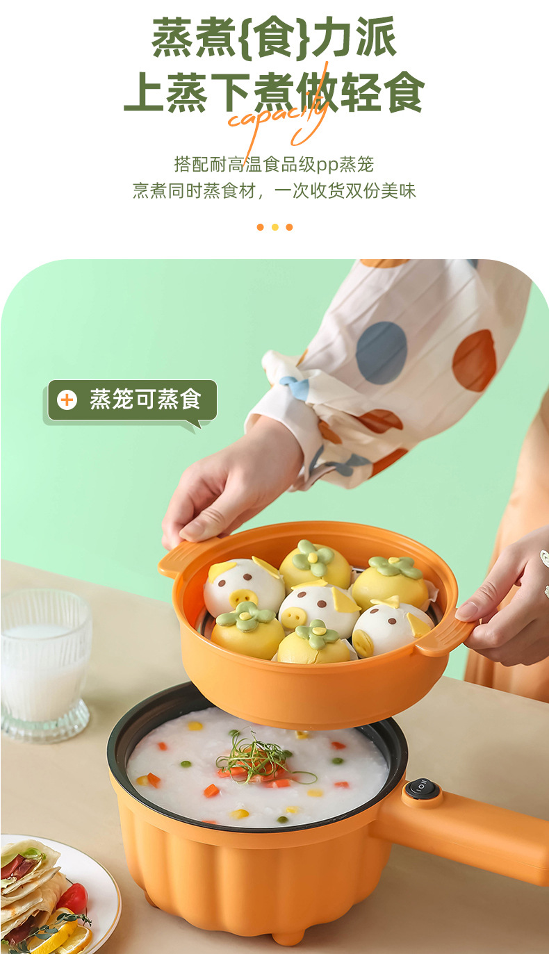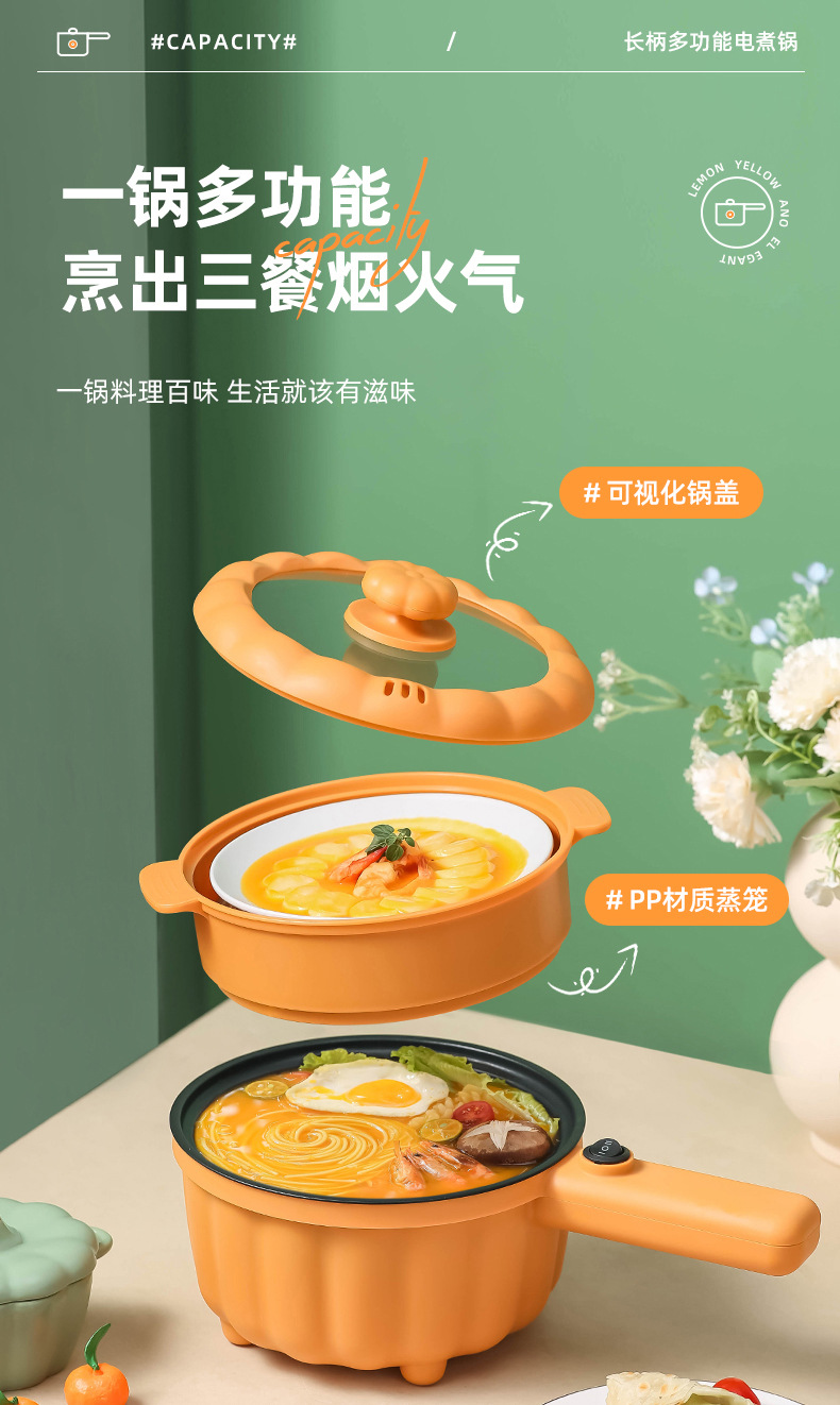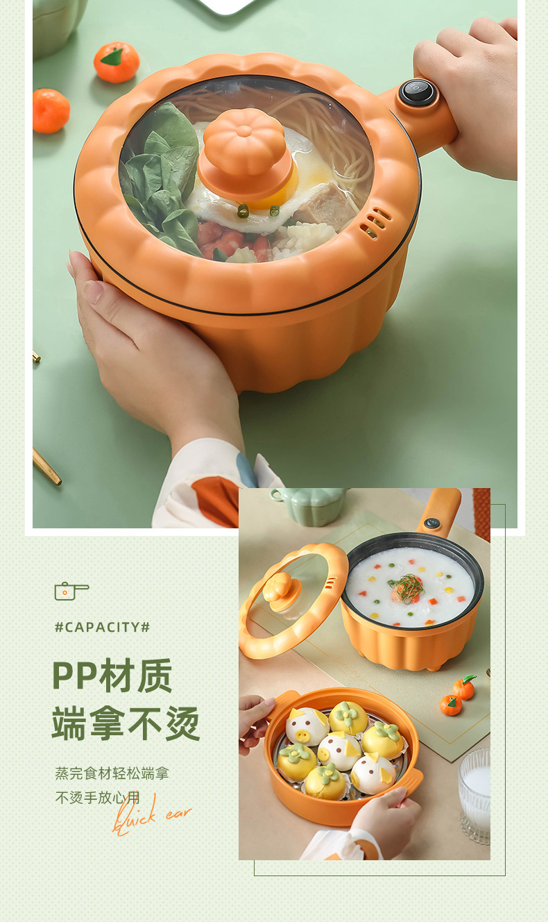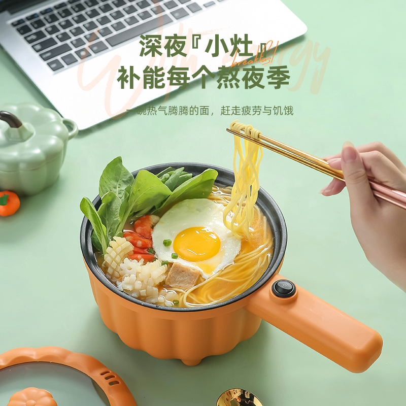网红南瓜电煮锅批发多功能长柄煮面锅学生宿舍蒸煮一体礼品电火锅