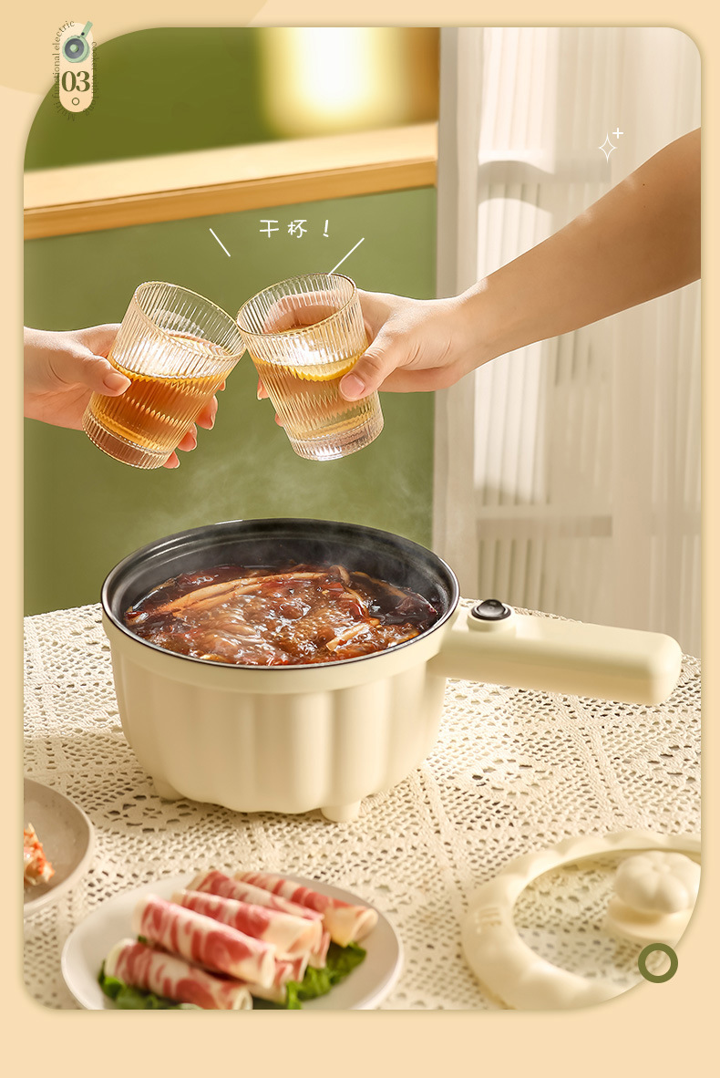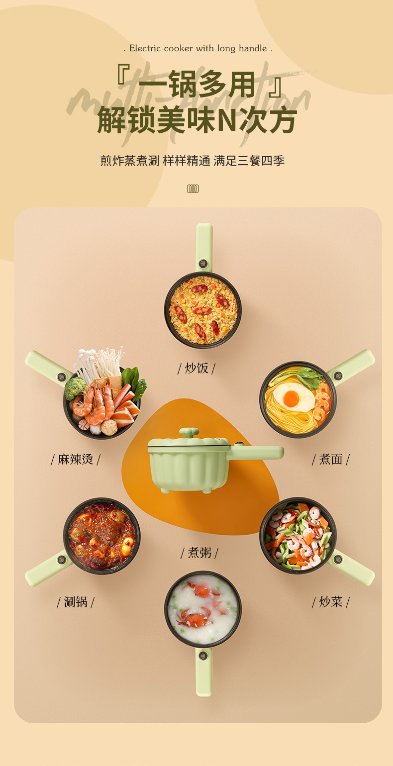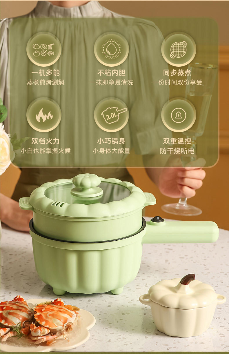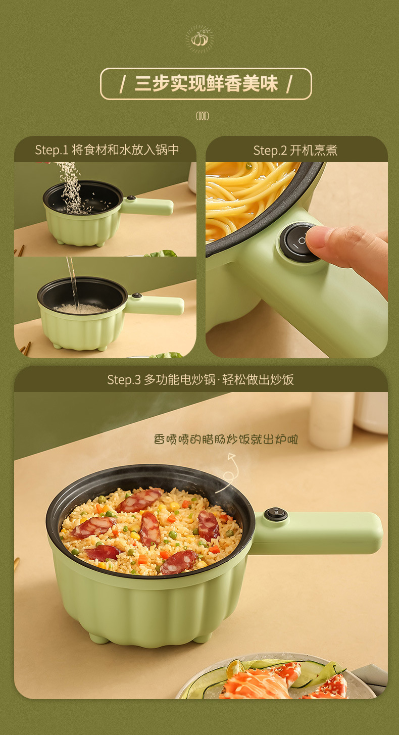 网红南瓜电煮锅批发多功能长柄煮面锅学生宿舍蒸煮一体礼品电火锅