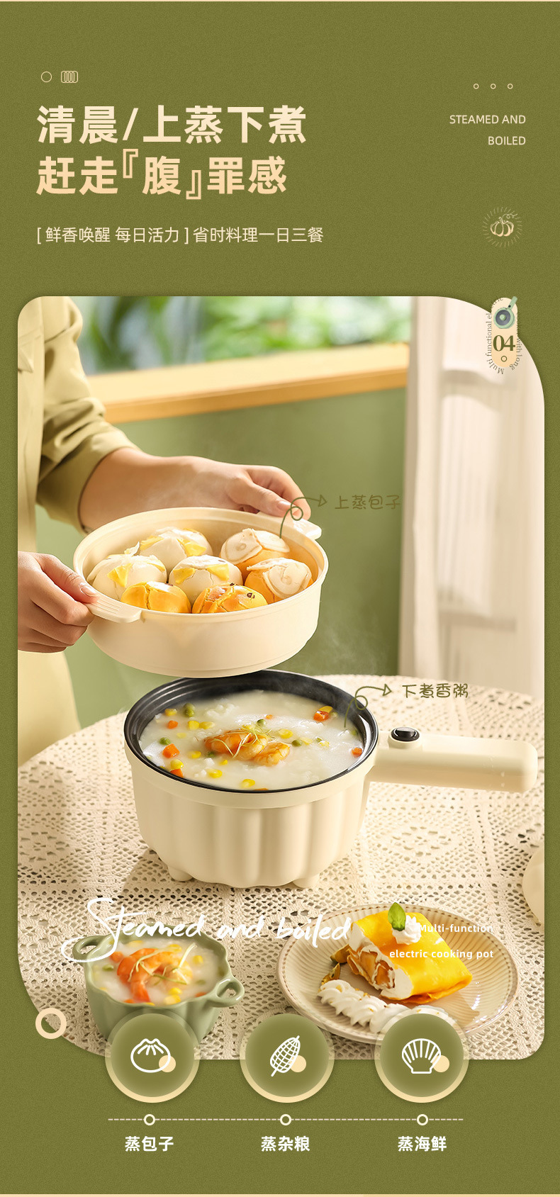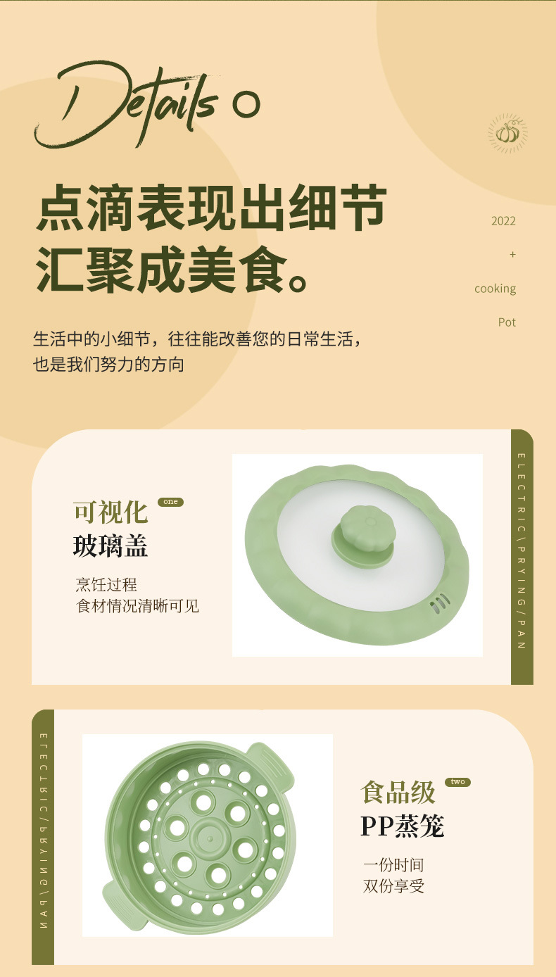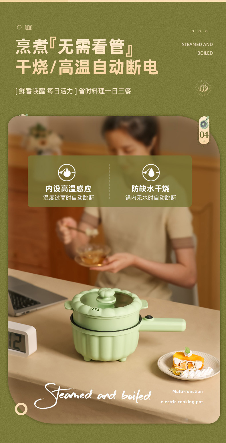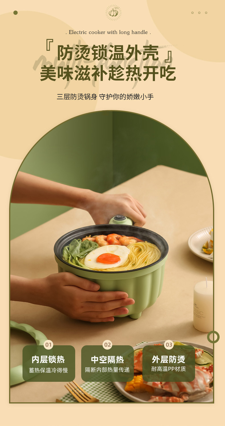 网红南瓜电煮锅批发多功能长柄煮面锅学生宿舍蒸煮一体礼品电火锅