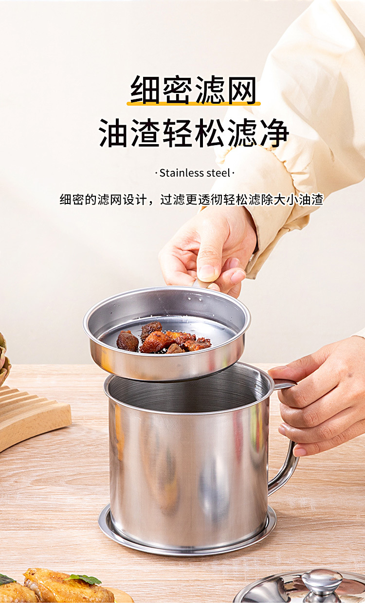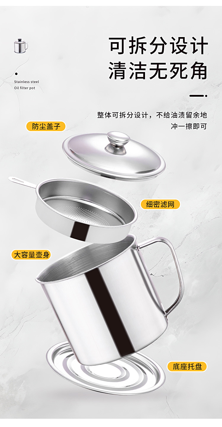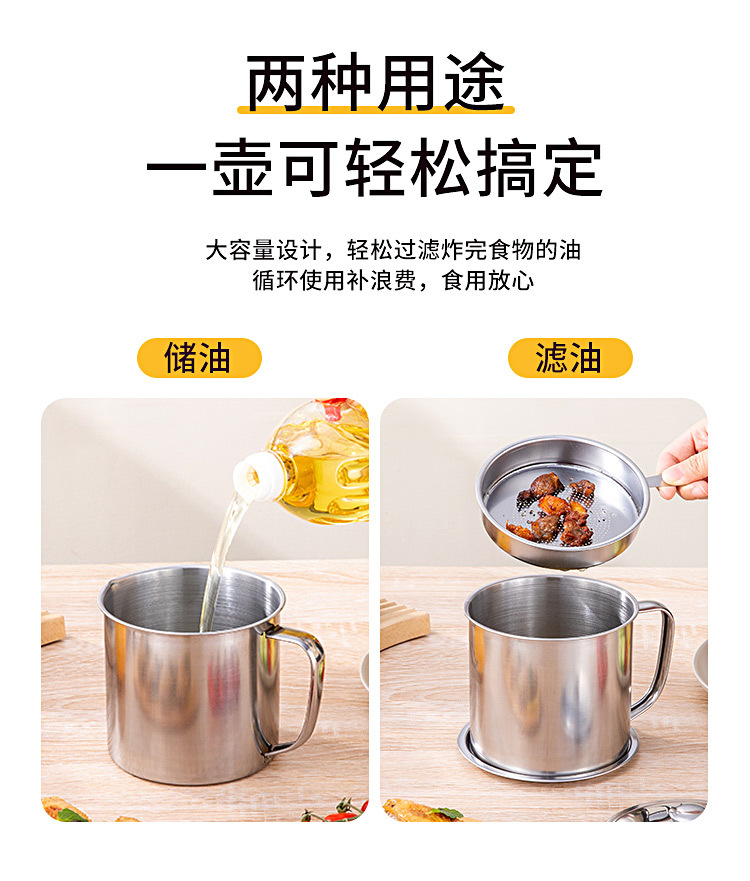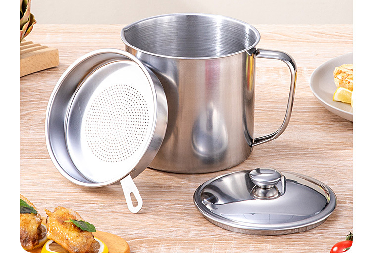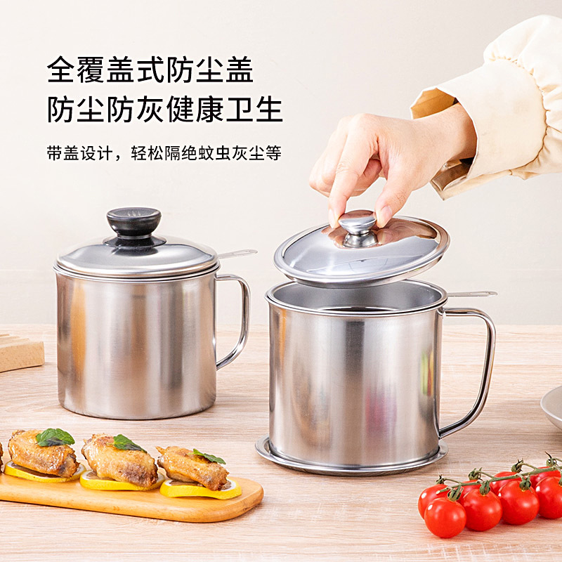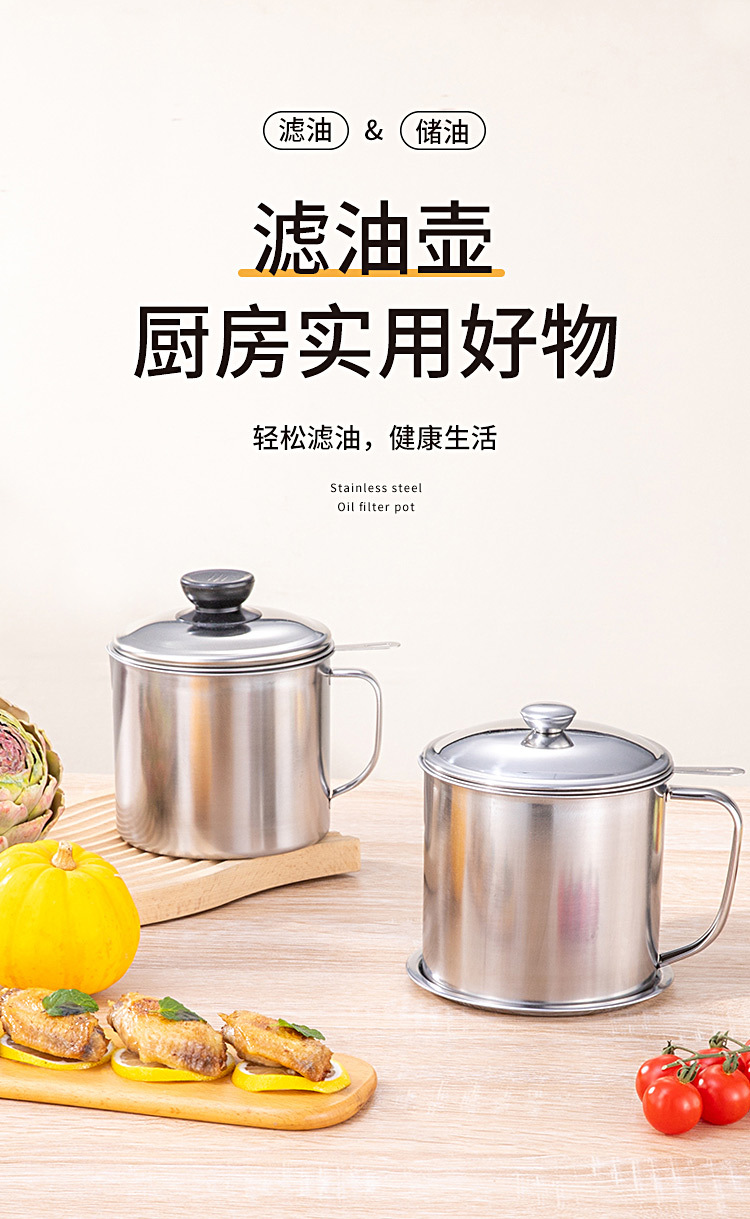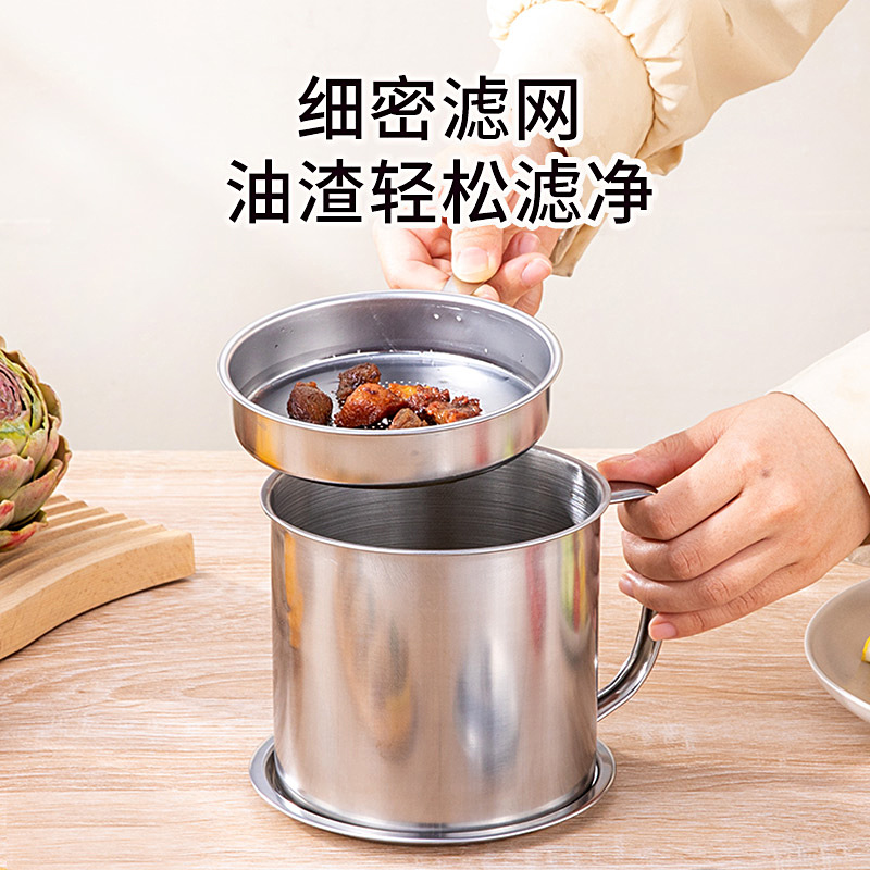 不锈钢滤油壶批发过滤油渣储油罐隔油壶家用带盖油瓶带滤网滤油杯