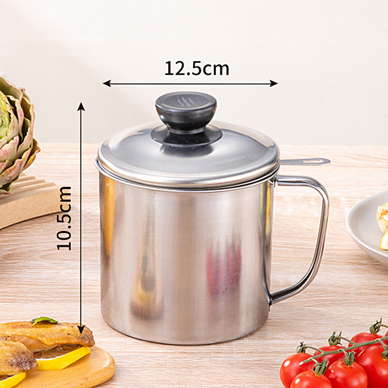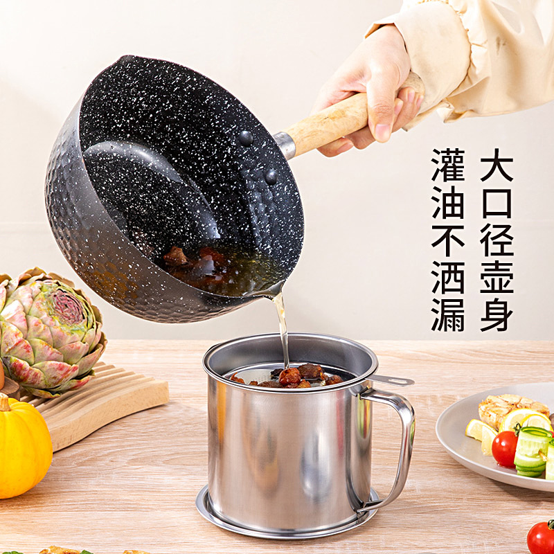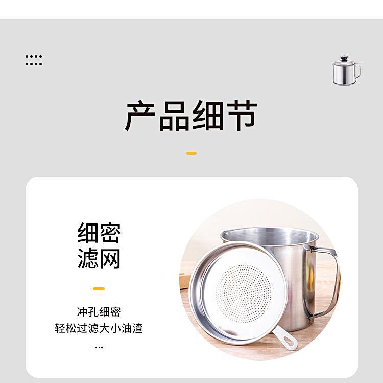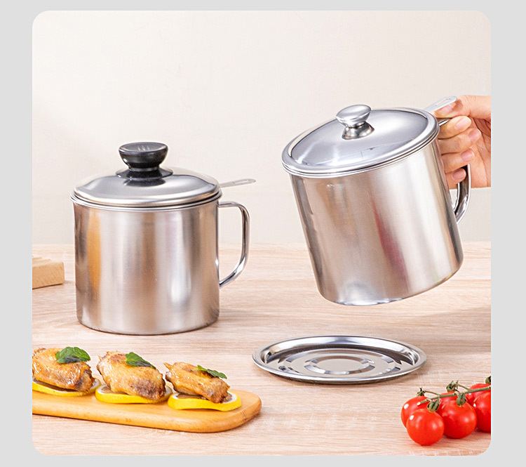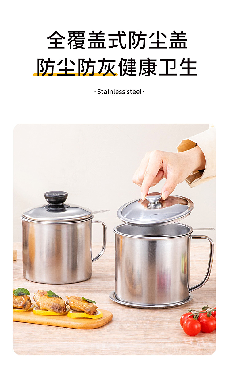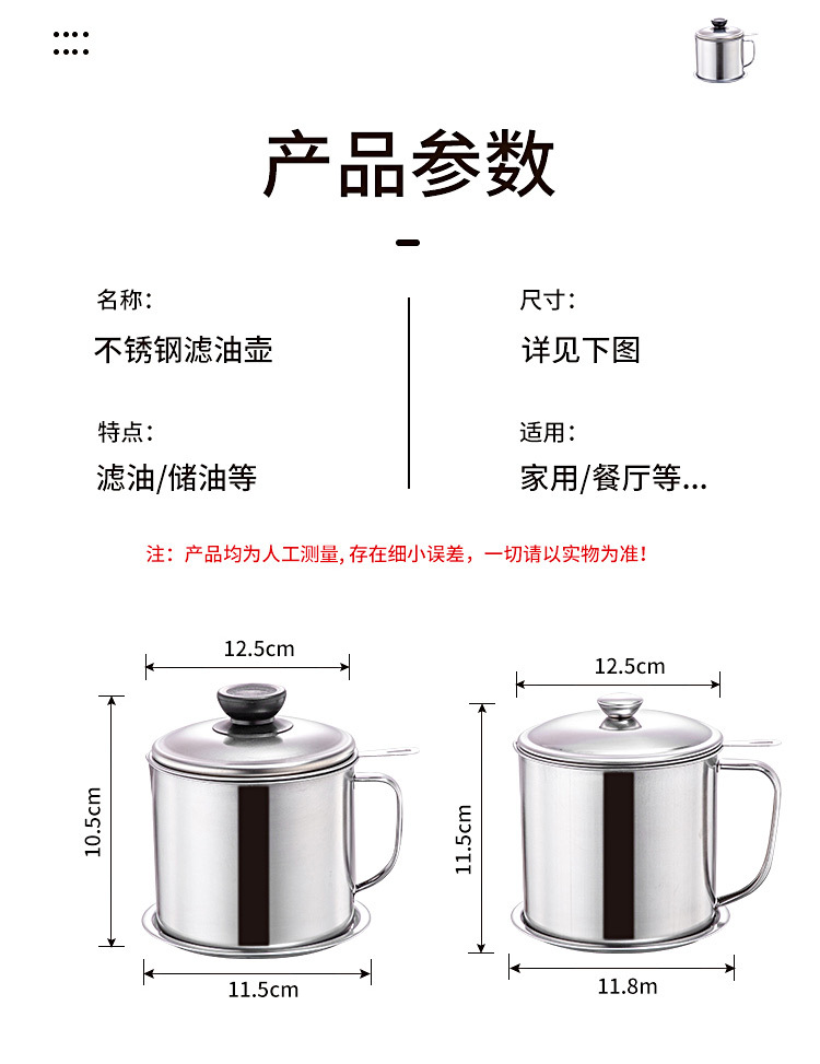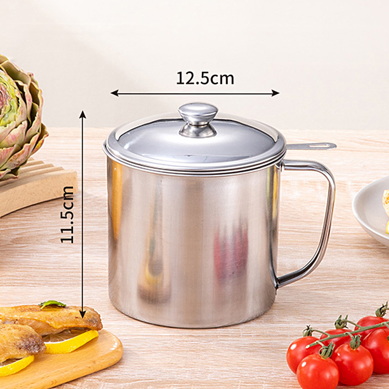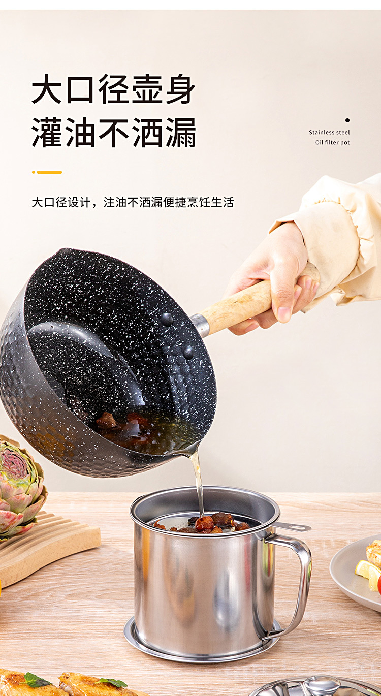 不锈钢滤油壶批发过滤油渣储油罐隔油壶家用带盖油瓶带滤网滤油杯