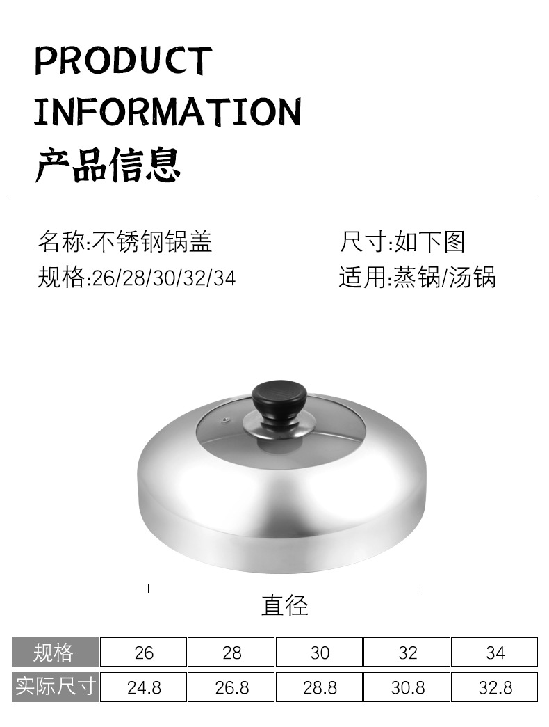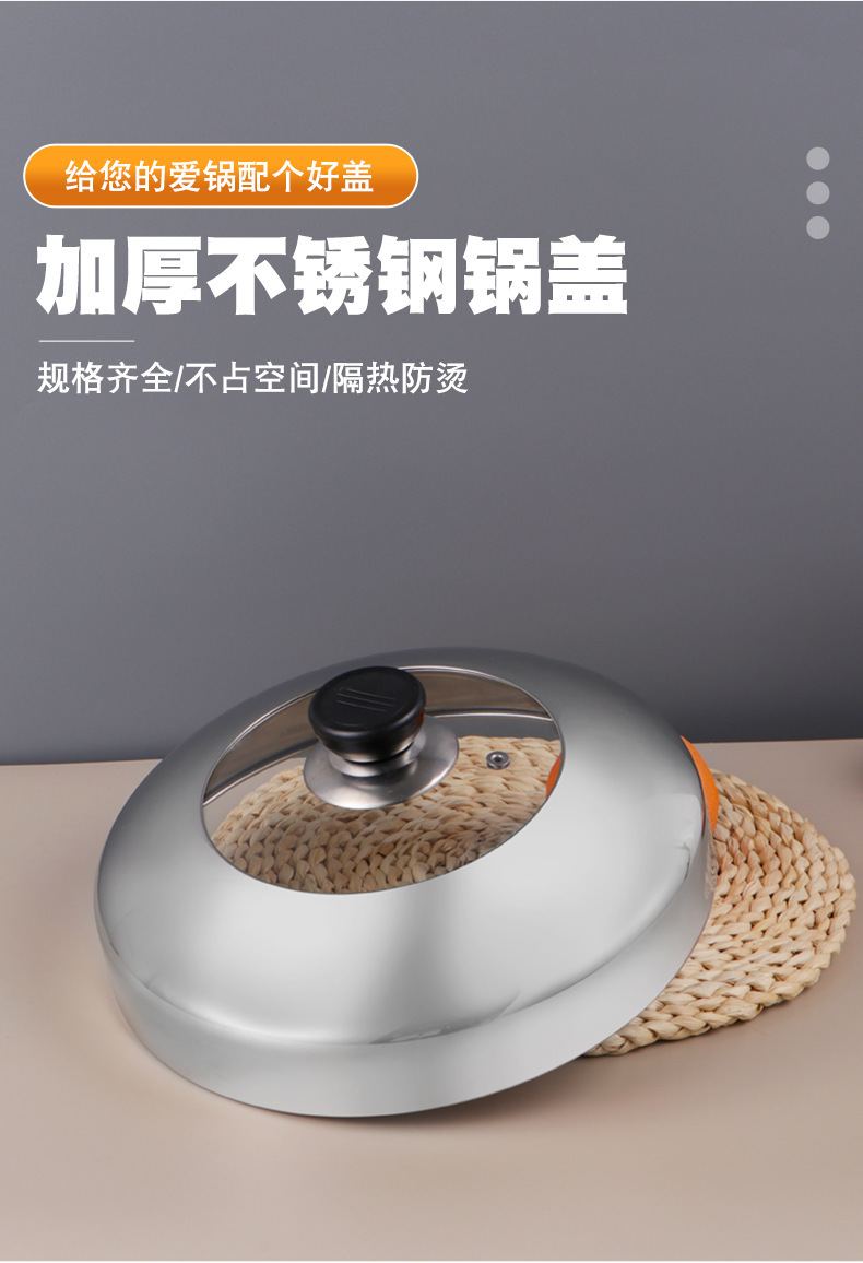 厂家直供特厚不锈钢锅盖厨房多用汤蒸锅盖加厚钢化玻璃可视锅盖