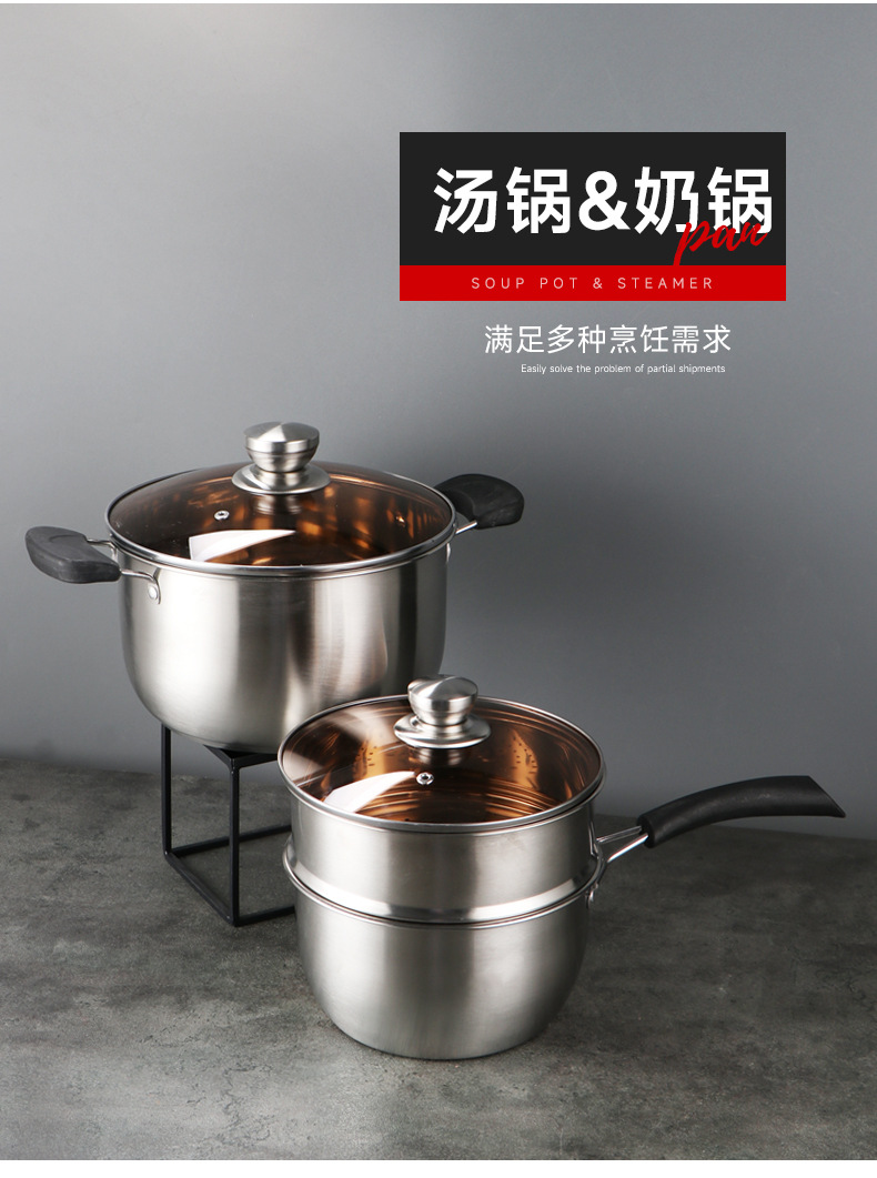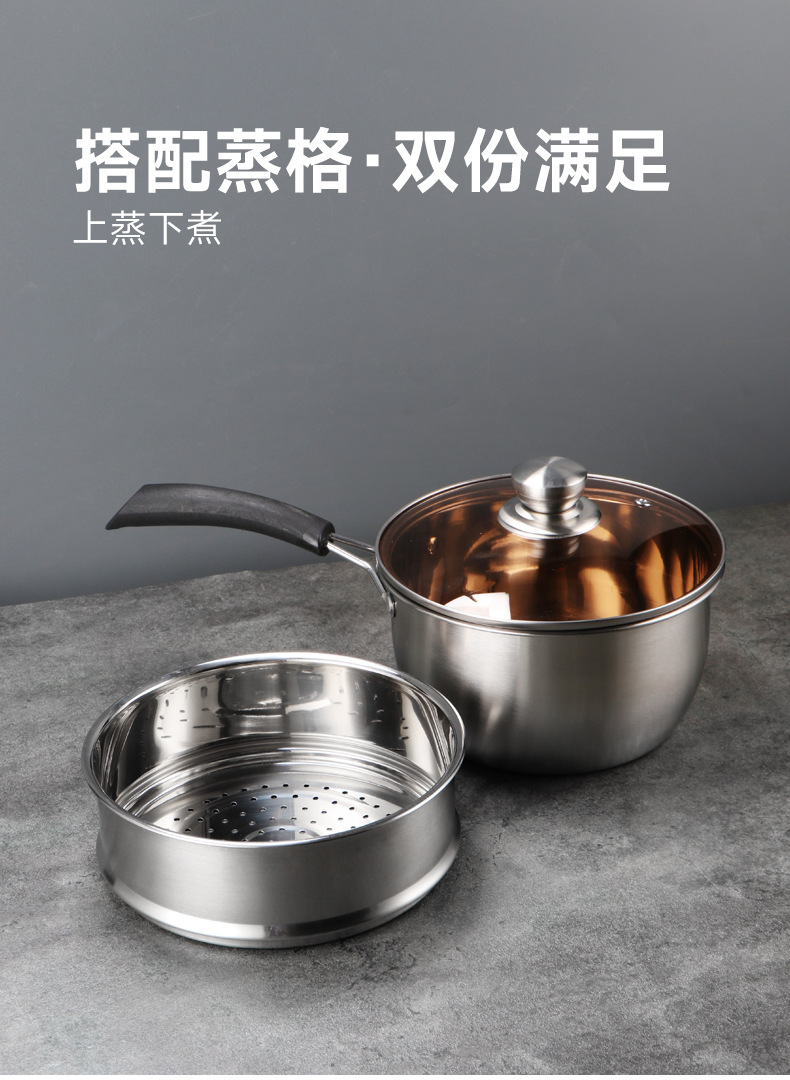 韩式不锈钢单双层汤蒸锅厨房牛奶辅食汤锅泡面带蒸笼锅具礼品奶锅