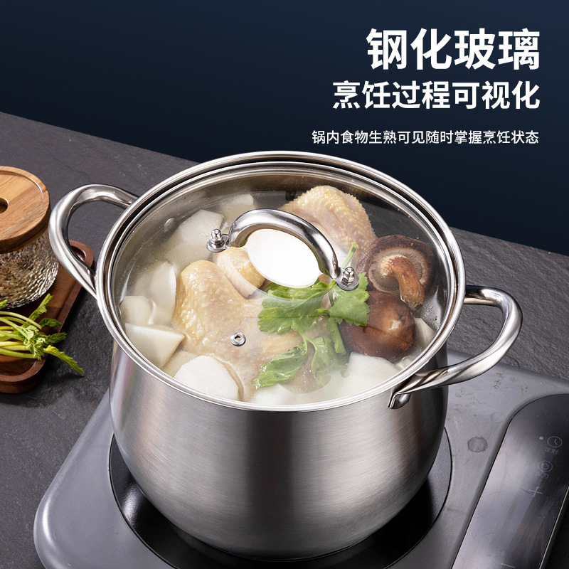 不锈钢加厚高汤锅复底鼓形汤蒸锅燃气电磁炉通用礼品锅批发高汤锅