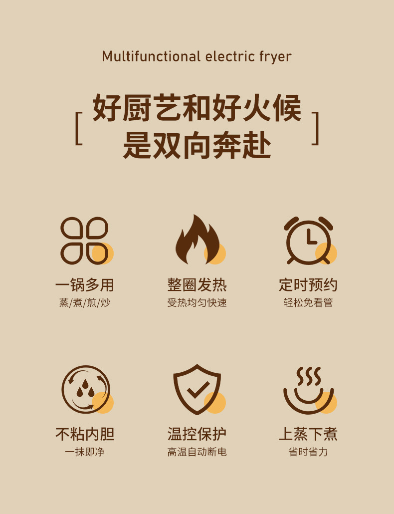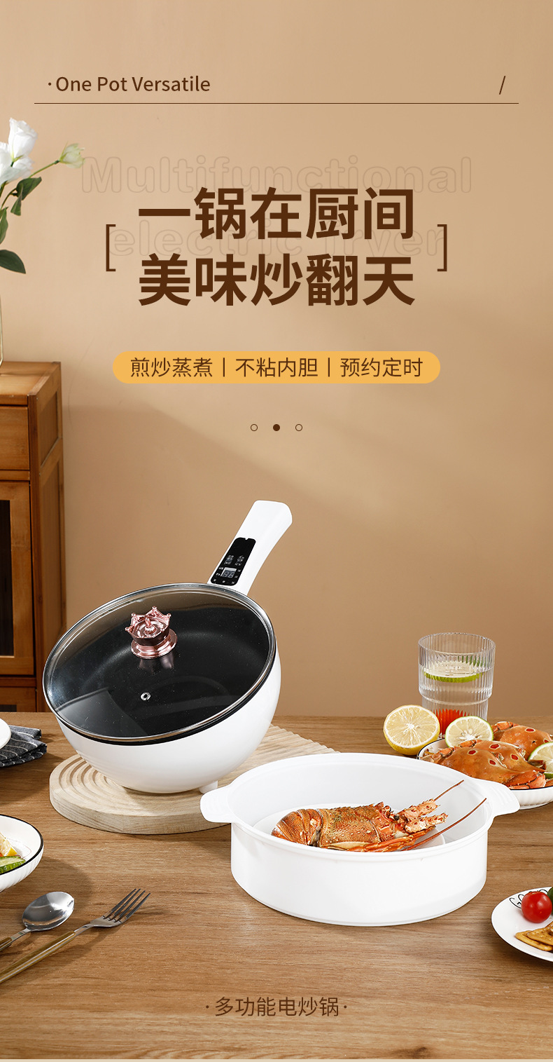 家用多功能炒菜锅蒸煮一体式礼品电煮锅不粘电火锅预约定时电炒锅