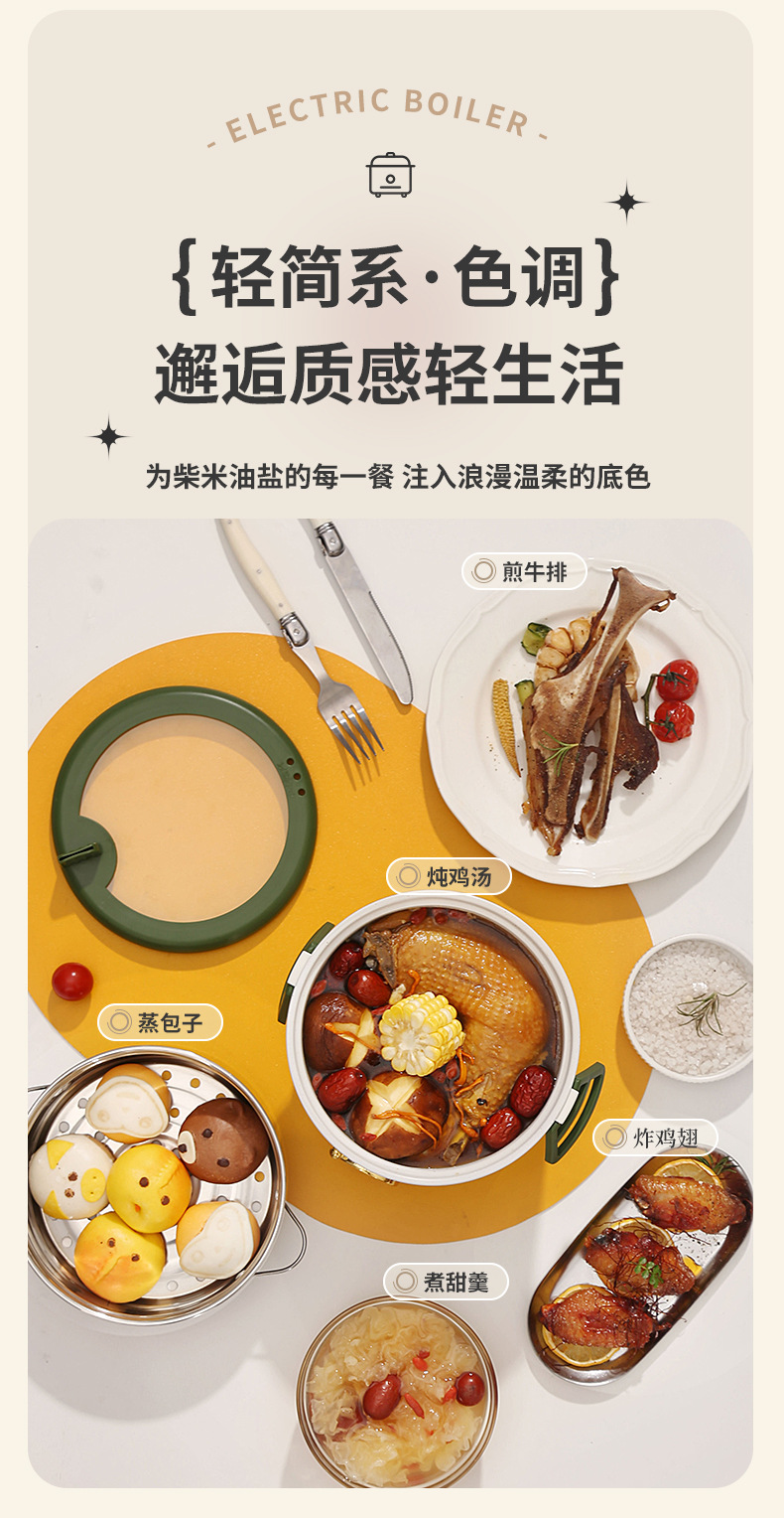 网红电煮锅多功能一体料理锅宿舍迷你泡面锅蒸煮炒菜不粘电热火锅
