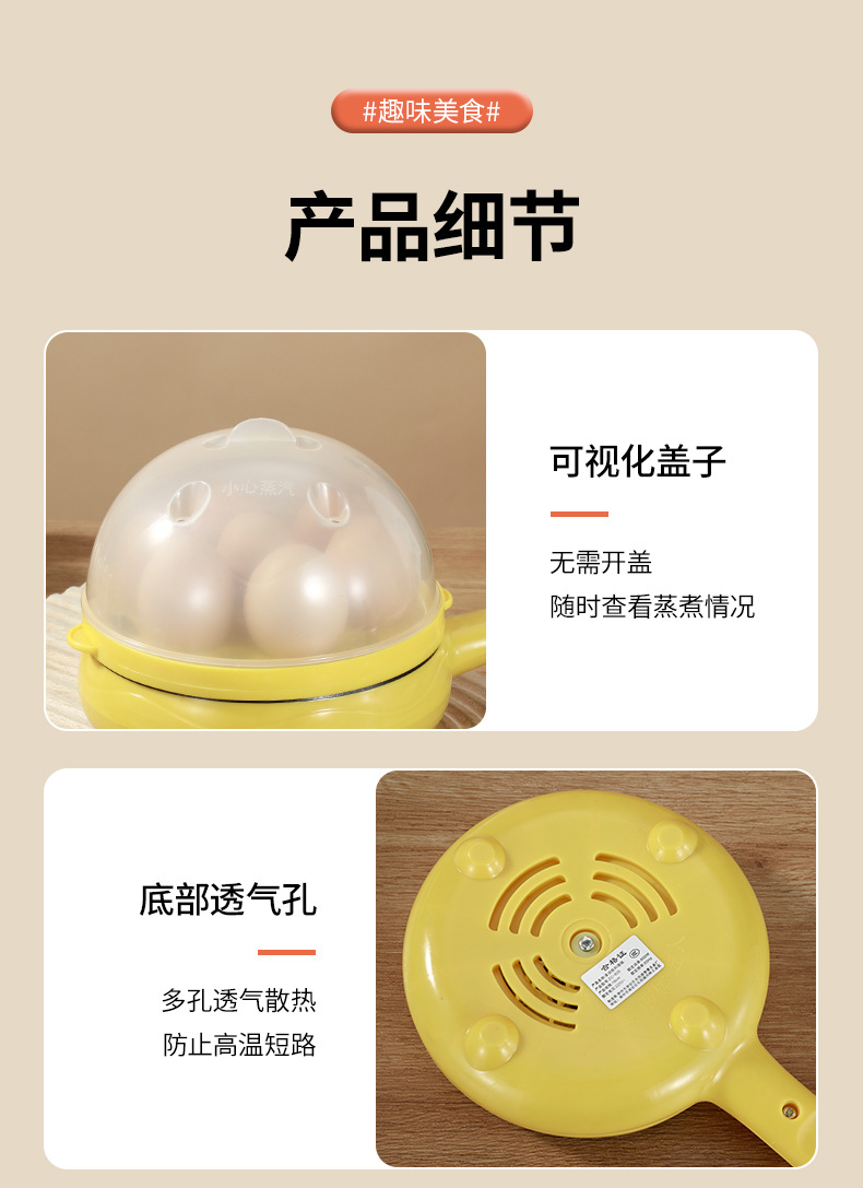 跨境多功能蒸蛋器家用小型蒸包子煎蛋早餐机活动礼品迷你电煎锅
