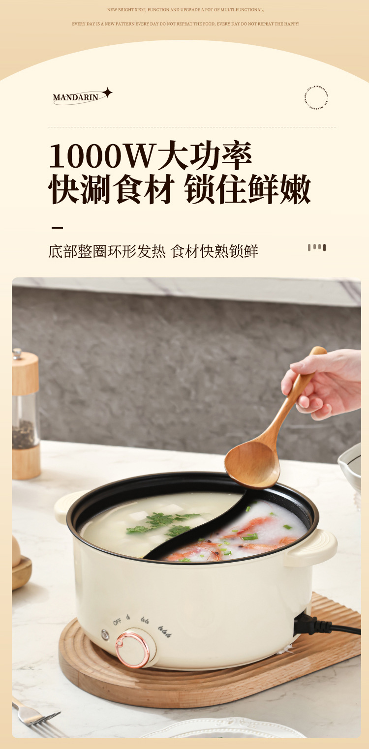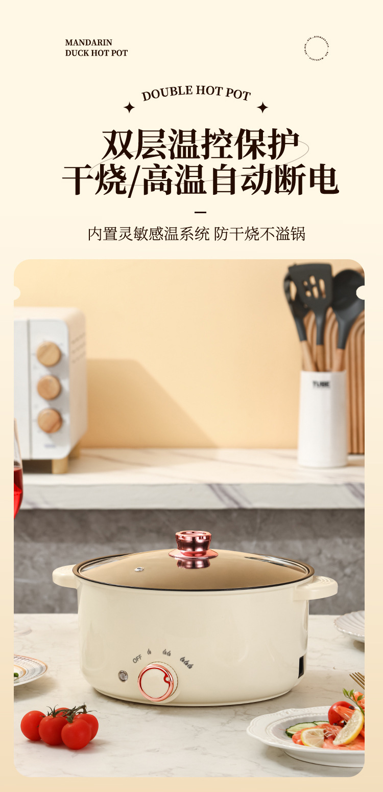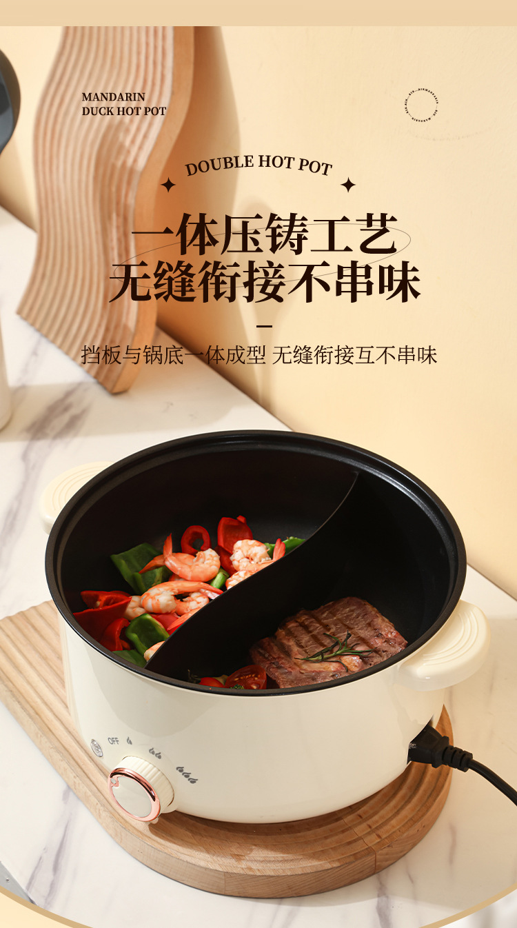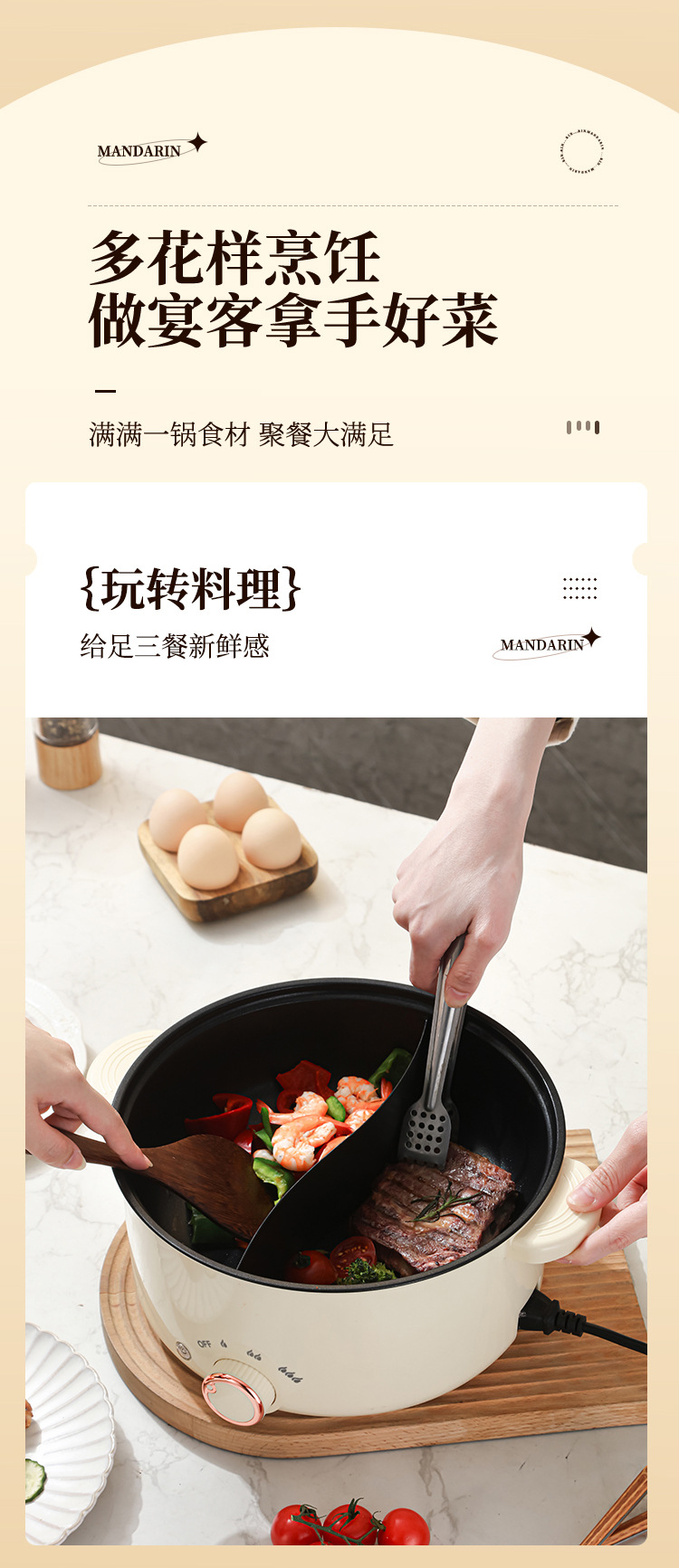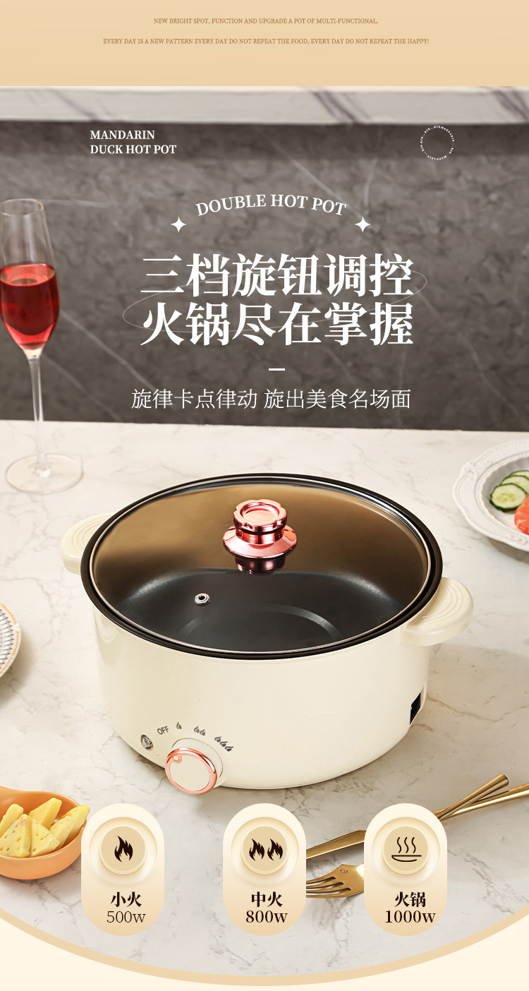 礼品鸳鸯电火锅家用不粘蒸煮一体锅大容量学生宿舍多功能电煮锅