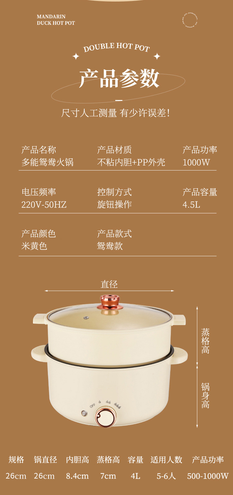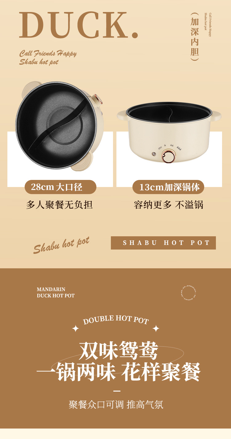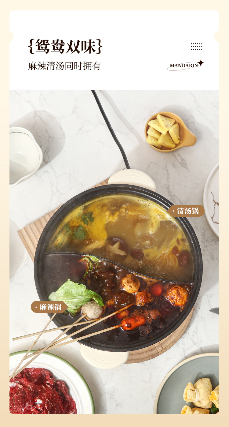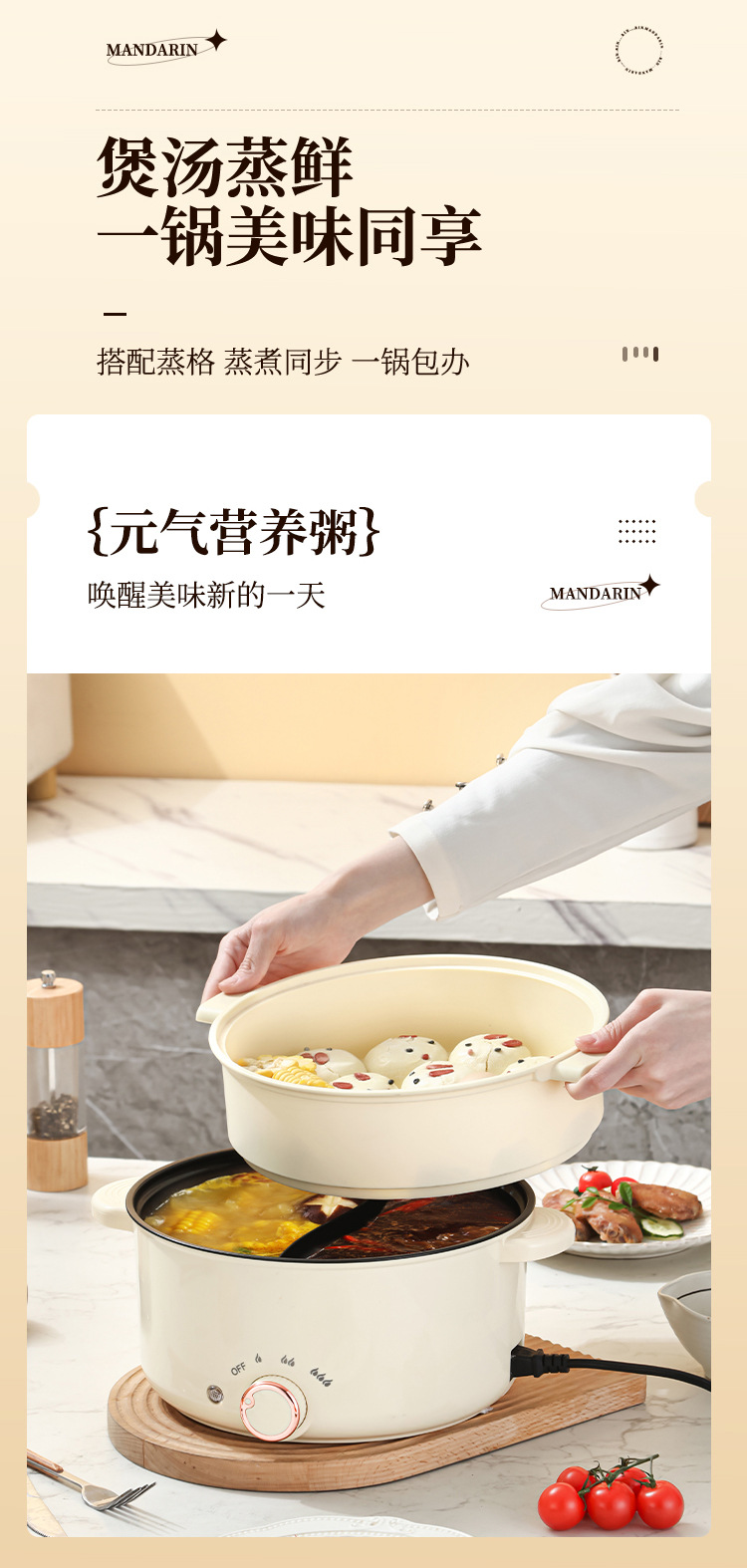 礼品鸳鸯电火锅家用不粘蒸煮一体锅大容量学生宿舍多功能电煮锅