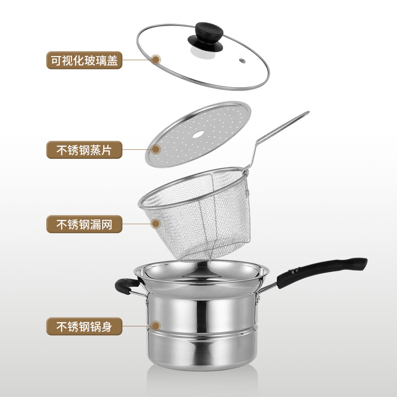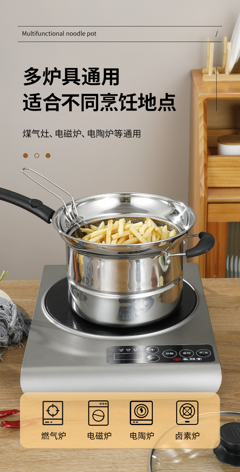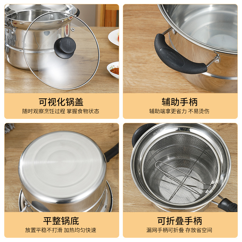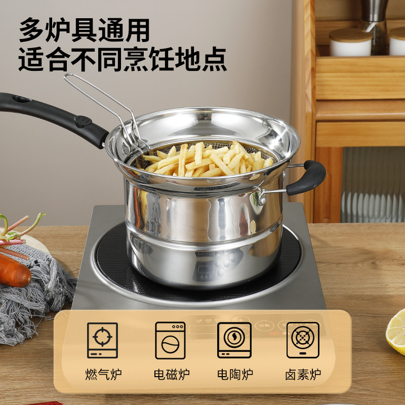 跨境加高不锈钢油炸锅家用小型天妇罗小炸锅批发礼品多功能面条锅