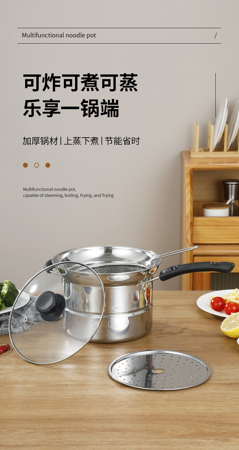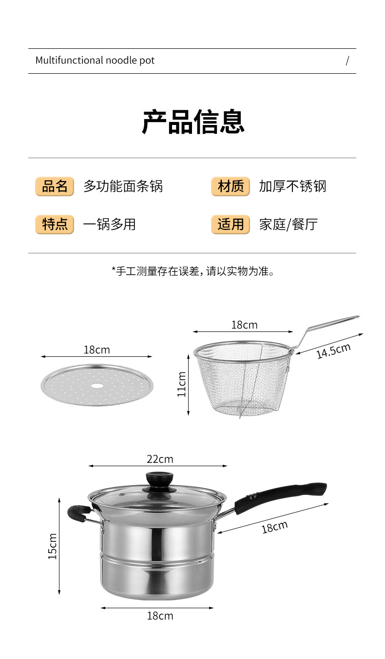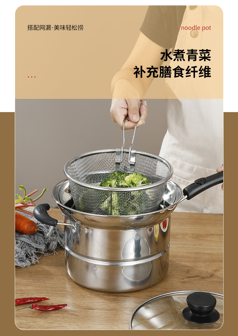 跨境加高不锈钢油炸锅家用小型天妇罗小炸锅批发礼品多功能面条锅