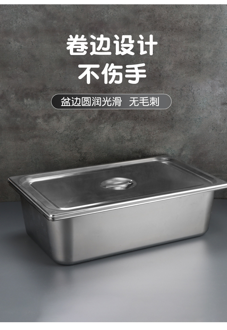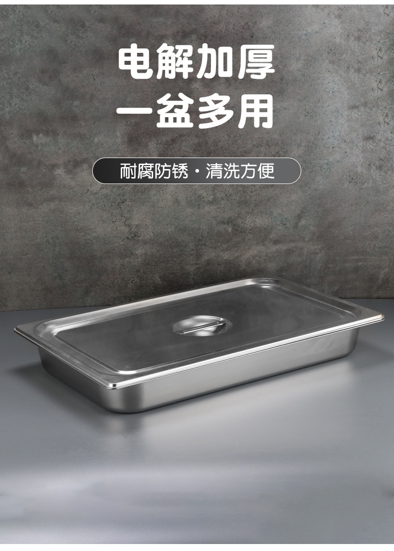 商用多规格不锈钢盆长方形带盖自助餐盆批发酒店奶茶店加厚份数盆