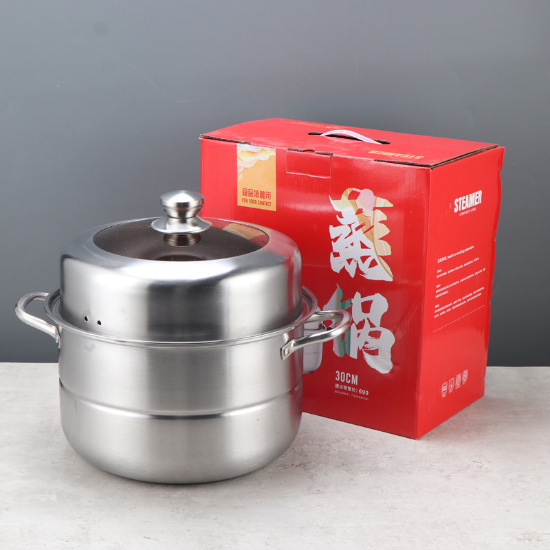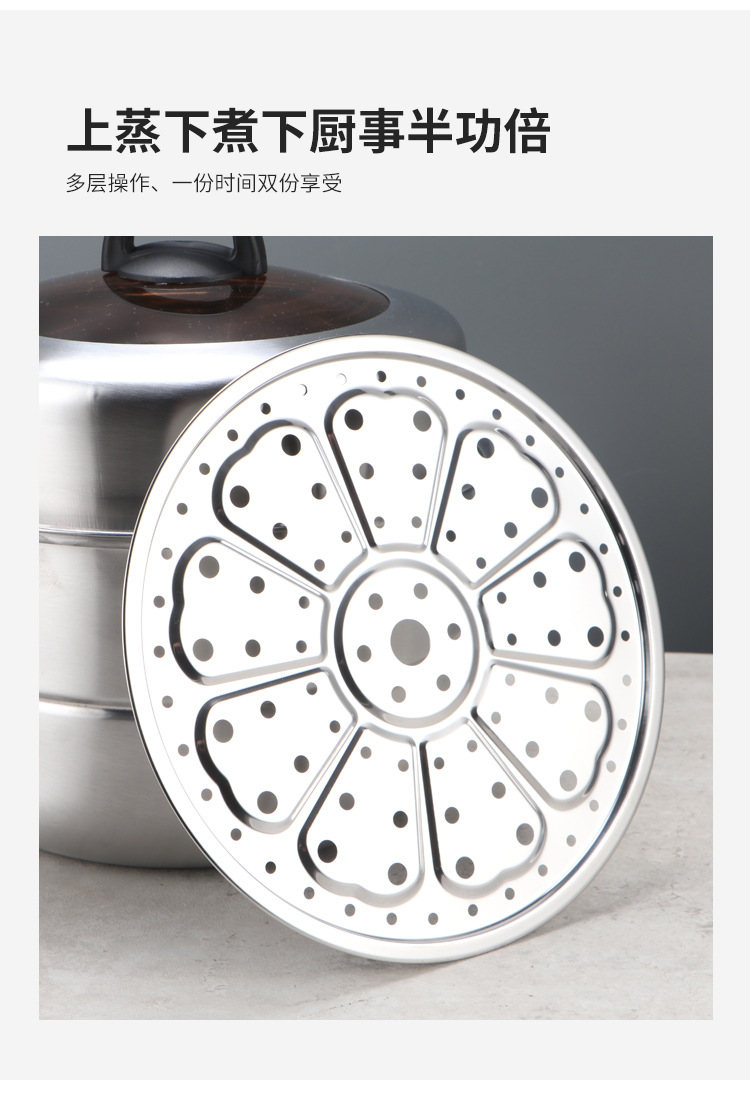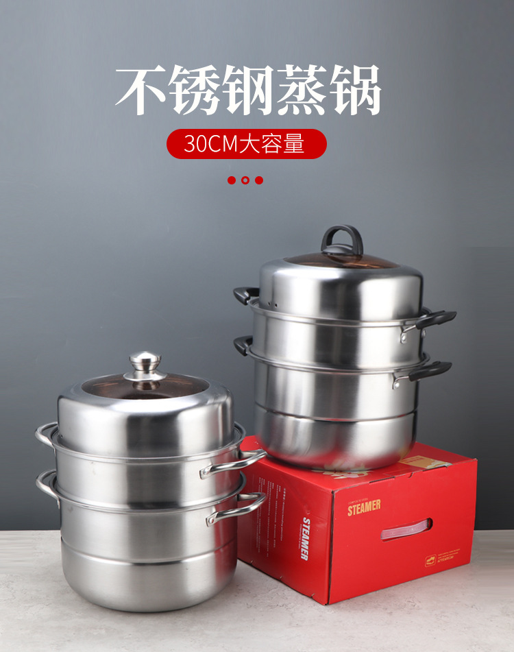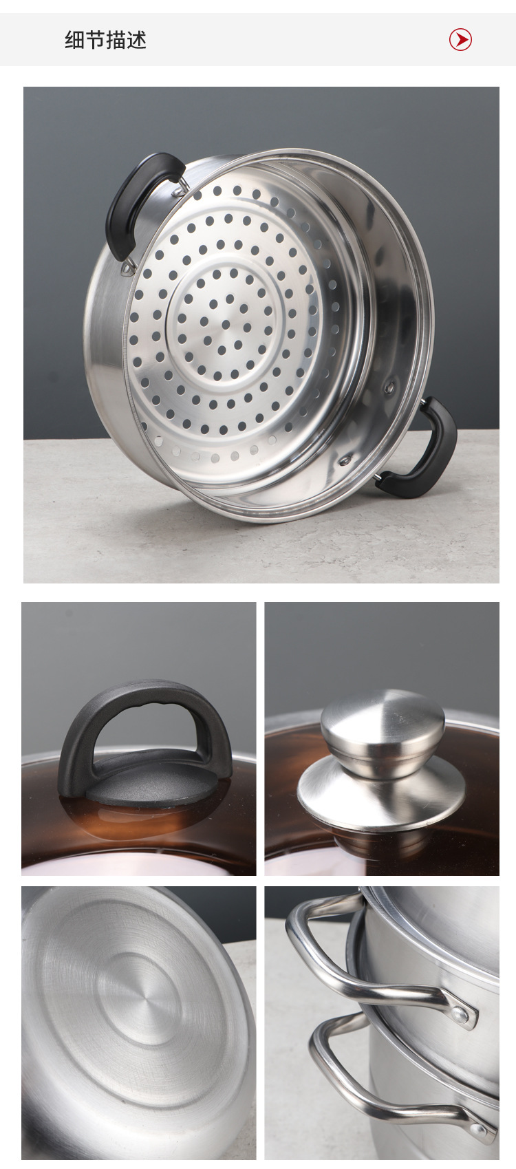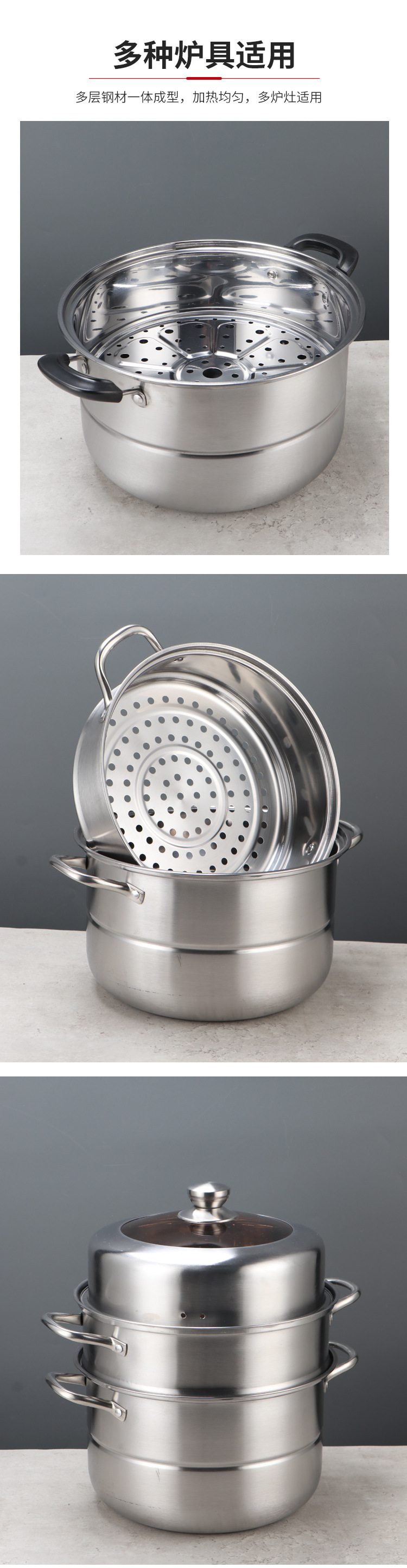 厂家跨境不锈钢汤蒸锅批发 加厚蒸煮汤锅带蒸格礼品欧式多层蒸锅