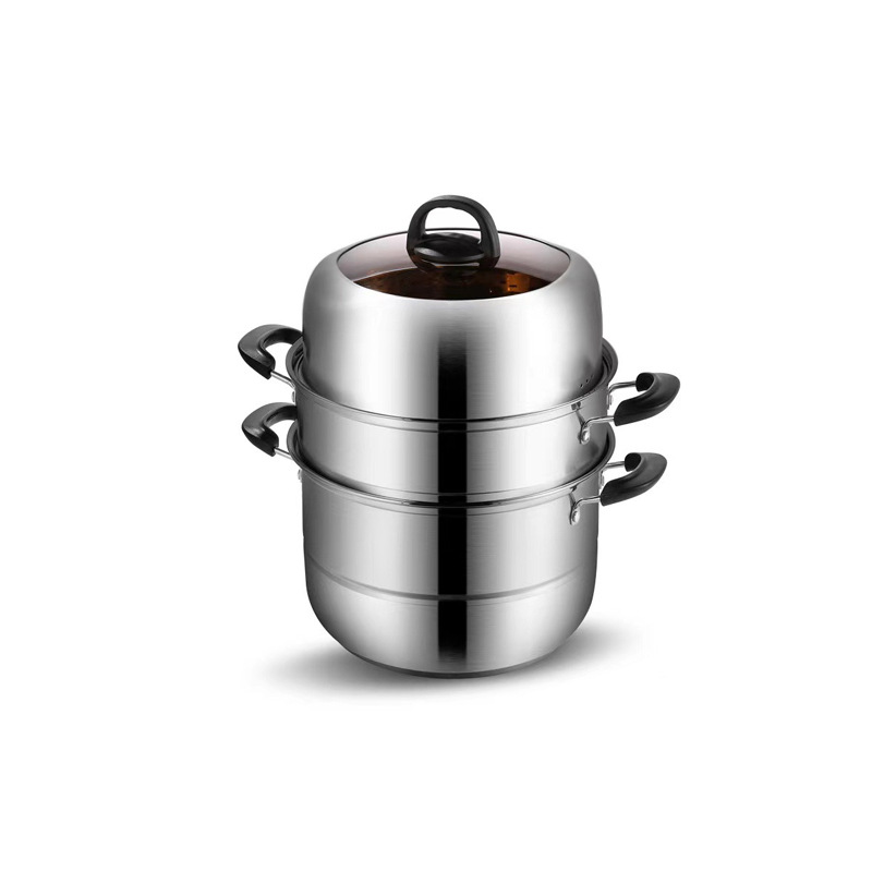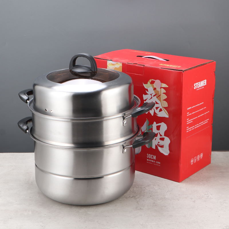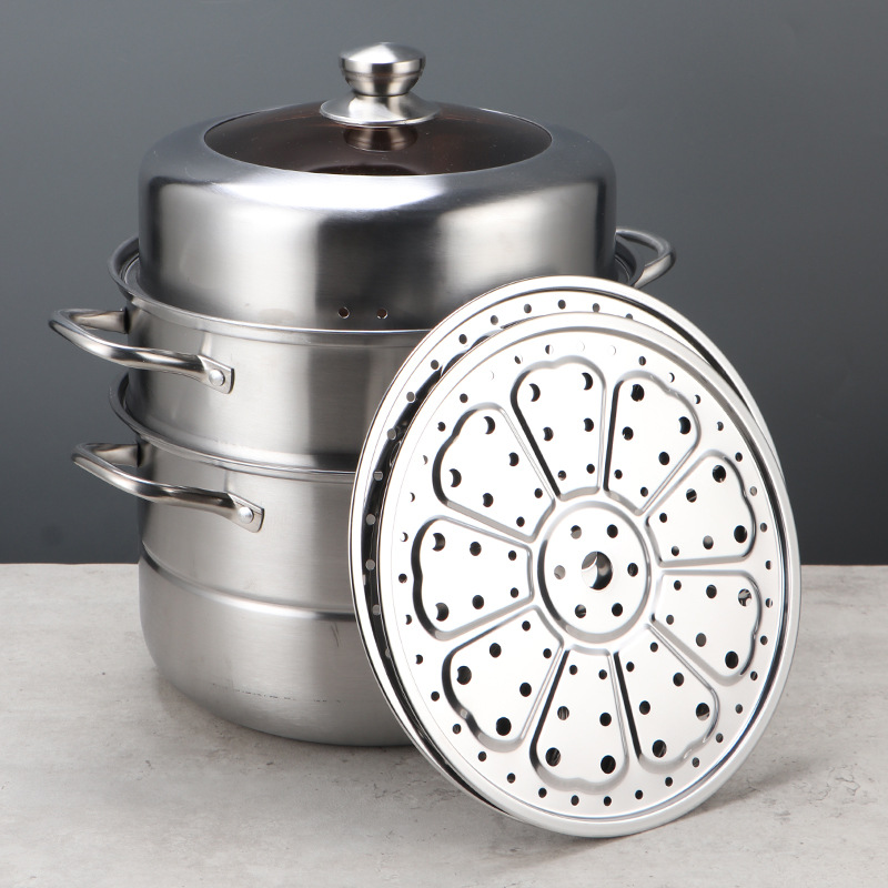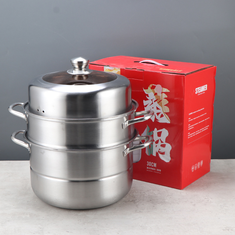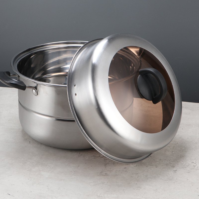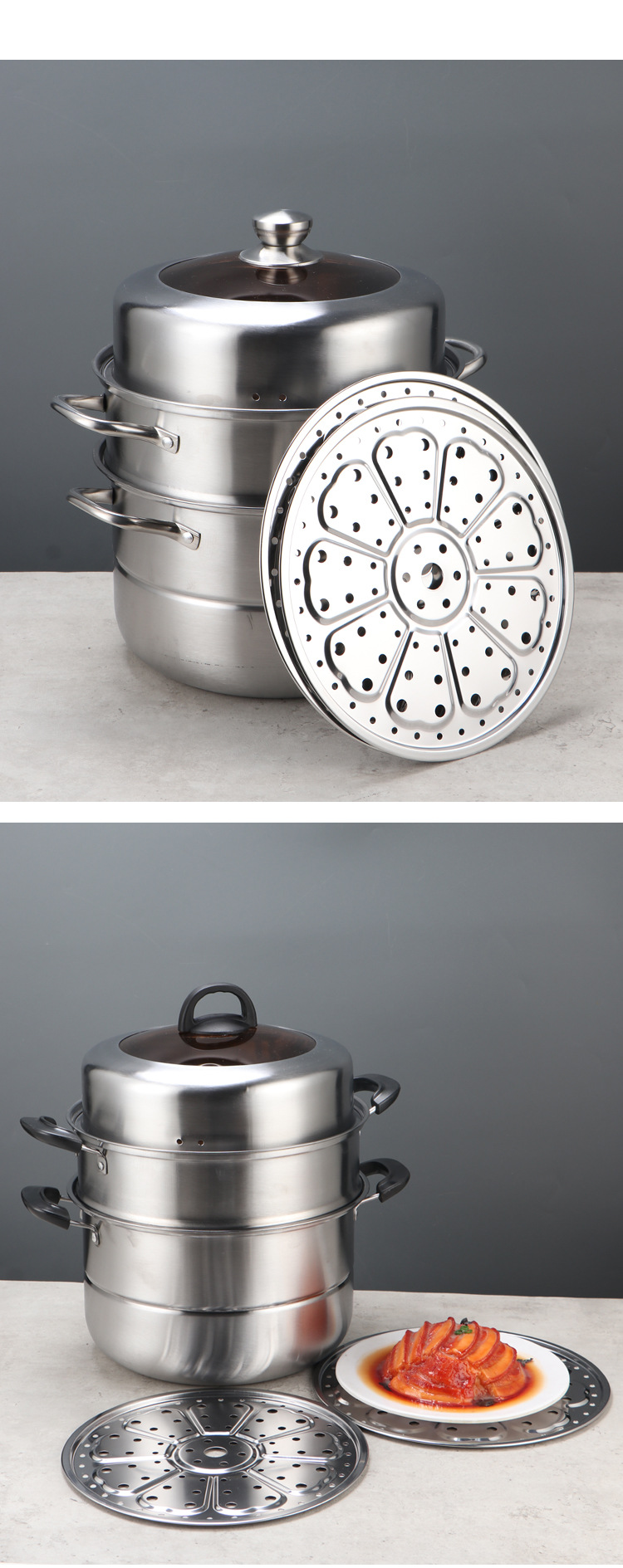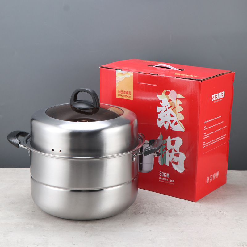 厂家跨境不锈钢汤蒸锅批发 加厚蒸煮汤锅带蒸格礼品欧式多层蒸锅
