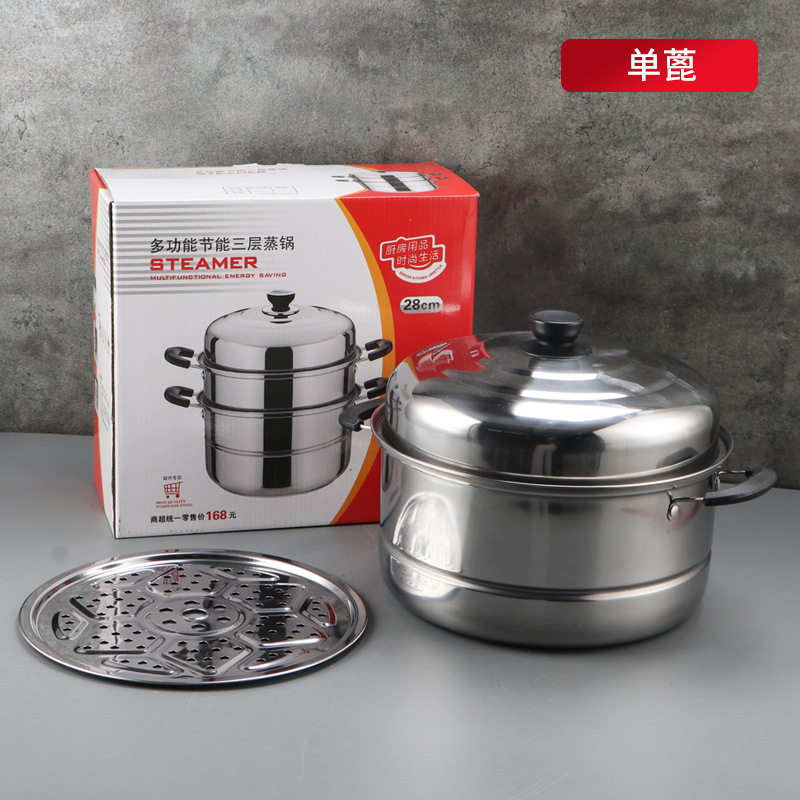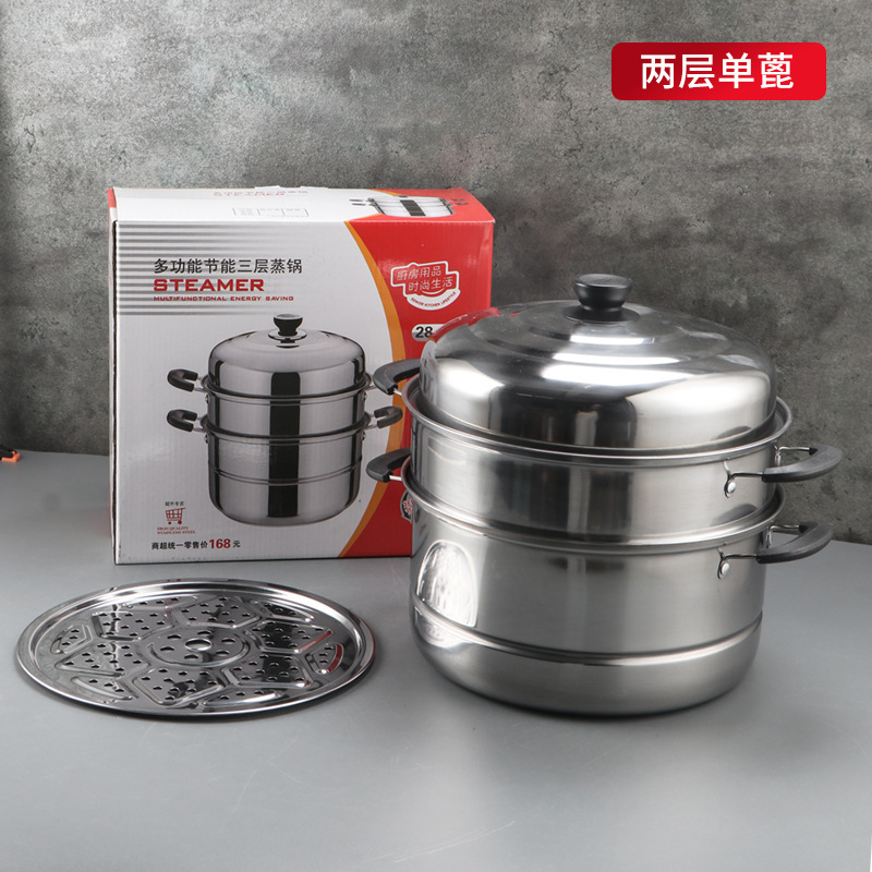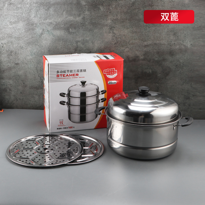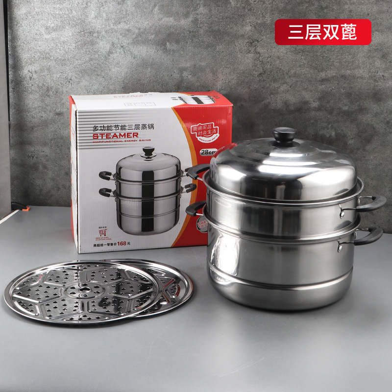 商用加厚不锈钢蒸锅 加深大容量三层蒸煮锅蒸馒头包子礼品汤蒸锅