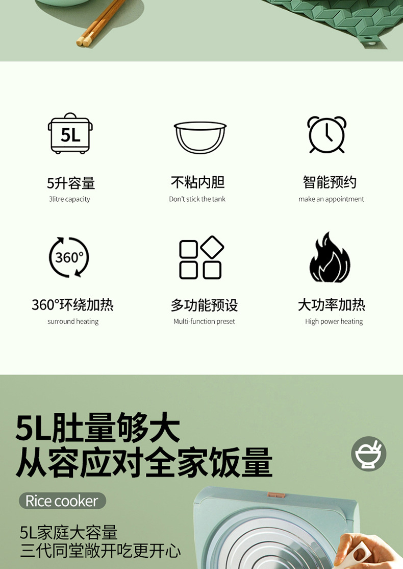 智能5L多功能电饭煲家用 电饭锅厨房电器 电饭煲 电饭锅礼品批发